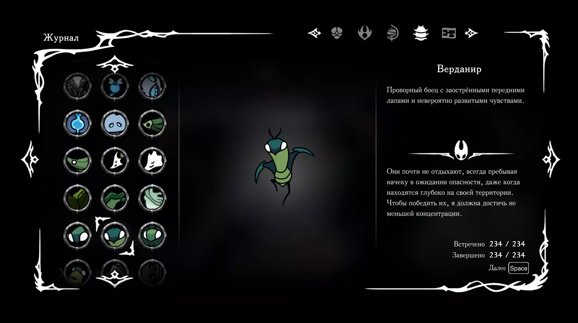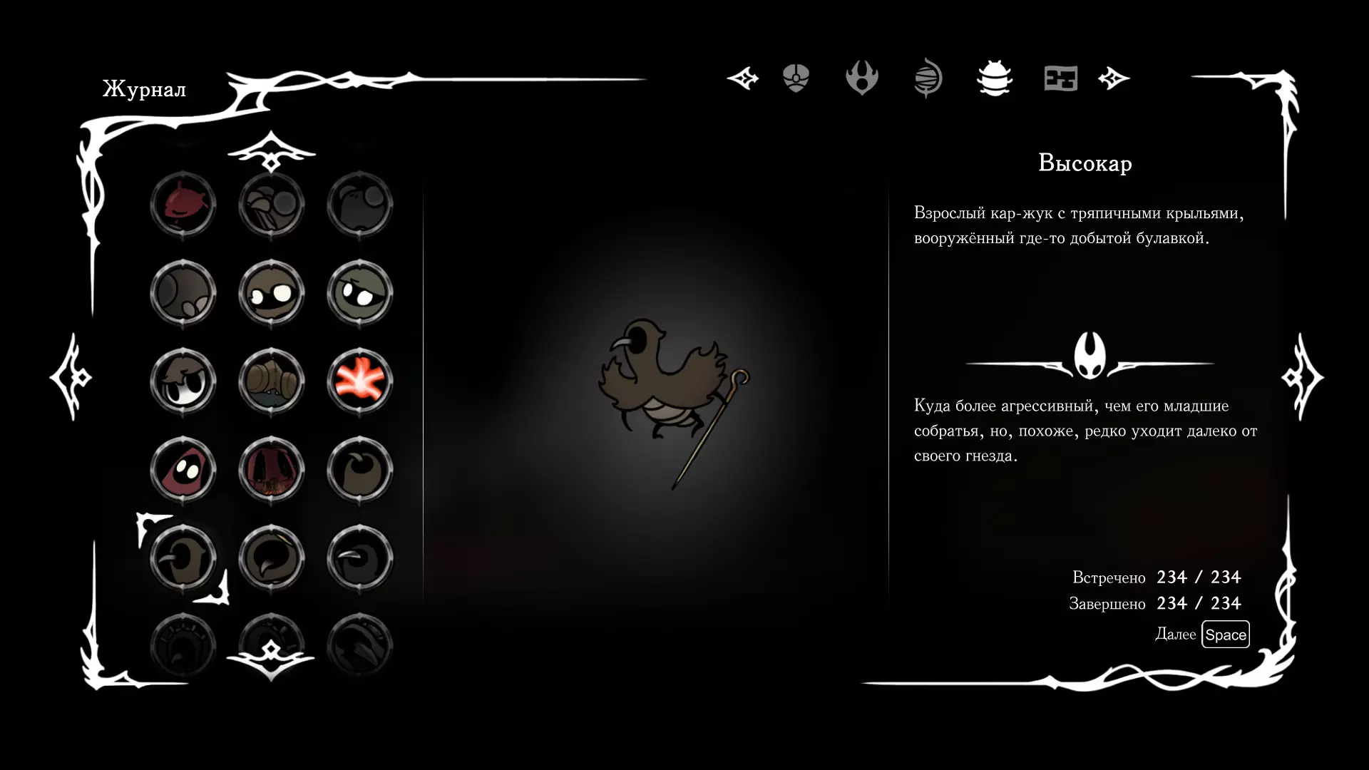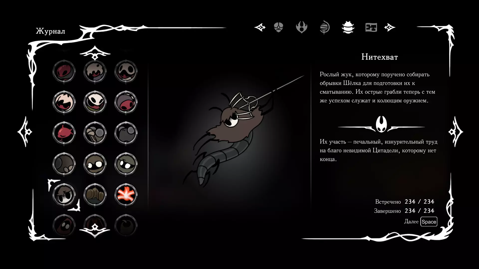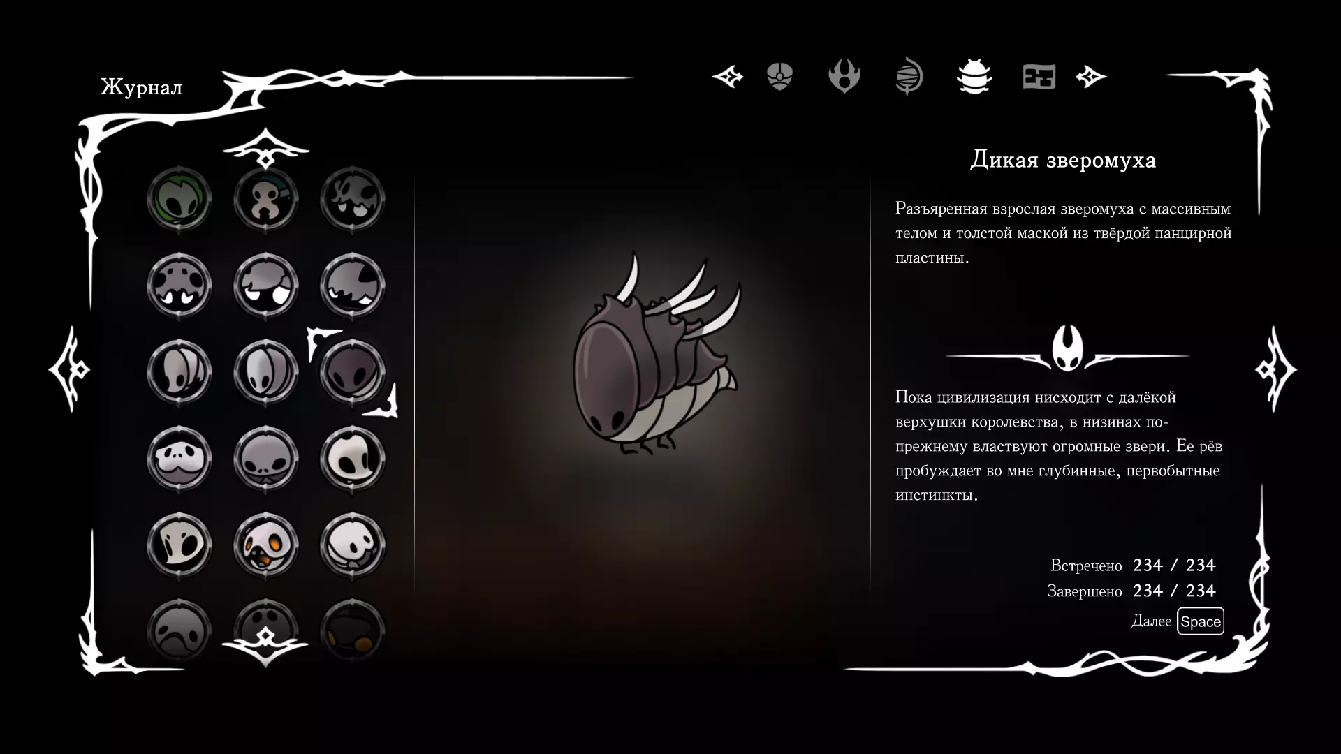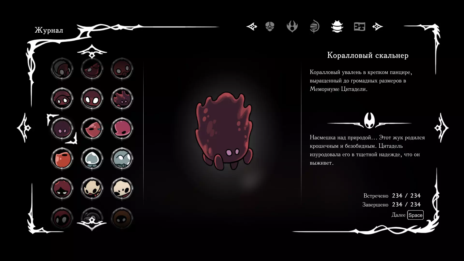 《空洞骑士:丝绸之歌》猎人日志填写指南,包含每个敌人/生物的位置及获取努乌纪念品的方法。信息将持续补充更新。 注意:大多数敌人在进入第三幕后会停止在原有位置刷新。例如,第三幕中水塘生物的生成数量从两三个变为单个。每次为了一个怪物都要跑到长凳那里,这种体验可不太好,所以建议在进入第三幕之前就立即填写日志。可以按下Ctrl+F键,输入你需要的怪物名称来查找。【沙克菈和加蒙德并非日志必需怪物】! 【回忆中的怪物,只要你击败了回忆中的首领(例如韦尔丹尼亚),就会自动记录到日志中】!如果找不到某个怪物,可以在评论区留言。我为这份指南花费了大量时间。【苔藓洞穴】