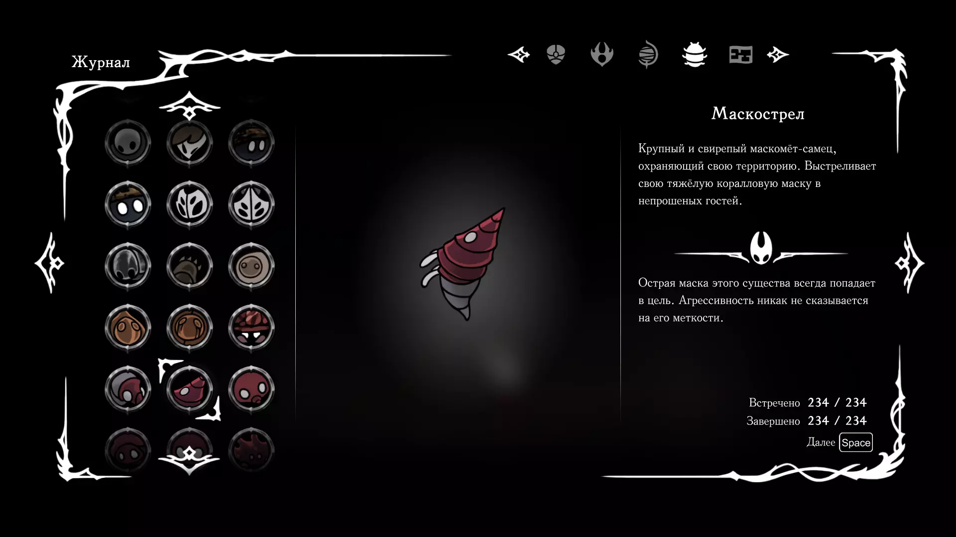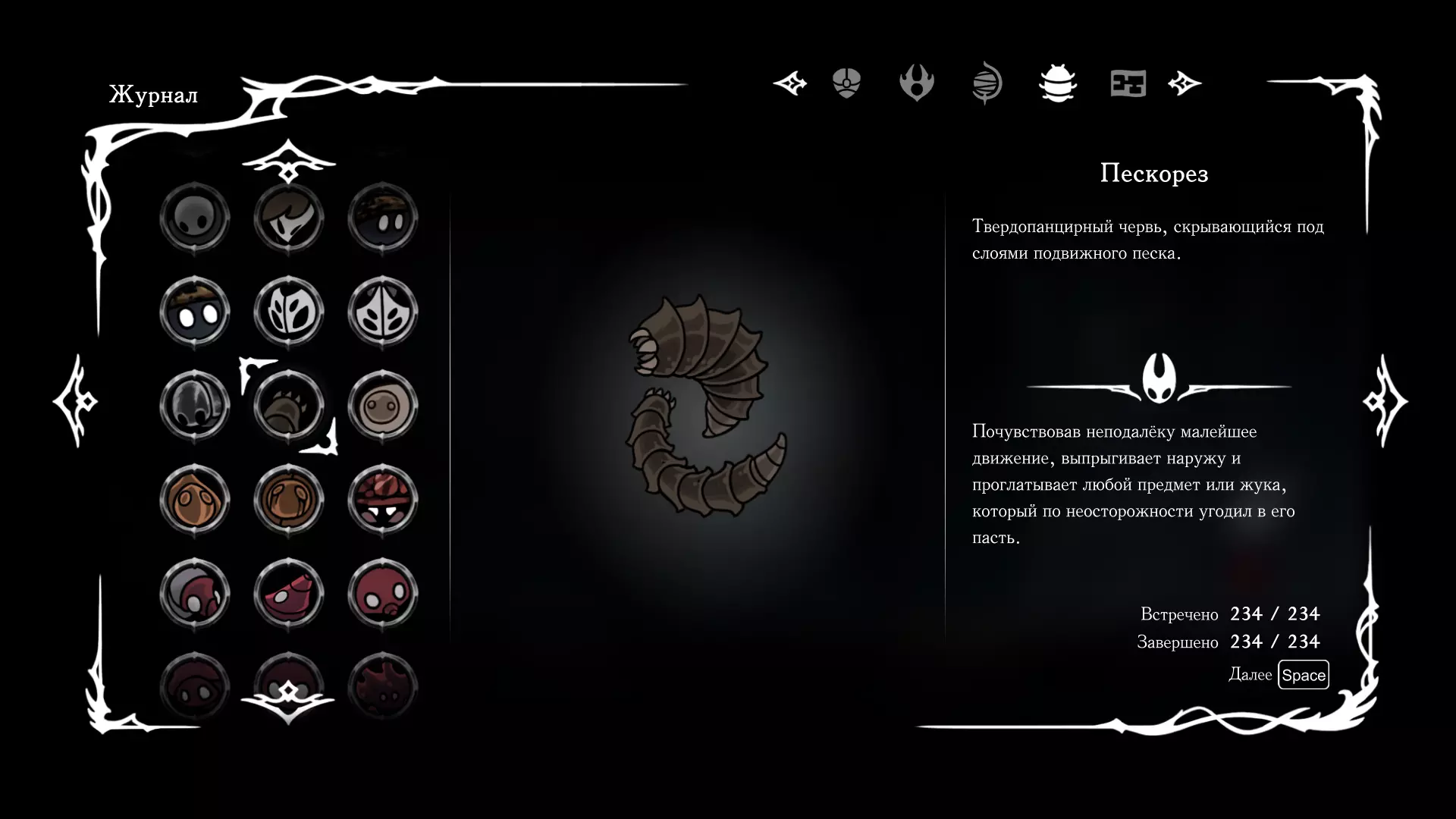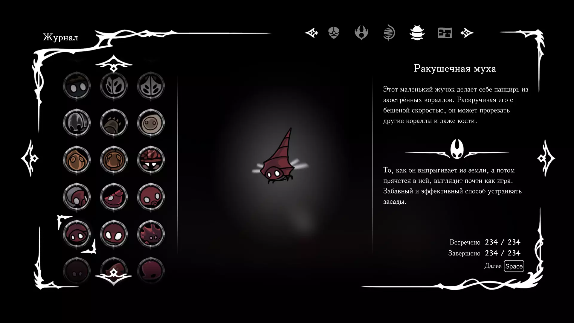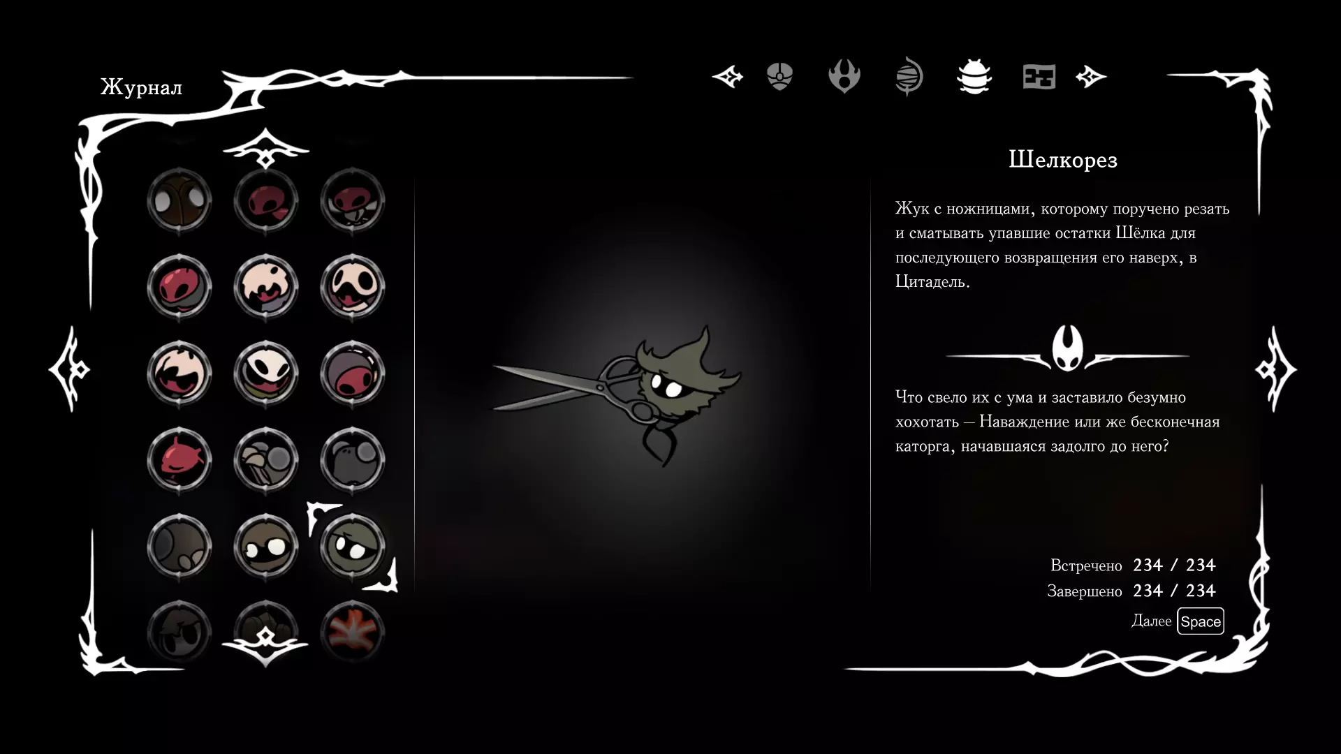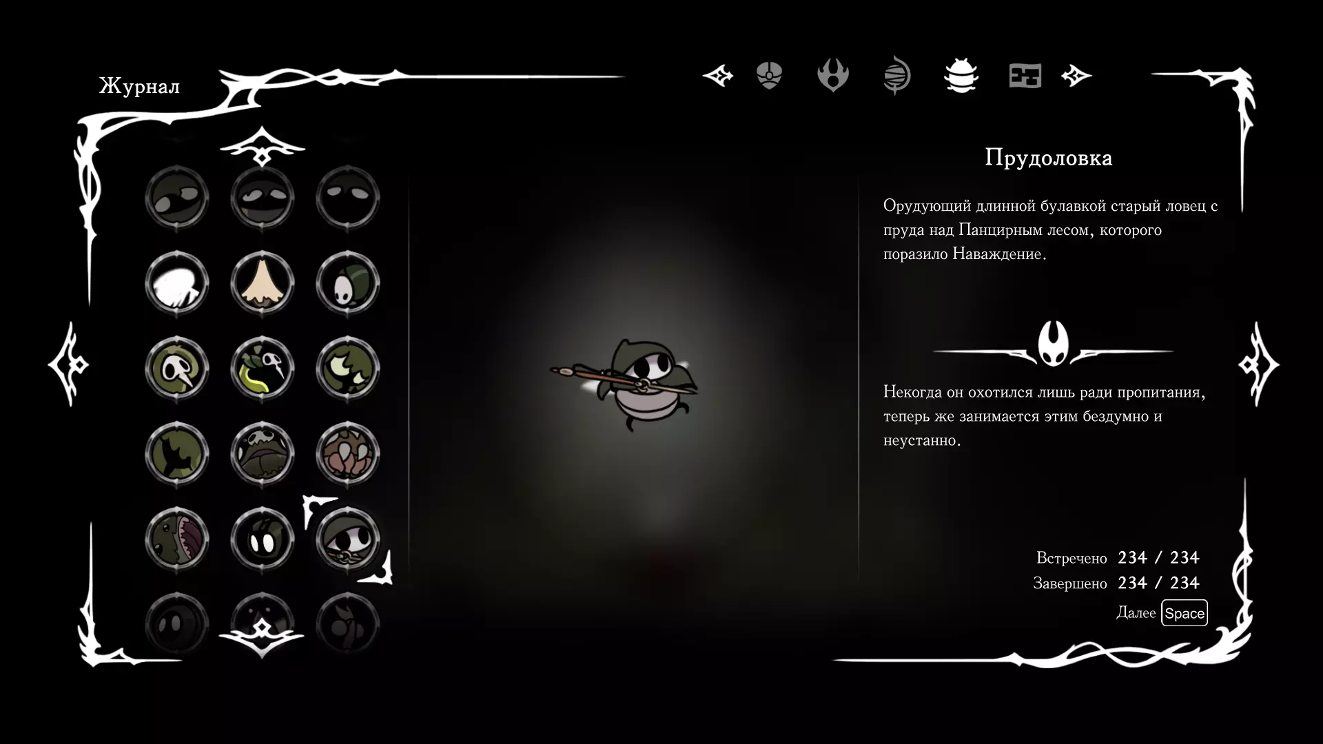 《空洞骑士:丝绸之歌》猎人日志填写指南,包含每个敌人/生物的位置及获取努乌纪念品的方法。信息将持续补充更新。 注意:大多数敌人在进入第三幕后会停止在原有位置刷新。例如,第三幕中水塘生物的生成数量从两三个变为单个。每次为了一个怪物都要跑到长凳那里,这种体验可不太好,所以建议在进入第三幕之前就立即填写日志。可以按下Ctrl+F键,输入你需要的怪物名称来查找。【沙克菈和加蒙德并非日志必需怪物】! 【回忆中的怪物,只要你击败了回忆中的首领(例如韦尔丹尼亚),就会自动记录到日志中】!如果找不到某个怪物,可以在评论区留言。我为这份指南花费了大量时间。【苔藓洞穴】