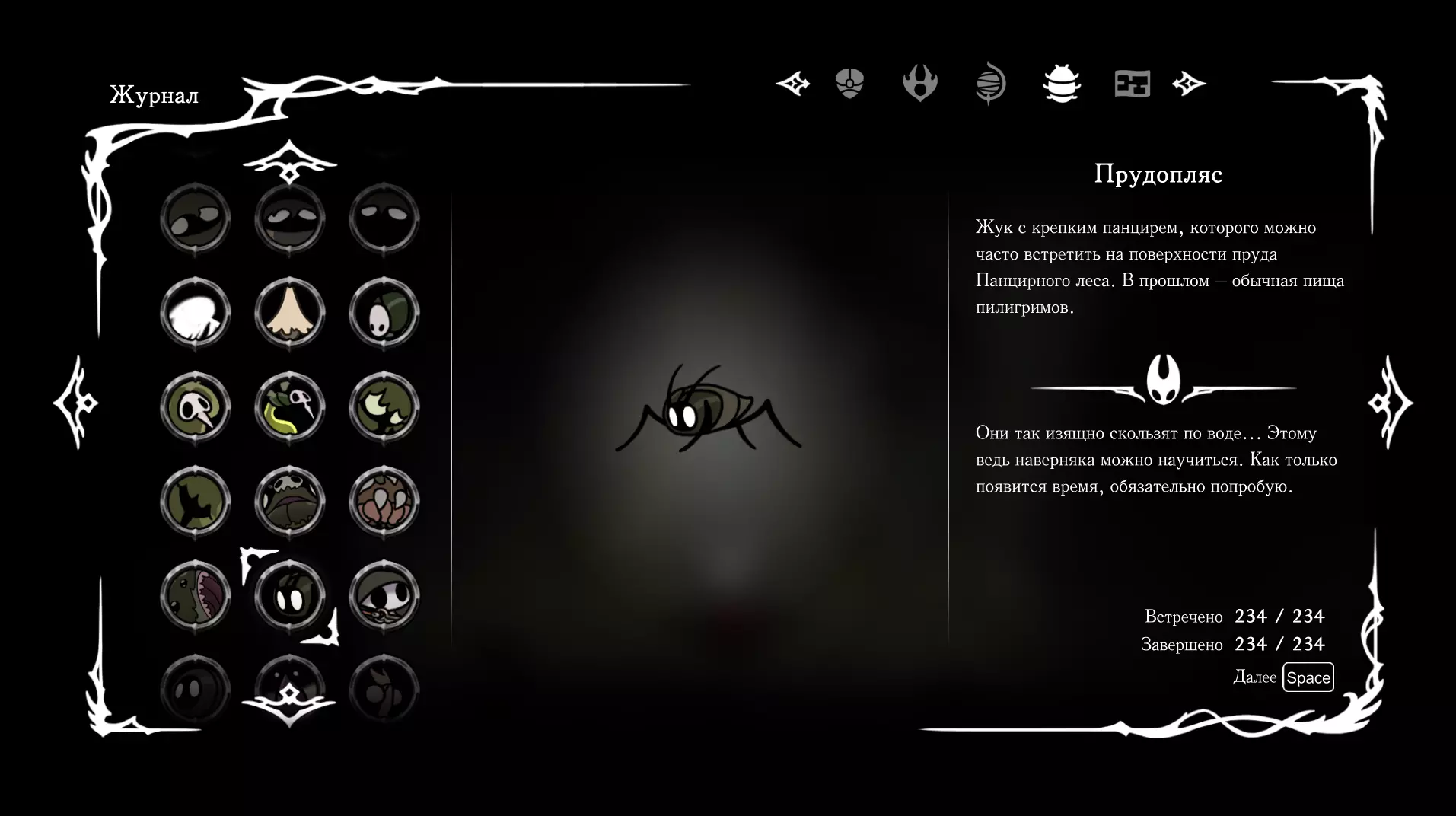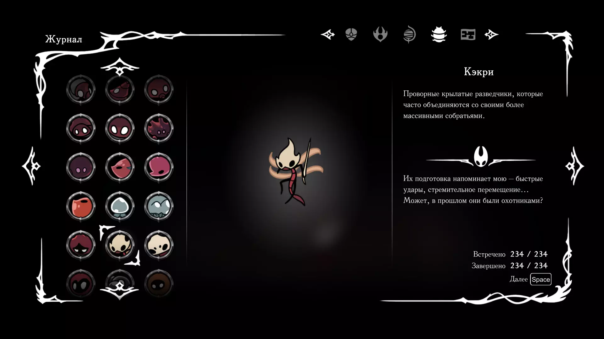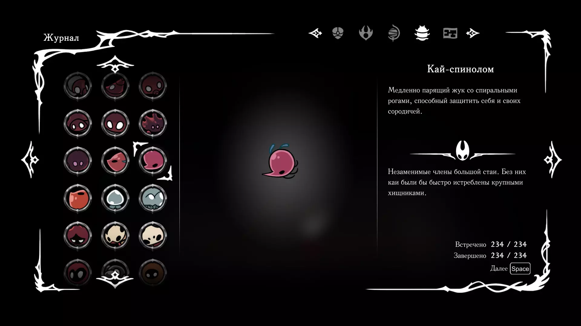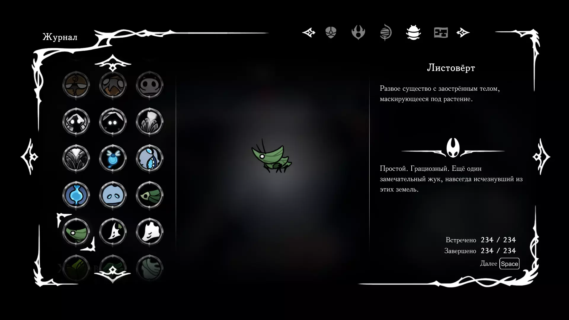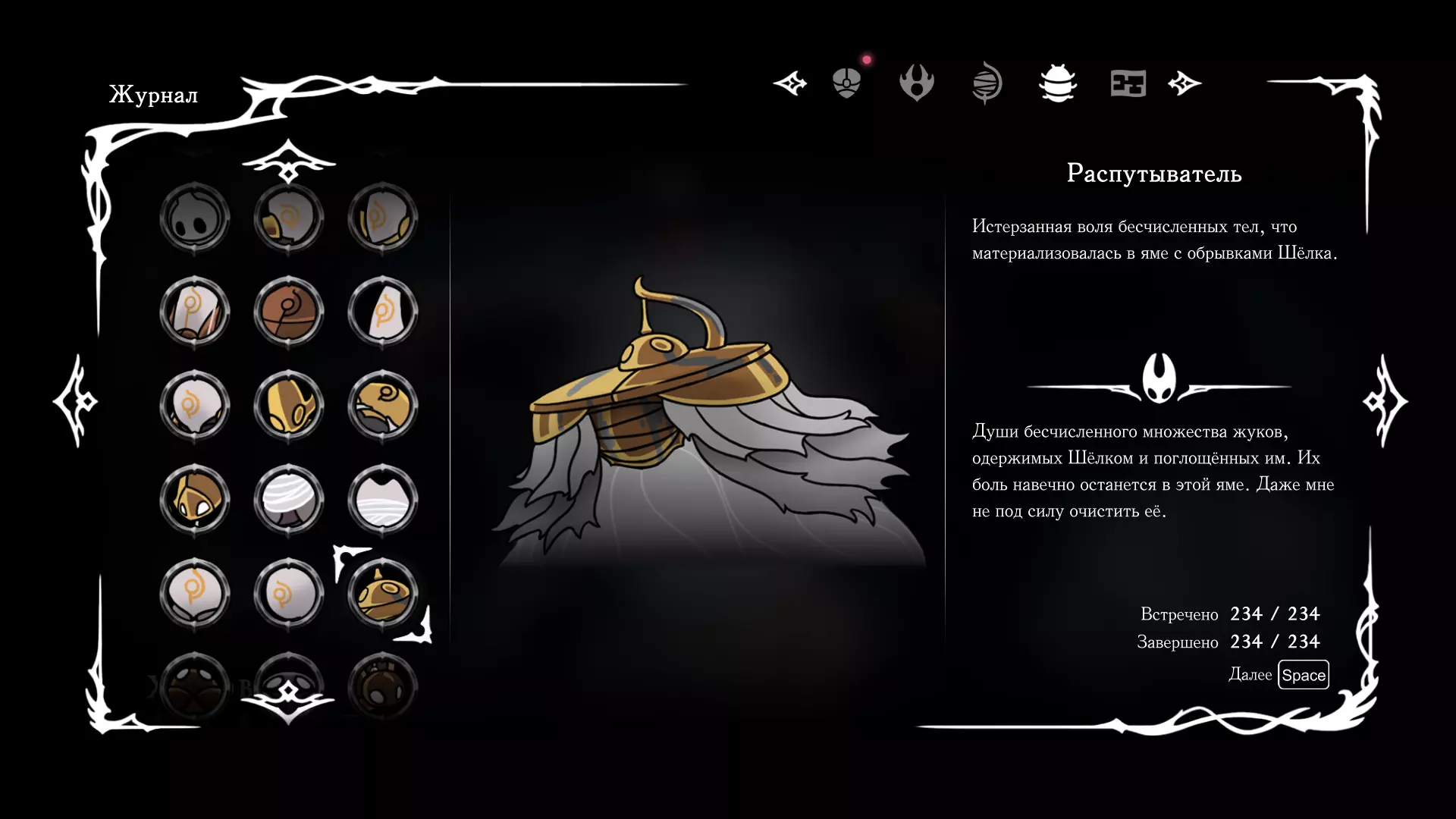 《空洞骑士:丝绸之歌》猎人日志填写指南,包含每个敌人/生物的位置及获取努乌纪念品的方法。信息将持续补充更新。 注意:大多数敌人在进入第三幕后会停止在原有位置刷新。例如,第三幕中水塘生物的生成数量从两三个变为单个。每次为了一个怪物都要跑到长凳那里,这种体验可不太好,所以建议在进入第三幕之前就立即填写日志。可以按下Ctrl+F键,输入你需要的怪物名称来查找。【沙克菈和加蒙德并非日志必需怪物】! 【回忆中的怪物,只要你击败了回忆中的首领(例如韦尔丹尼亚),就会自动记录到日志中】!如果找不到某个怪物,可以在评论区留言。我为这份指南花费了大量时间。【苔藓洞穴】