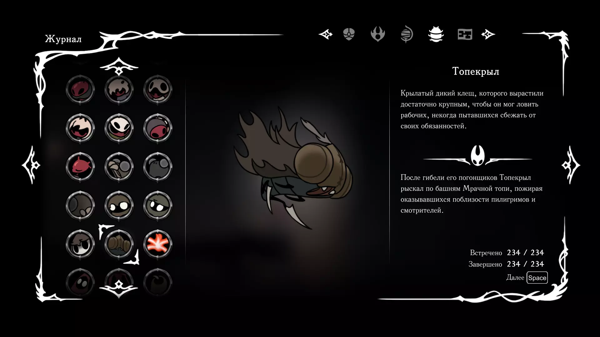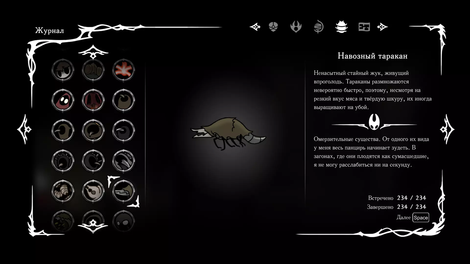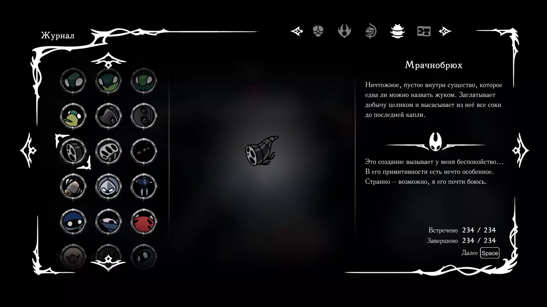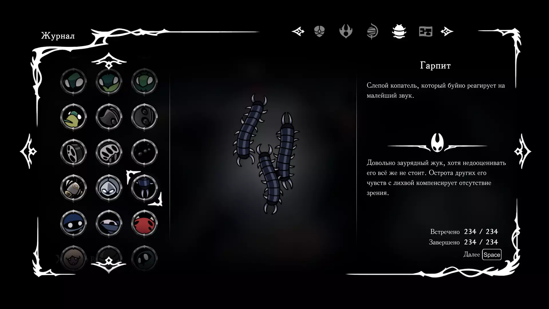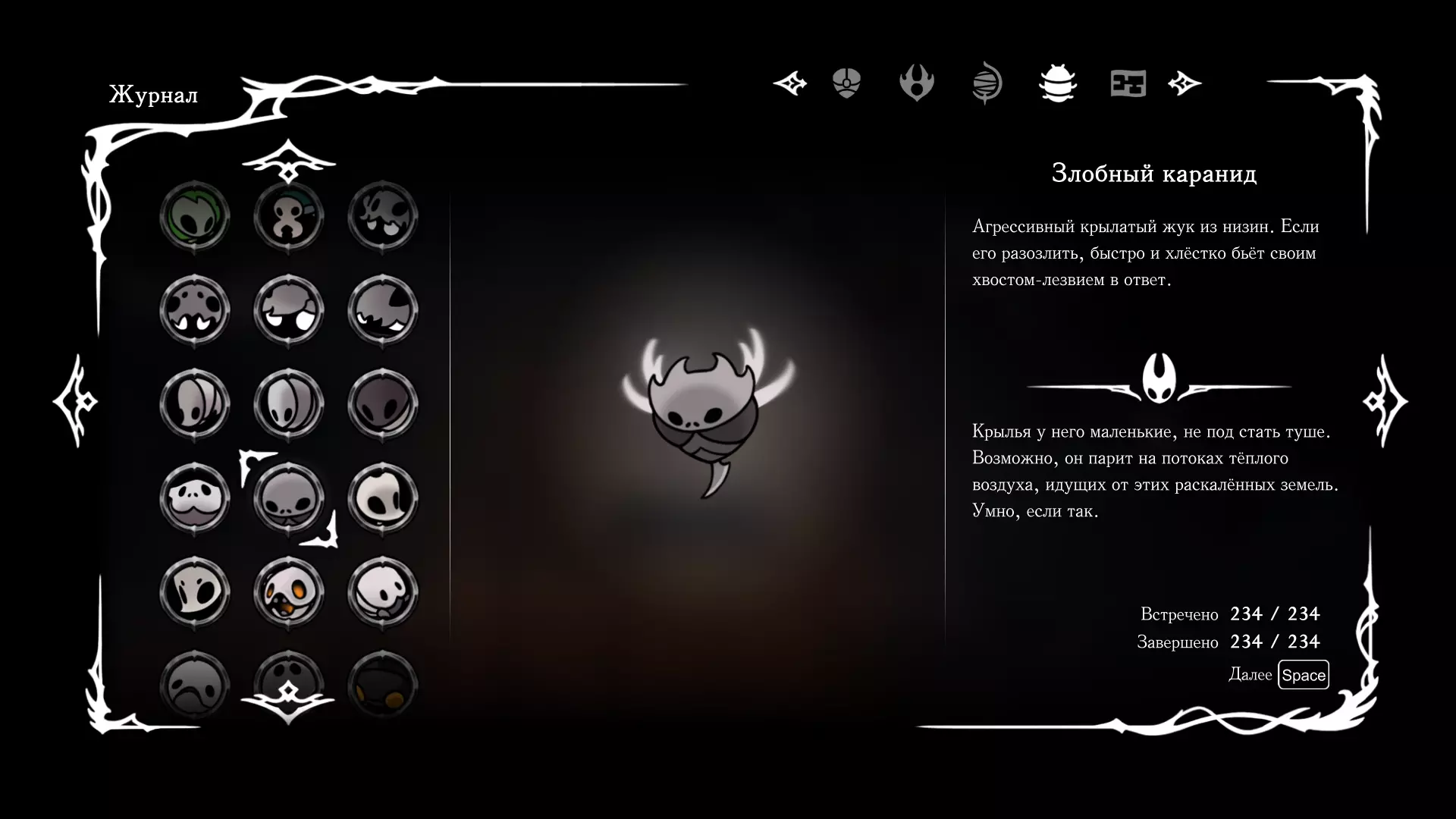 《空洞骑士:丝绸之歌》猎人日志填写指南,包含每个敌人/生物的位置及获取努乌纪念品的方法。信息将持续补充更新。 注意:大多数敌人在进入第三幕后会停止在原有位置刷新。例如,第三幕中水塘生物的生成数量从两三个变为单个。每次为了一个怪物都要跑到长凳那里,这种体验可不太好,所以建议在进入第三幕之前就立即填写日志。可以按下Ctrl+F键,输入你需要的怪物名称来查找。【沙克菈和加蒙德并非日志必需怪物】! 【回忆中的怪物,只要你击败了回忆中的首领(例如韦尔丹尼亚),就会自动记录到日志中】!如果找不到某个怪物,可以在评论区留言。我为这份指南花费了大量时间。【苔藓洞穴】