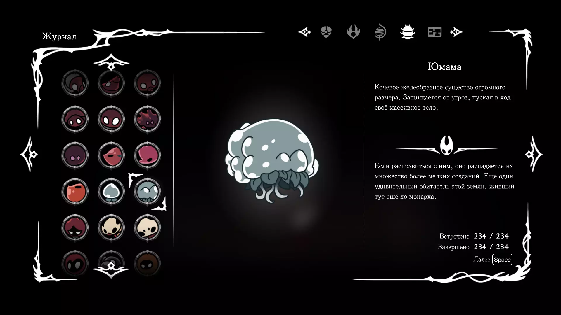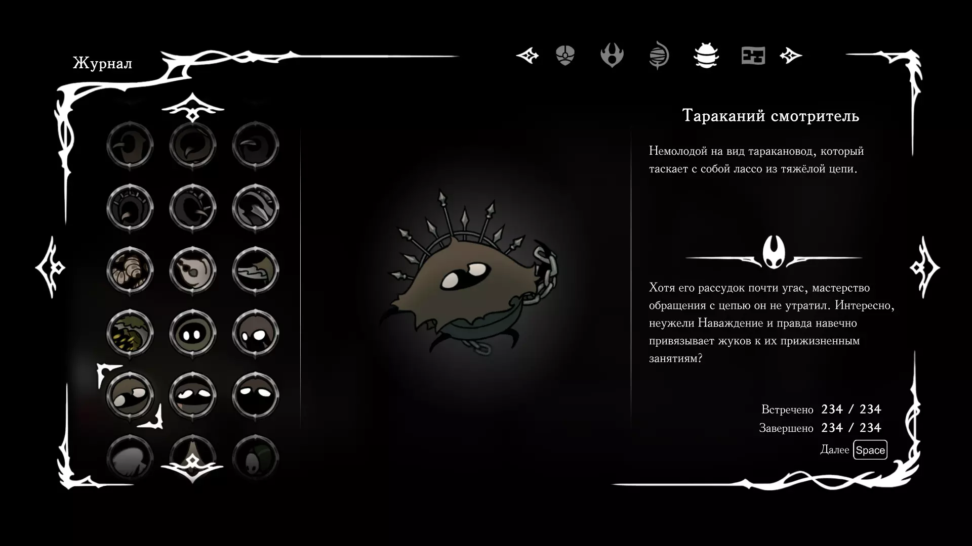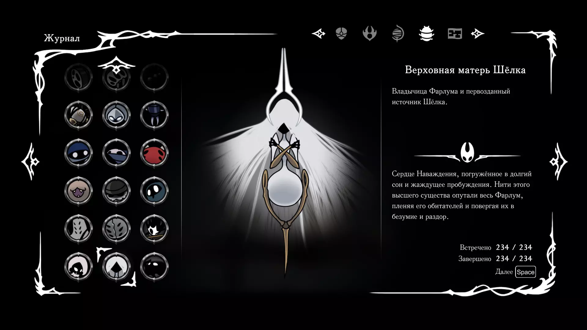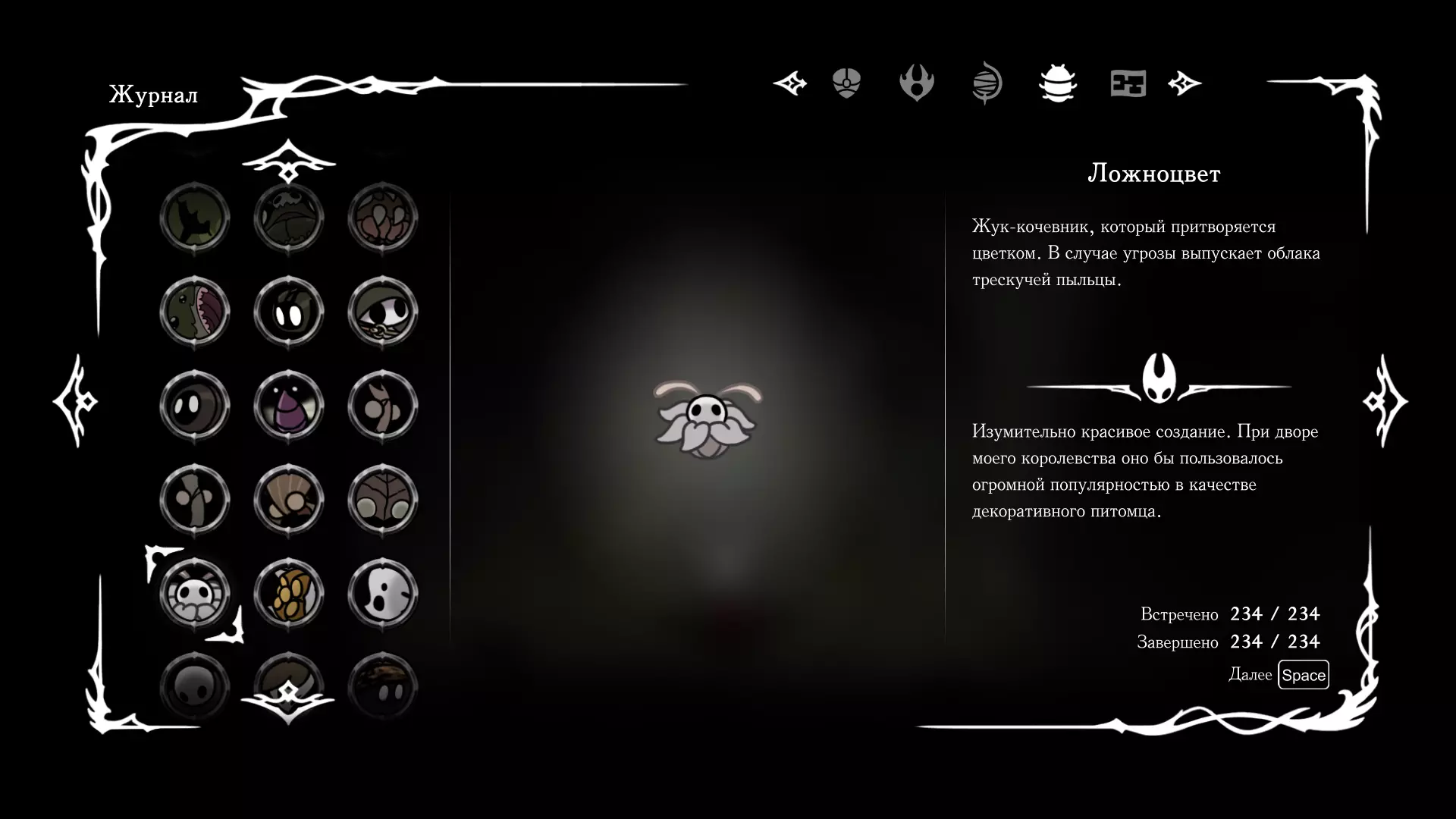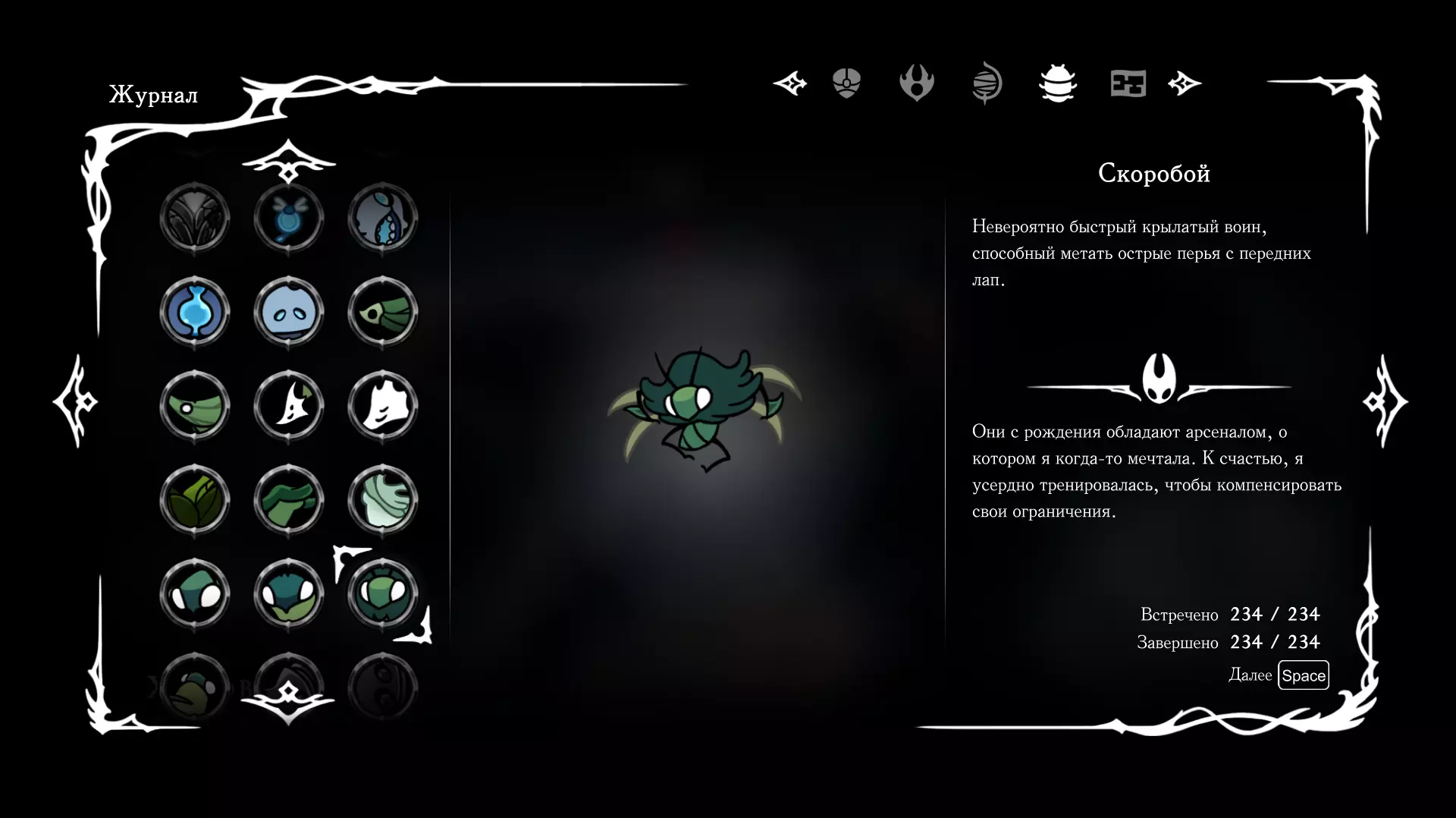 《空洞骑士:丝绸之歌》猎人日志填写指南,包含每个敌人/生物的位置及获取努乌纪念品的方法。信息将持续补充更新。 注意:大多数敌人在进入第三幕后会停止在原有位置刷新。例如,第三幕中水塘生物的生成数量从两三个变为单个。每次为了一个怪物都要跑到长凳那里,这种体验可不太好,所以建议在进入第三幕之前就立即填写日志。可以按下Ctrl+F键,输入你需要的怪物名称来查找。【沙克菈和加蒙德并非日志必需怪物】! 【回忆中的怪物,只要你击败了回忆中的首领(例如韦尔丹尼亚),就会自动记录到日志中】!如果找不到某个怪物,可以在评论区留言。我为这份指南花费了大量时间。【苔藓洞穴】