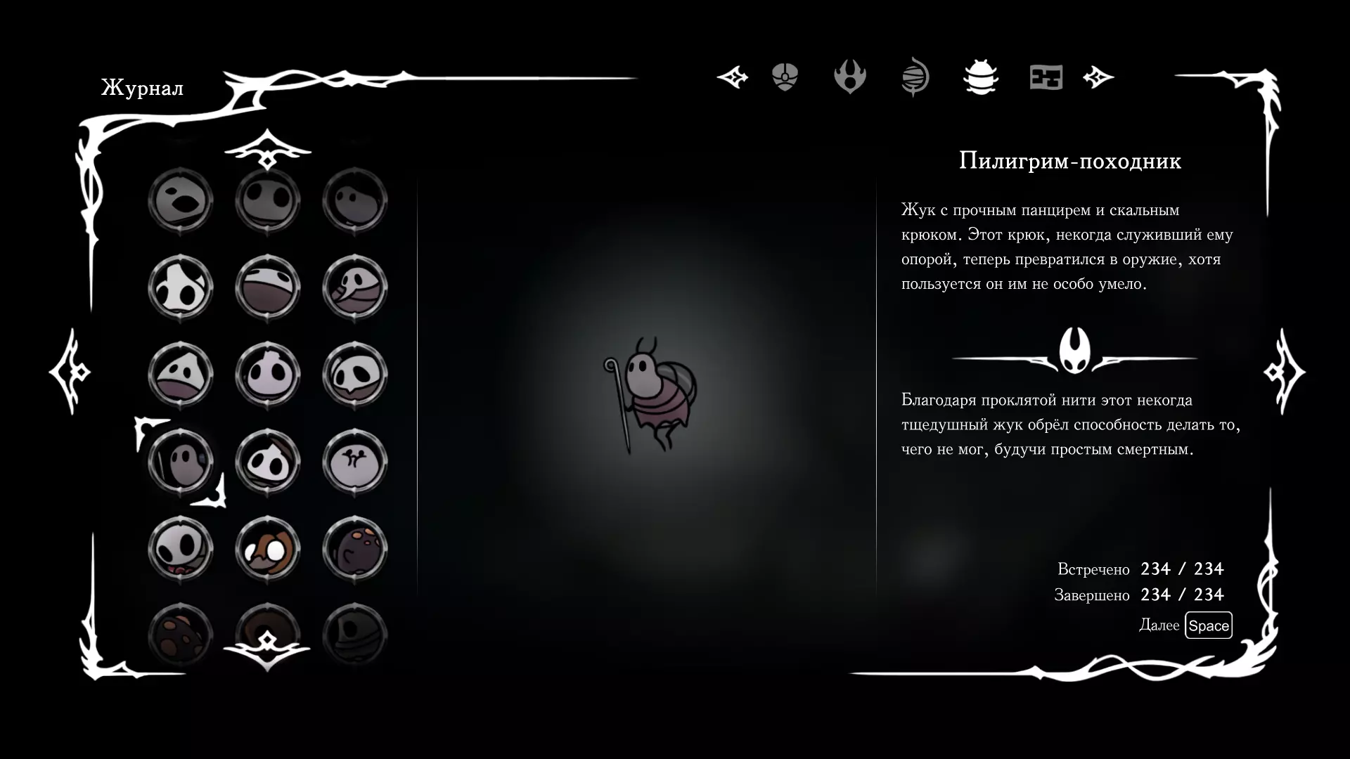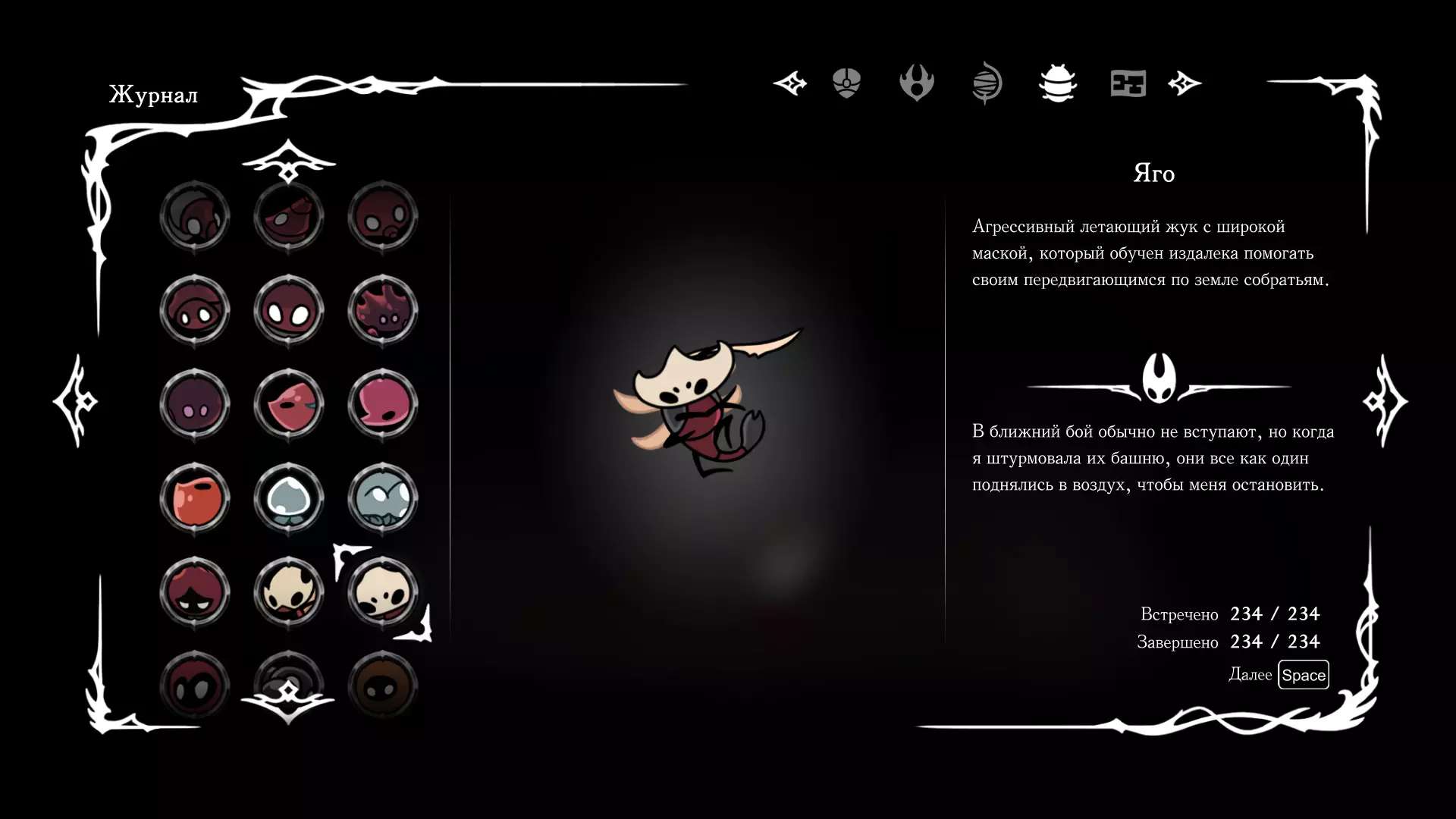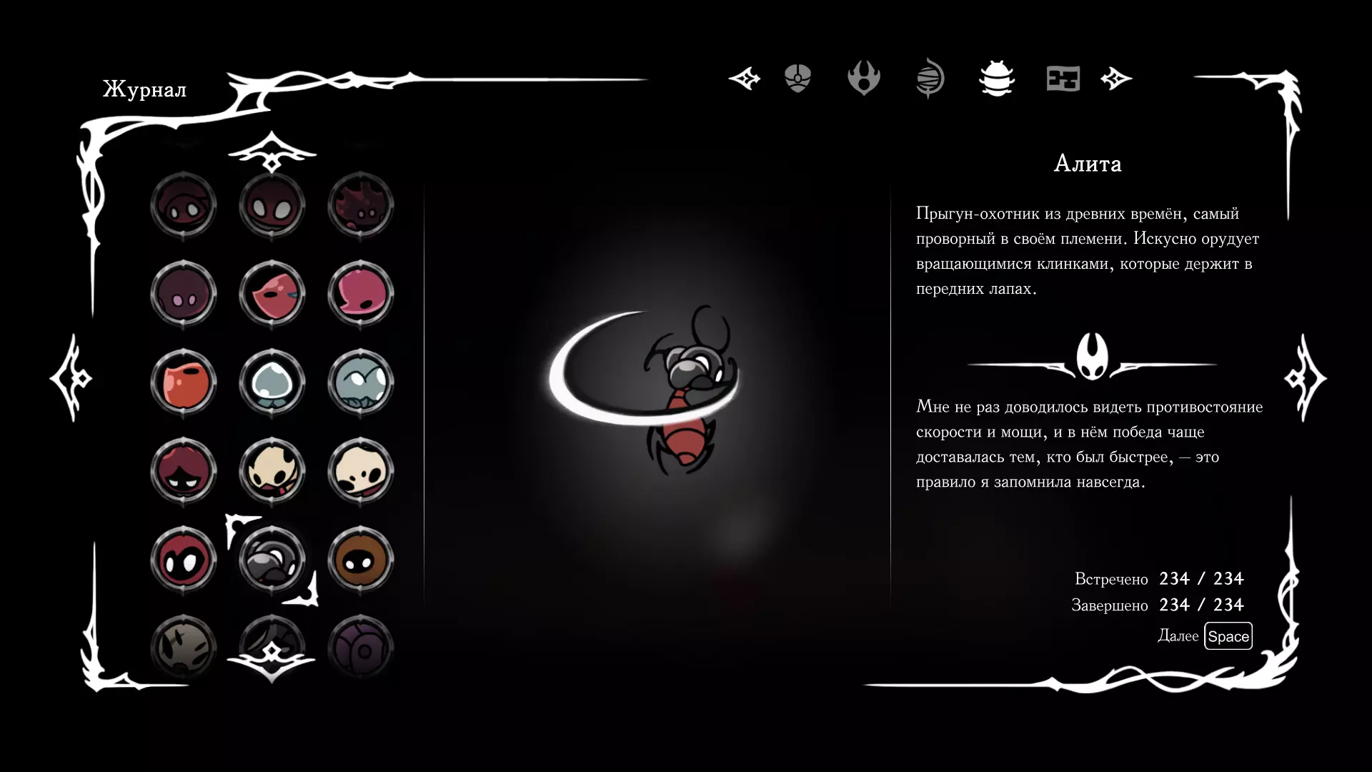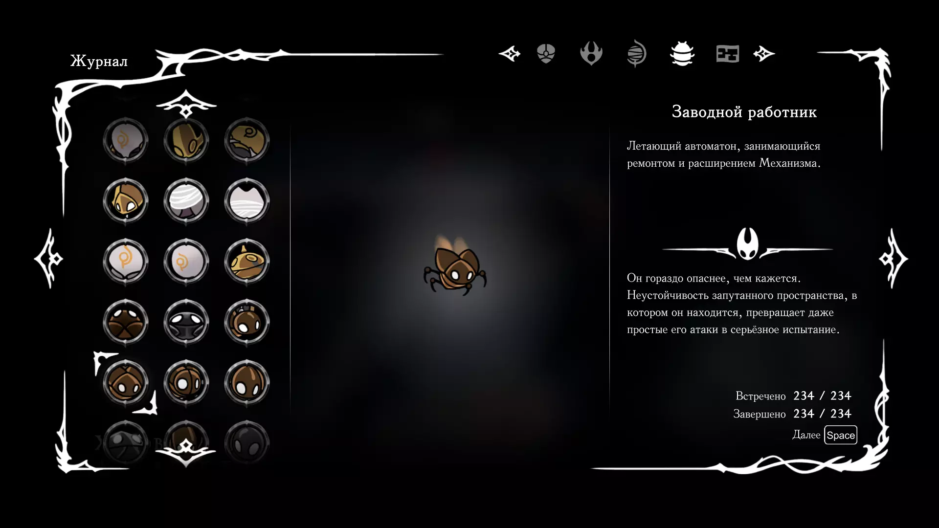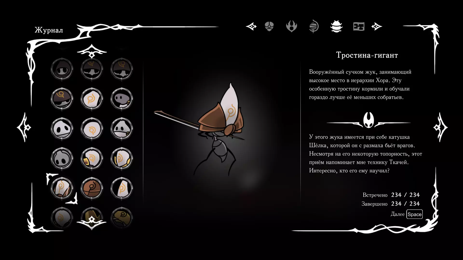 《空洞骑士:丝绸之歌》猎人日志填写指南,包含每个敌人/生物的位置及获取努乌纪念品的方法。信息将持续补充更新。 注意:大多数敌人在进入第三幕后会停止在原有位置刷新。例如,第三幕中水塘生物的生成数量从两三个变为单个。每次为了一个怪物都要跑到长凳那里,这种体验可不太好,所以建议在进入第三幕之前就立即填写日志。可以按下Ctrl+F键,输入你需要的怪物名称来查找。【沙克菈和加蒙德并非日志必需怪物】! 【回忆中的怪物,只要你击败了回忆中的首领(例如韦尔丹尼亚),就会自动记录到日志中】!如果找不到某个怪物,可以在评论区留言。我为这份指南花费了大量时间。【苔藓洞穴】