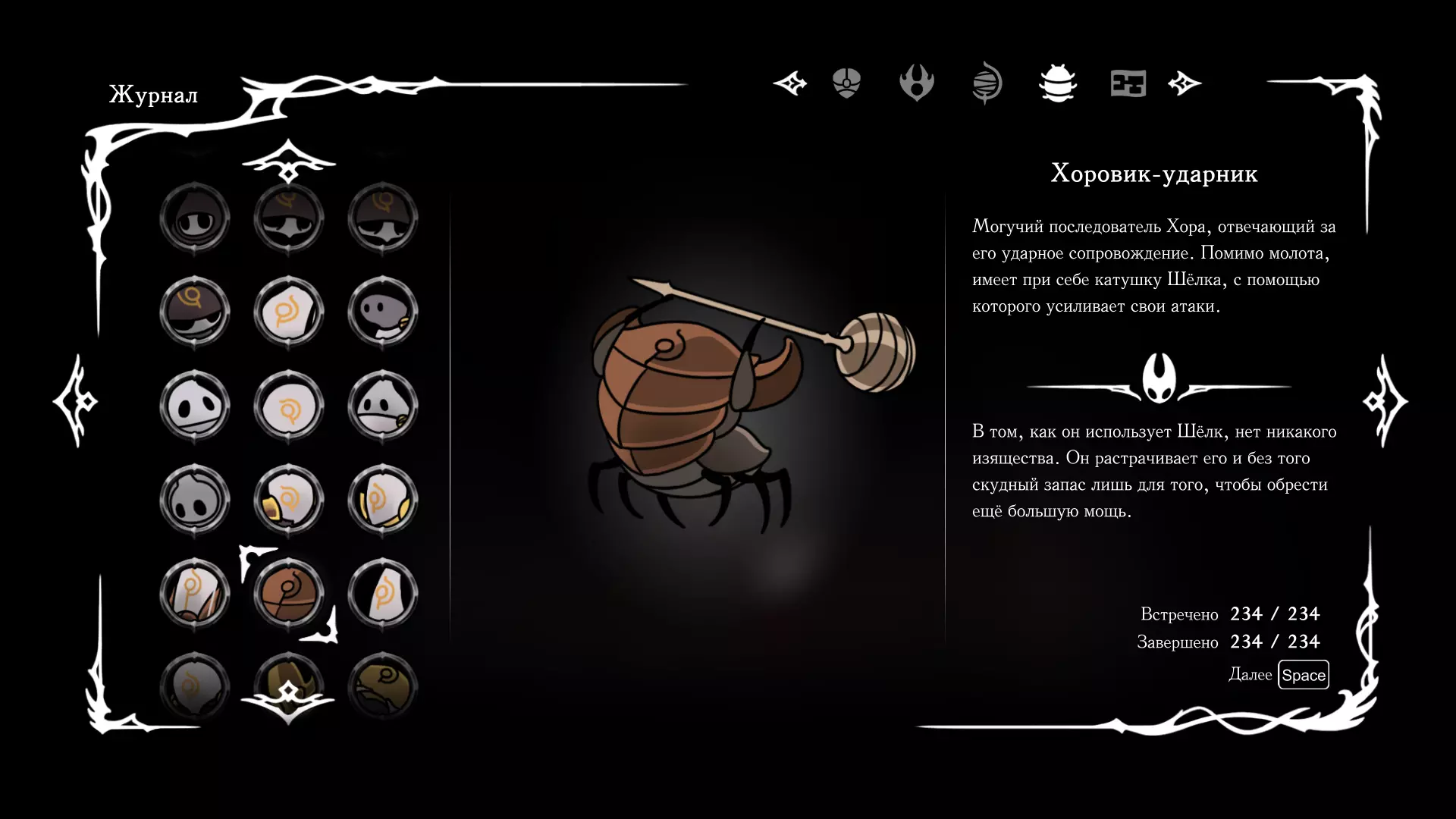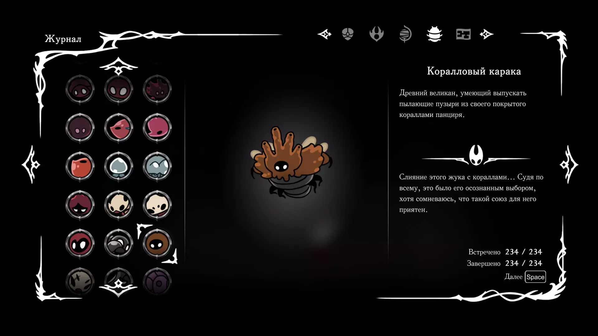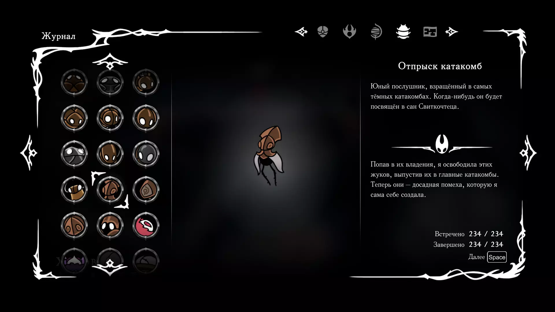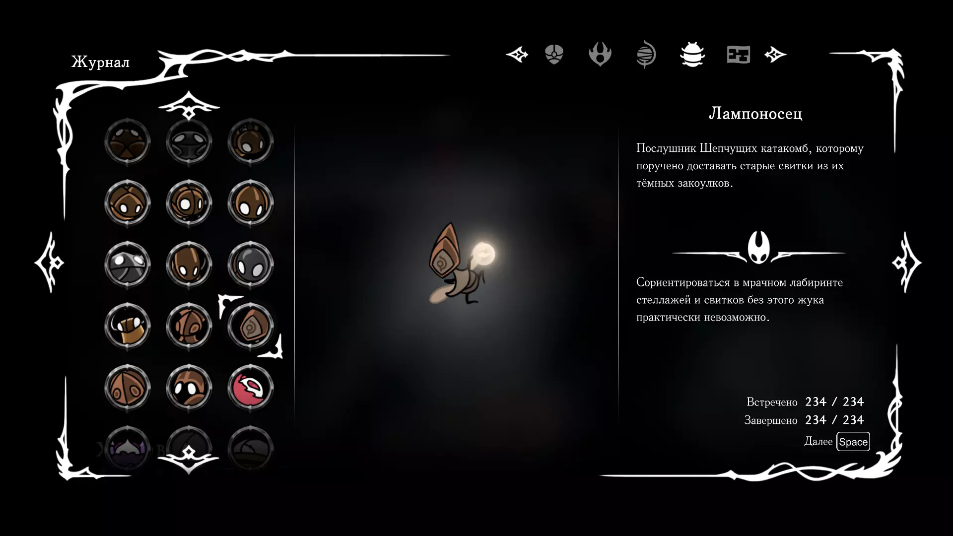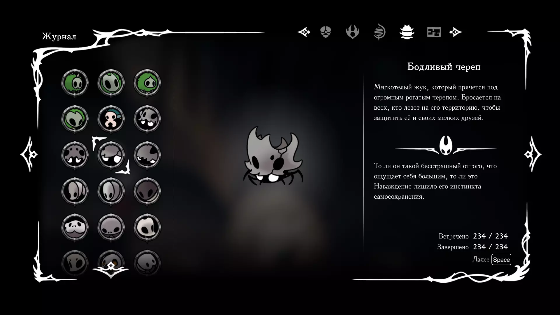 《空洞骑士:丝绸之歌》猎人日志填写指南,包含每个敌人/生物的位置及获取努乌纪念品的方法。信息将持续补充更新。 注意:大多数敌人在进入第三幕后会停止在原有位置刷新。例如,第三幕中水塘生物的生成数量从两三个变为单个。每次为了一个怪物都要跑到长凳那里,这种体验可不太好,所以建议在进入第三幕之前就立即填写日志。可以按下Ctrl+F键,输入你需要的怪物名称来查找。【沙克菈和加蒙德并非日志必需怪物】! 【回忆中的怪物,只要你击败了回忆中的首领(例如韦尔丹尼亚),就会自动记录到日志中】!如果找不到某个怪物,可以在评论区留言。我为这份指南花费了大量时间。【苔藓洞穴】