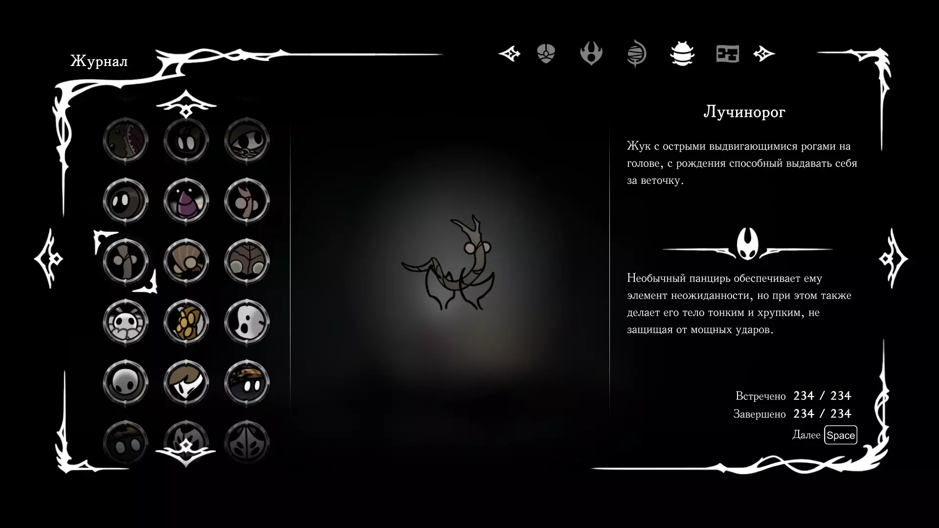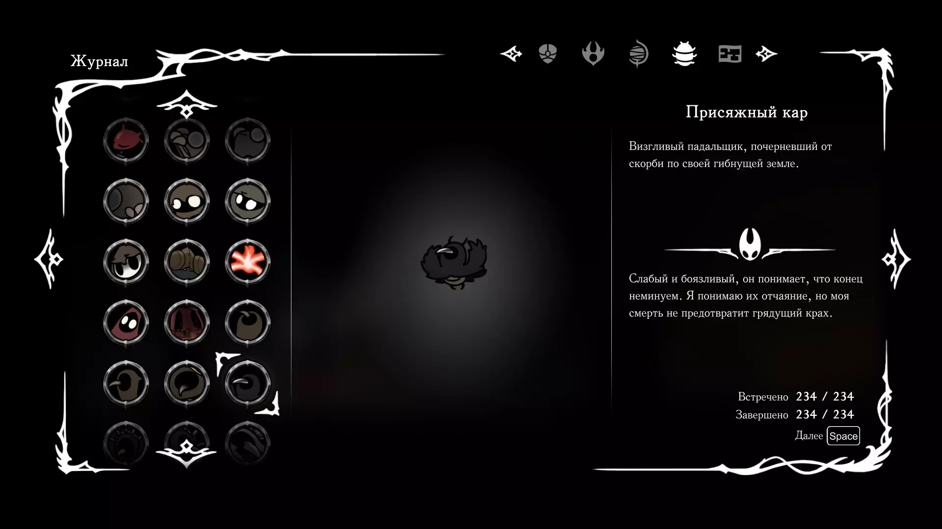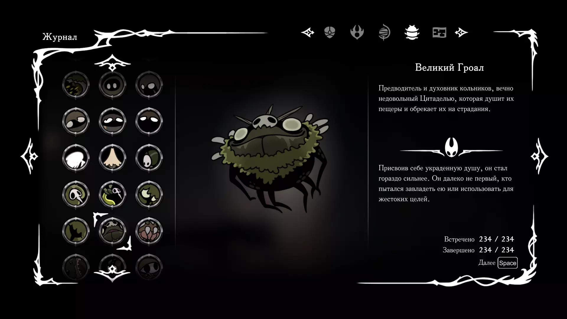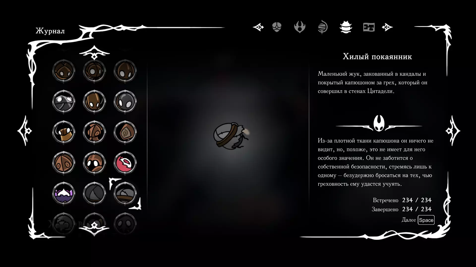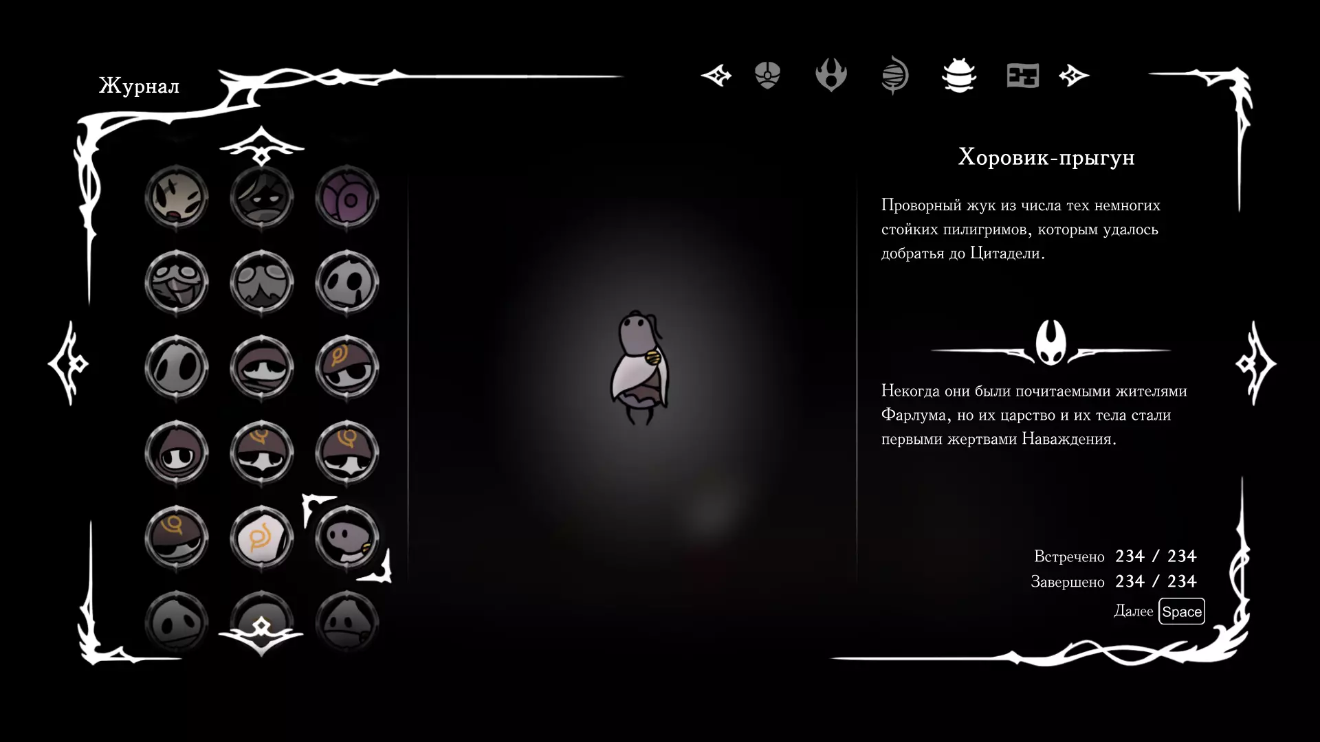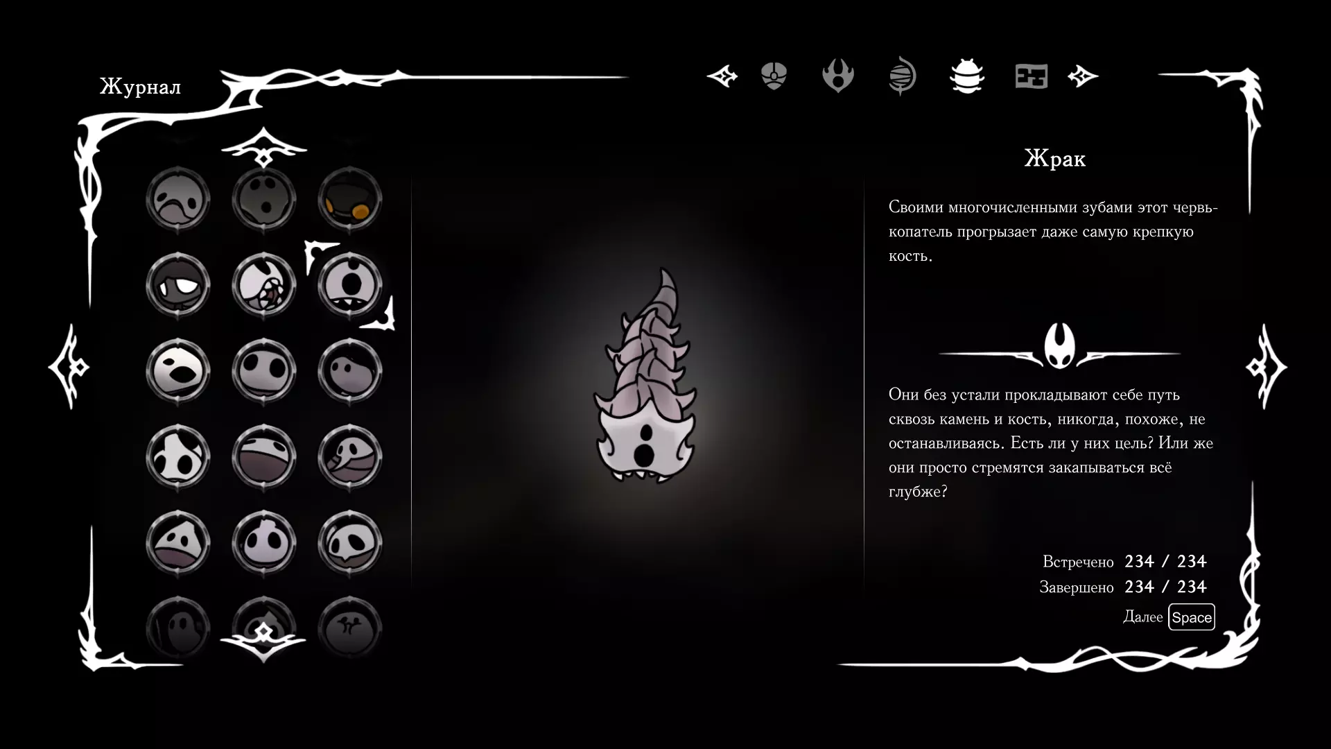 《空洞骑士:丝绸之歌》猎人日志填写指南,包含每个敌人/生物的位置及获取努乌纪念品的方法。信息将持续补充更新。 注意:大多数敌人在进入第三幕后会停止在原有位置刷新。例如,第三幕中水塘生物的生成数量从两三个变为单个。每次为了一个怪物都要跑到长凳那里,这种体验可不太好,所以建议在进入第三幕之前就立即填写日志。可以按下Ctrl+F键,输入你需要的怪物名称来查找。【沙克菈和加蒙德并非日志必需怪物】! 【回忆中的怪物,只要你击败了回忆中的首领(例如韦尔丹尼亚),就会自动记录到日志中】!如果找不到某个怪物,可以在评论区留言。我为这份指南花费了大量时间。【苔藓洞穴】