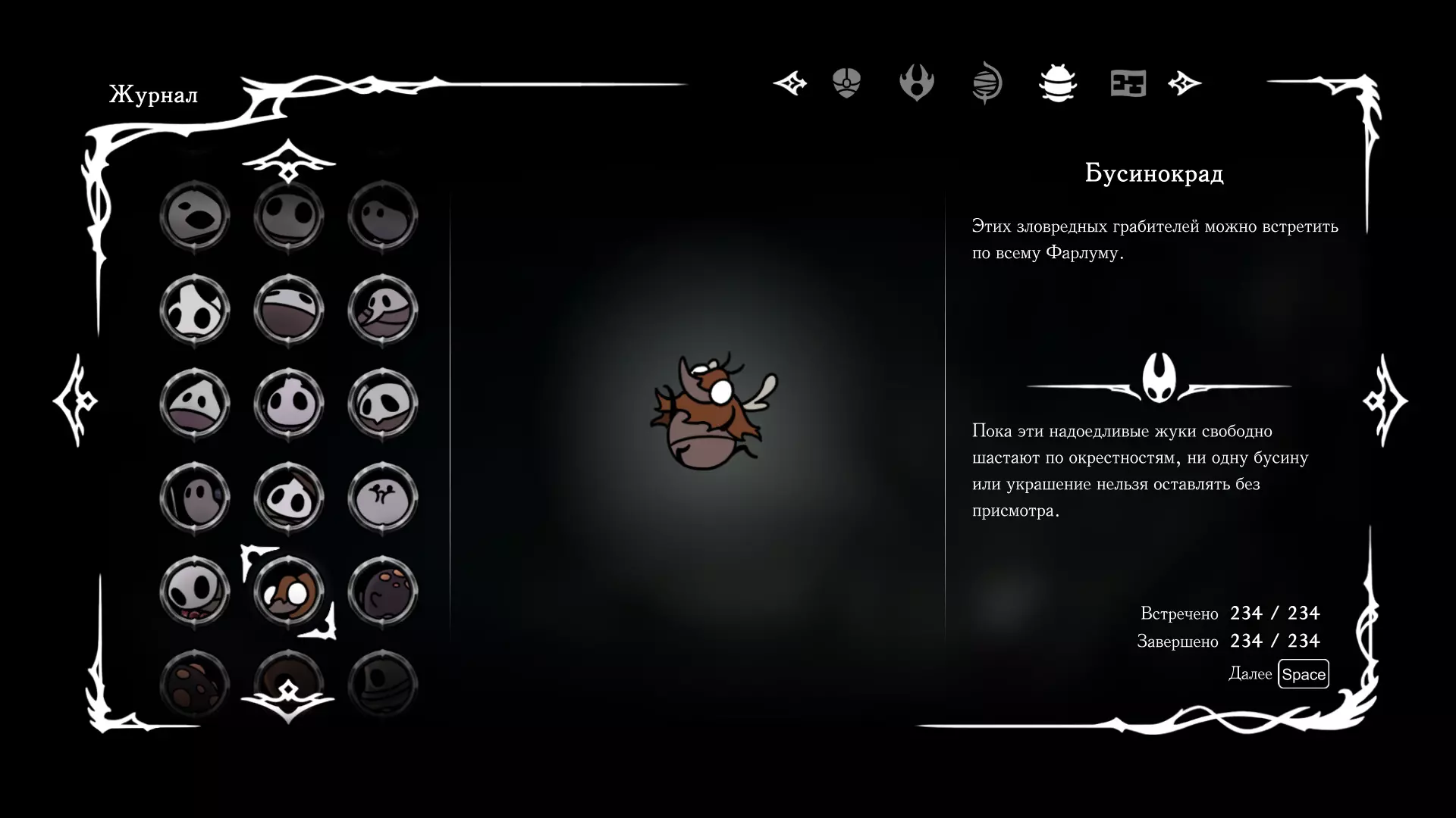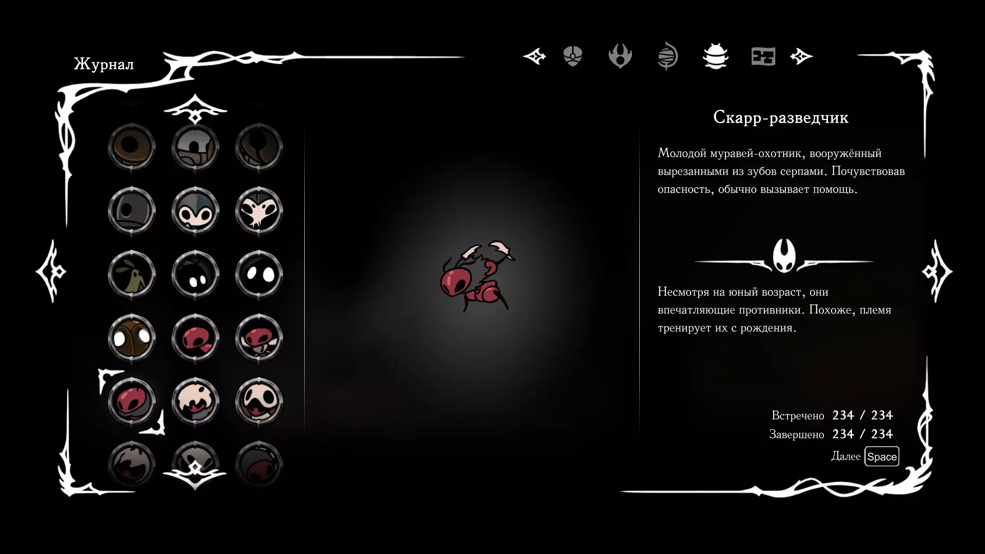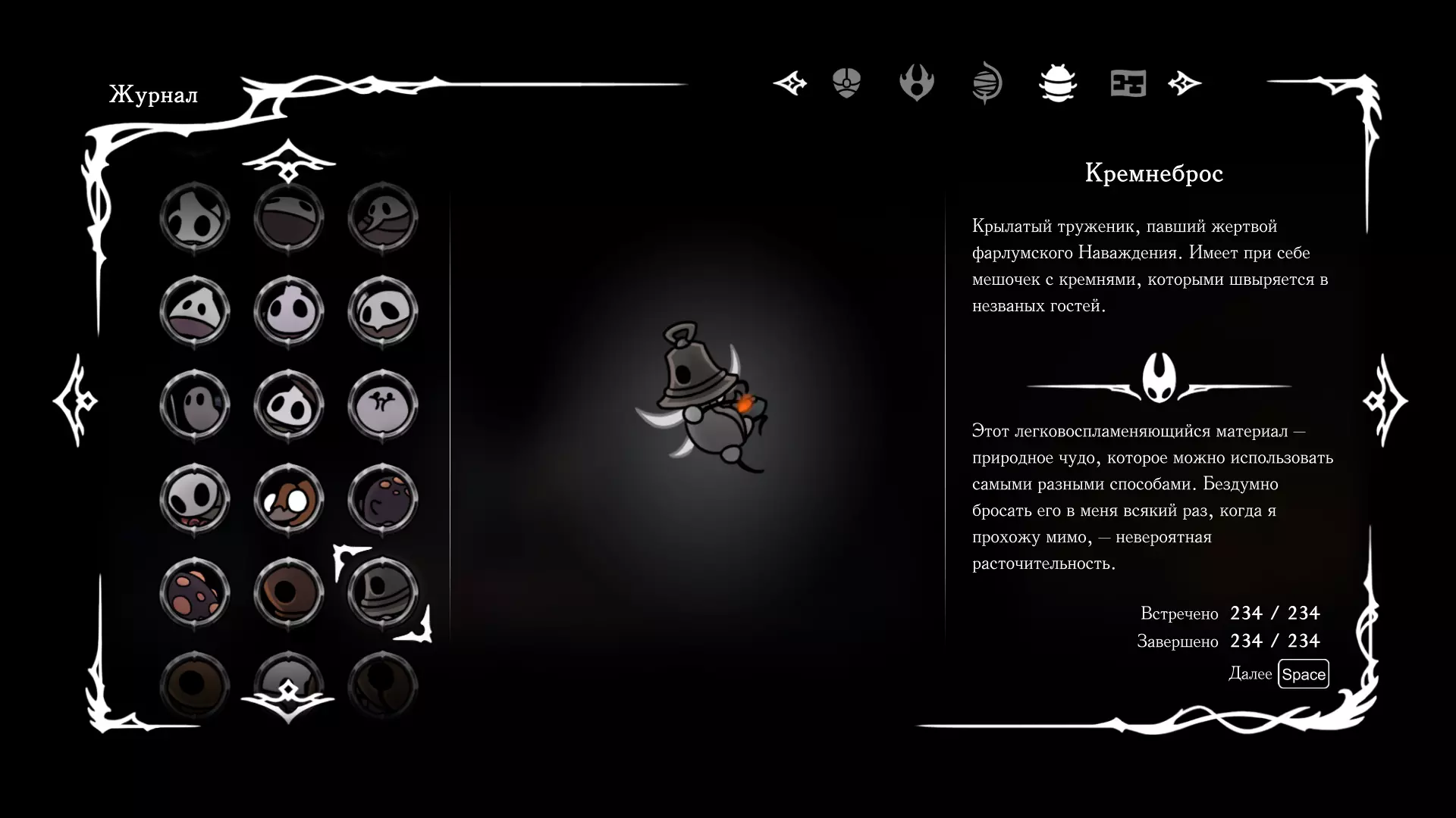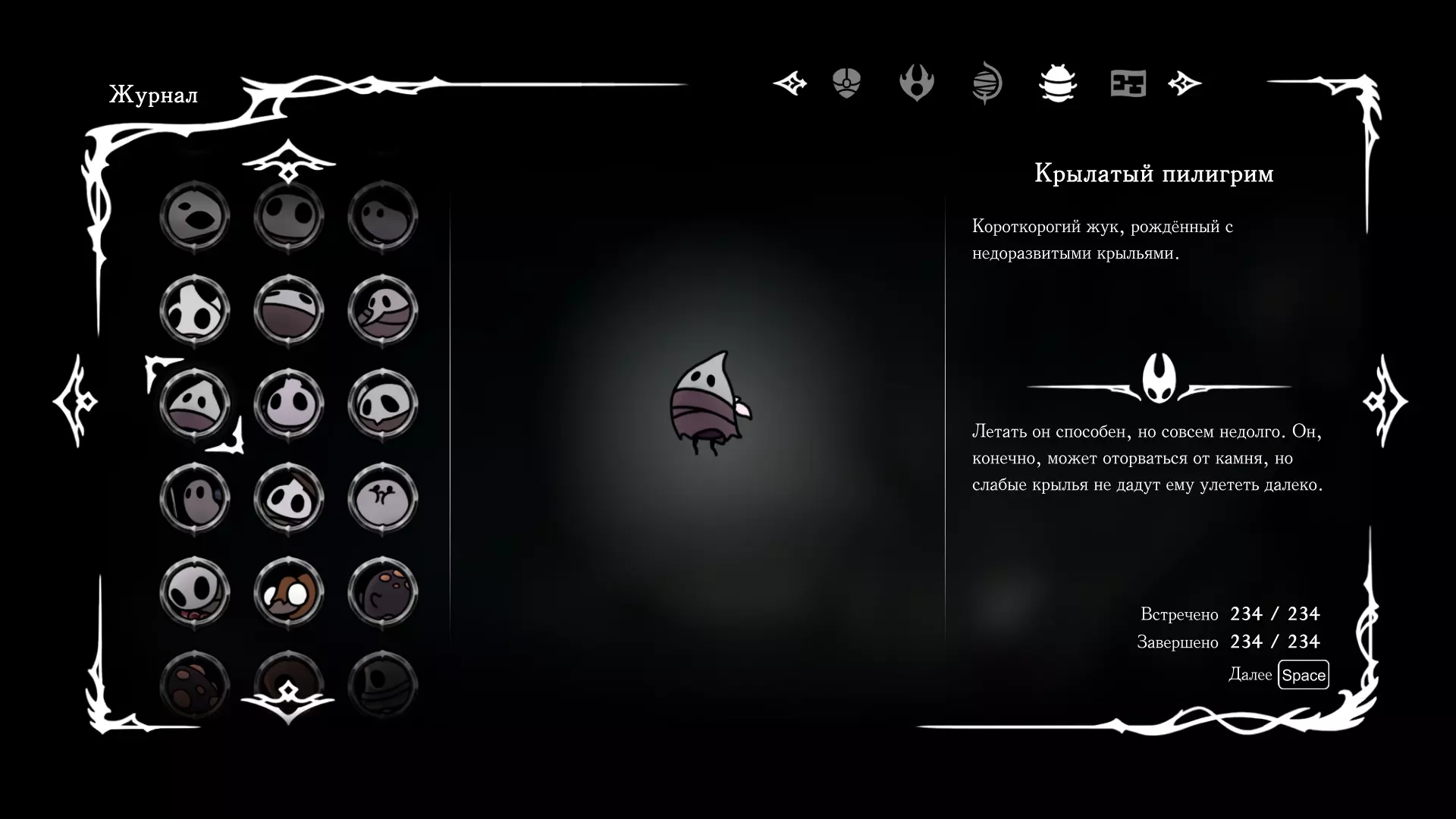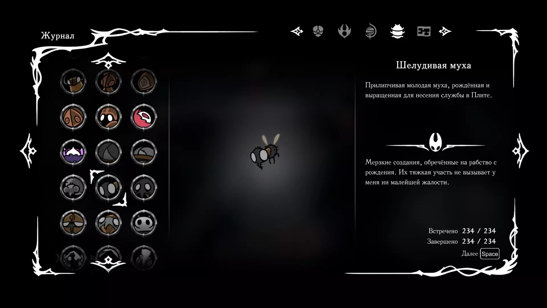 《空洞骑士:丝绸之歌》猎人日志填写指南,包含每个敌人/生物的位置及获取努乌纪念品的方法。信息将持续补充更新。 注意:大多数敌人在进入第三幕后会停止在原有位置刷新。例如,第三幕中水塘生物的生成数量从两三个变为单个。每次为了一个怪物都要跑到长凳那里,这种体验可不太好,所以建议在进入第三幕之前就立即填写日志。可以按下Ctrl+F键,输入你需要的怪物名称来查找。【沙克菈和加蒙德并非日志必需怪物】! 【回忆中的怪物,只要你击败了回忆中的首领(例如韦尔丹尼亚),就会自动记录到日志中】!如果找不到某个怪物,可以在评论区留言。我为这份指南花费了大量时间。【苔藓洞穴】