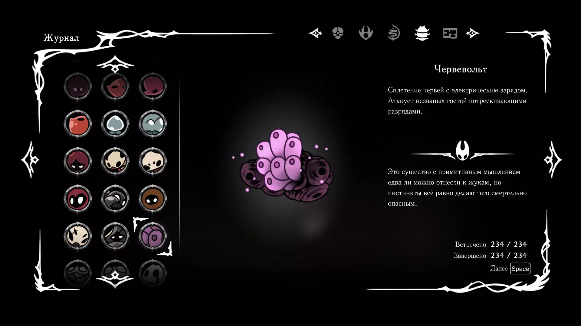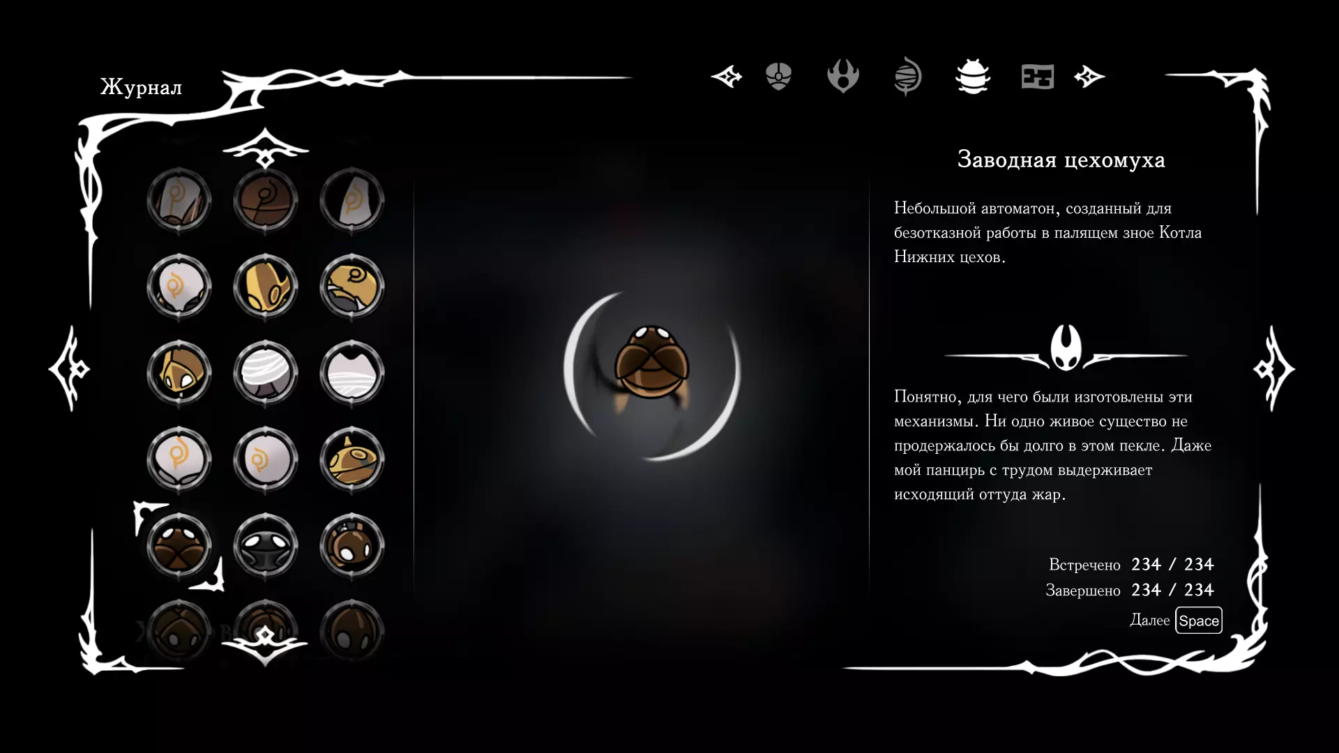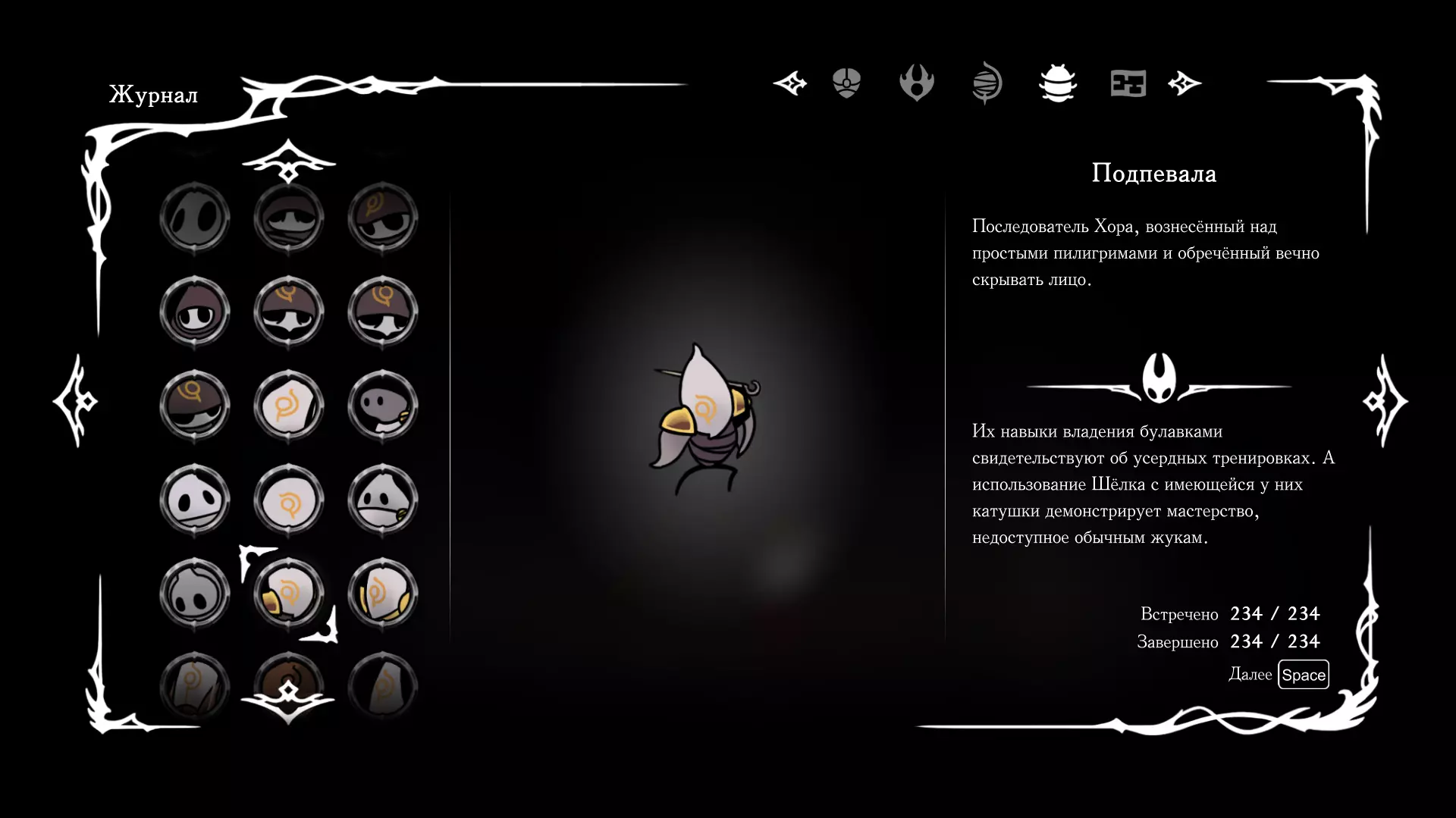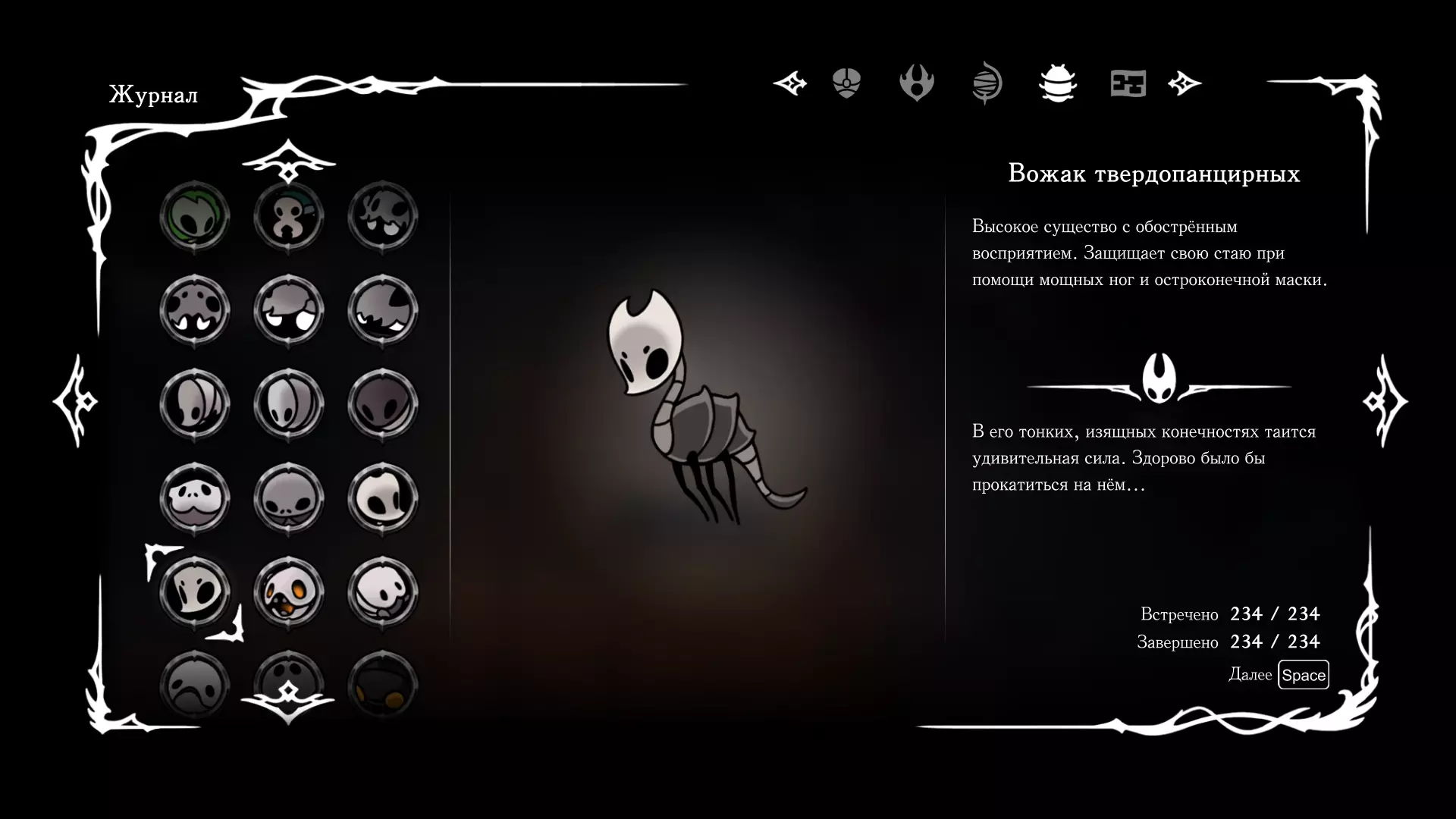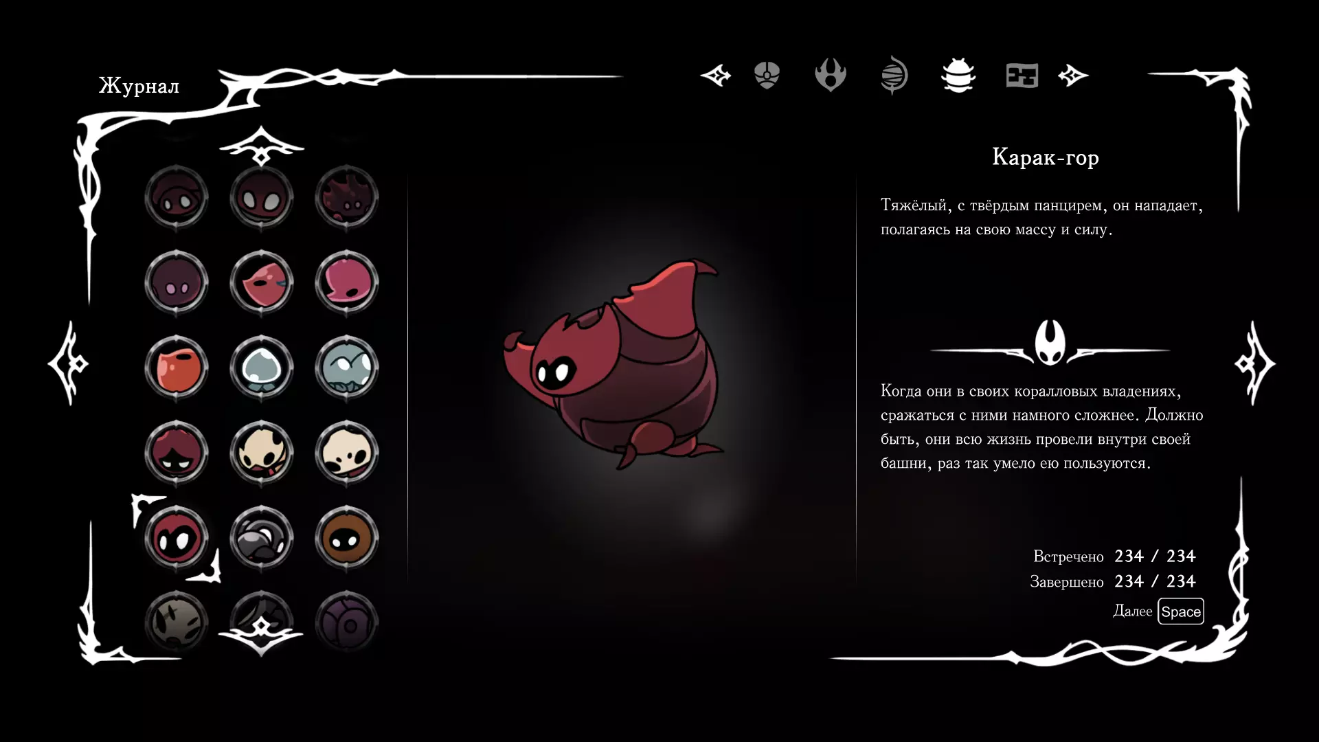 《空洞骑士:丝绸之歌》猎人日志填写指南,包含每个敌人/生物的位置及获取努乌纪念品的方法。信息将持续补充更新。 注意:大多数敌人在进入第三幕后会停止在原有位置刷新。例如,第三幕中水塘生物的生成数量从两三个变为单个。每次为了一个怪物都要跑到长凳那里,这种体验可不太好,所以建议在进入第三幕之前就立即填写日志。可以按下Ctrl+F键,输入你需要的怪物名称来查找。【沙克菈和加蒙德并非日志必需怪物】! 【回忆中的怪物,只要你击败了回忆中的首领(例如韦尔丹尼亚),就会自动记录到日志中】!如果找不到某个怪物,可以在评论区留言。我为这份指南花费了大量时间。【苔藓洞穴】