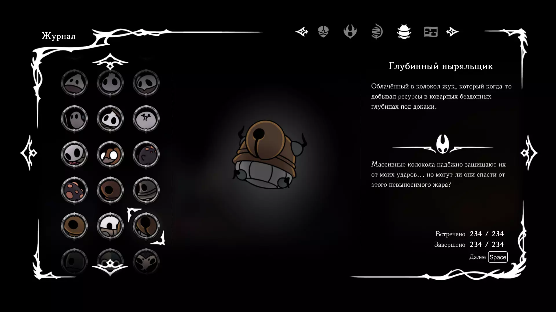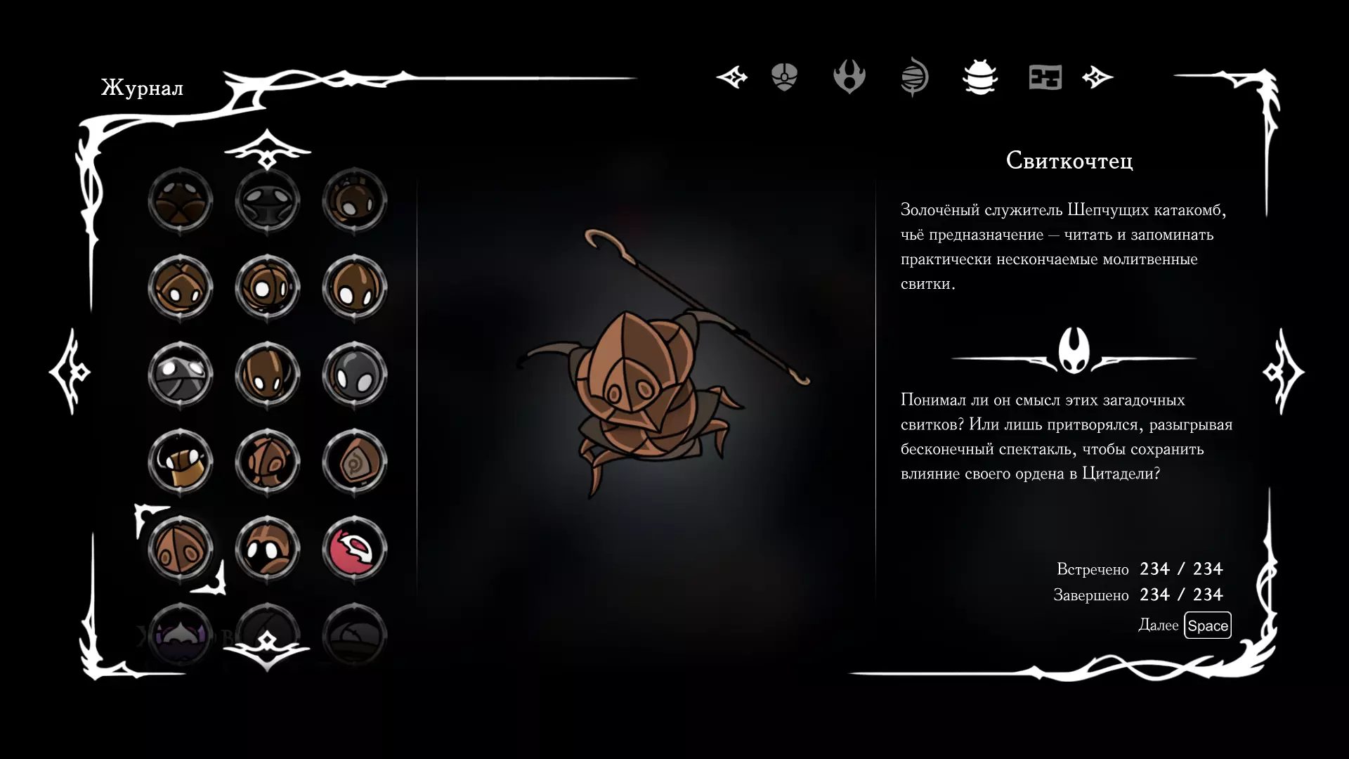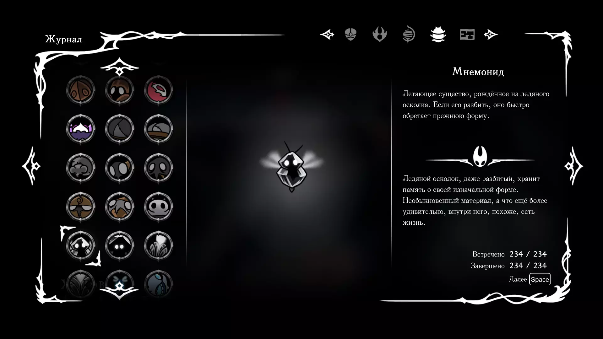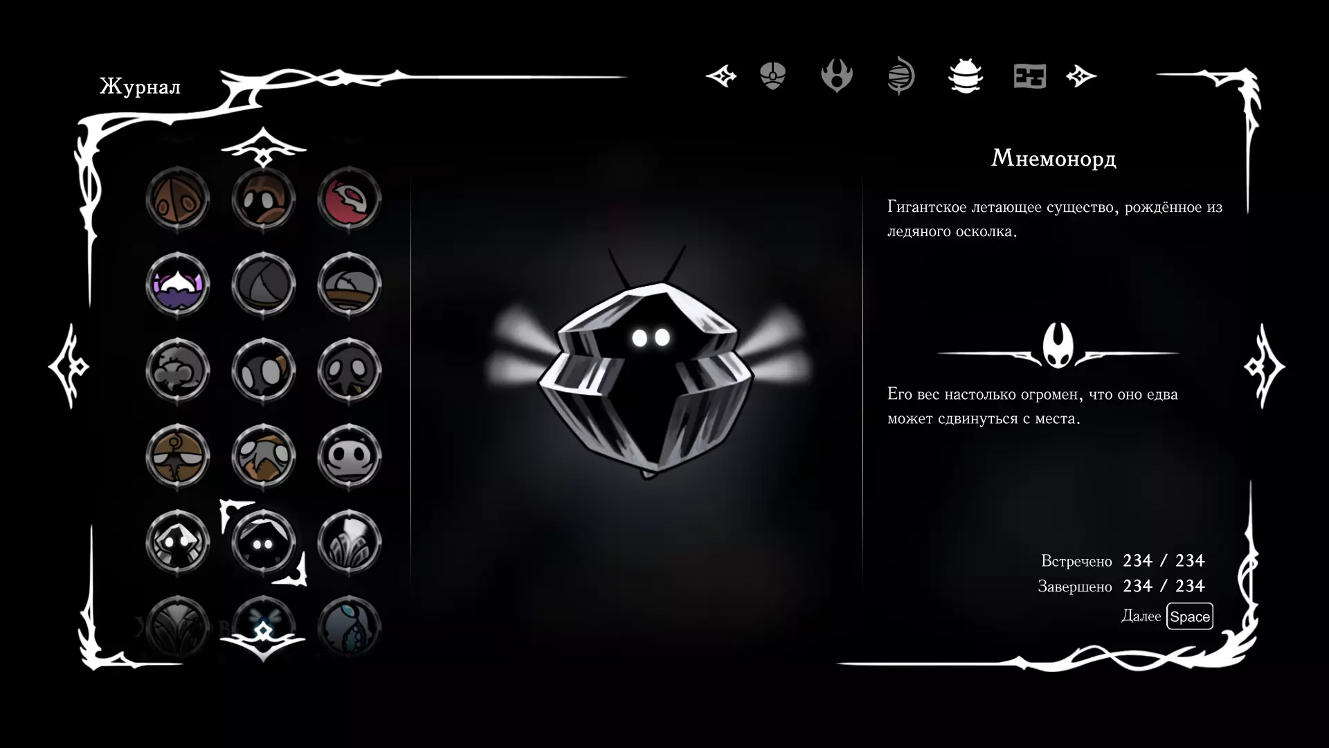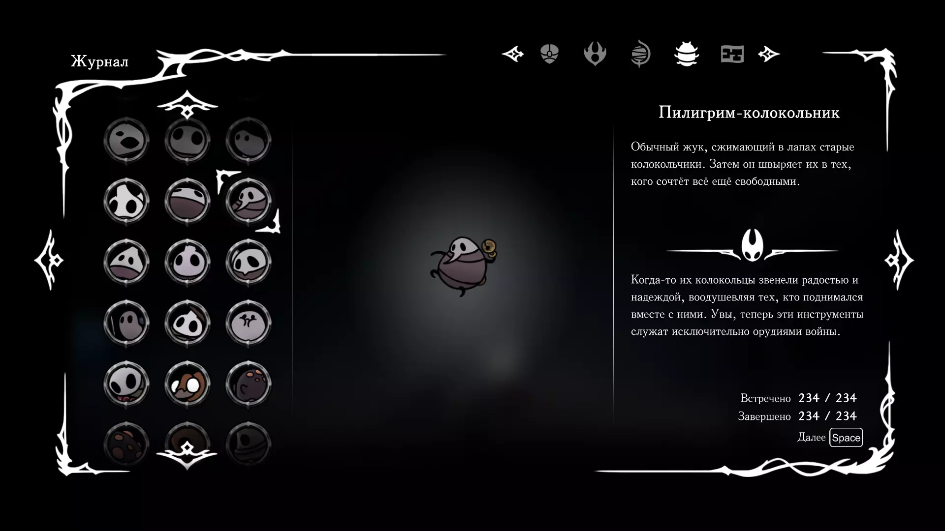《空洞骑士:丝绸之歌》猎人日志填写指南,包含每个敌人/生物的位置及获取努乌纪念品的方法。信息将持续补充更新。 注意:大多数敌人在进入第三幕后会停止在原有位置刷新。例如,第三幕中水塘生物的生成数量从两三个变为单个。每次为了一个怪物都要跑到长凳那里,这种体验可不太好,所以建议在进入第三幕之前就立即填写日志。可以按下Ctrl+F键,输入你需要的怪物名称来查找。【沙克菈和加蒙德并非日志必需怪物】! 【回忆中的怪物,只要你击败了回忆中的首领(例如韦尔丹尼亚),就会自动记录到日志中】!如果找不到某个怪物,可以在评论区留言。我为这份指南花费了大量时间。【苔藓洞穴】