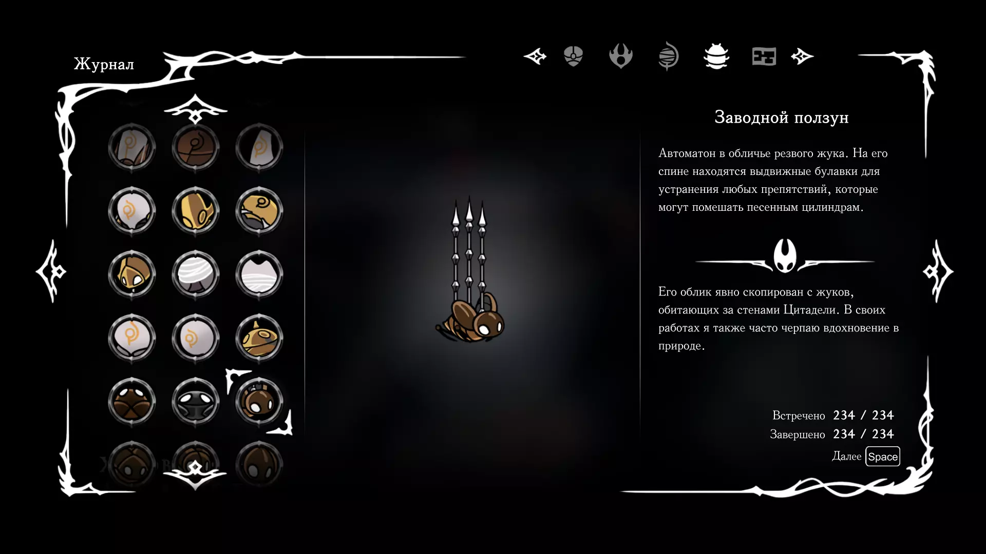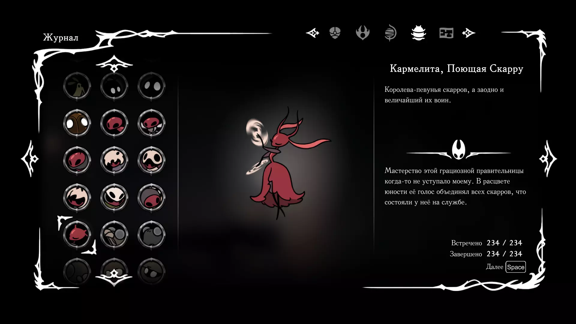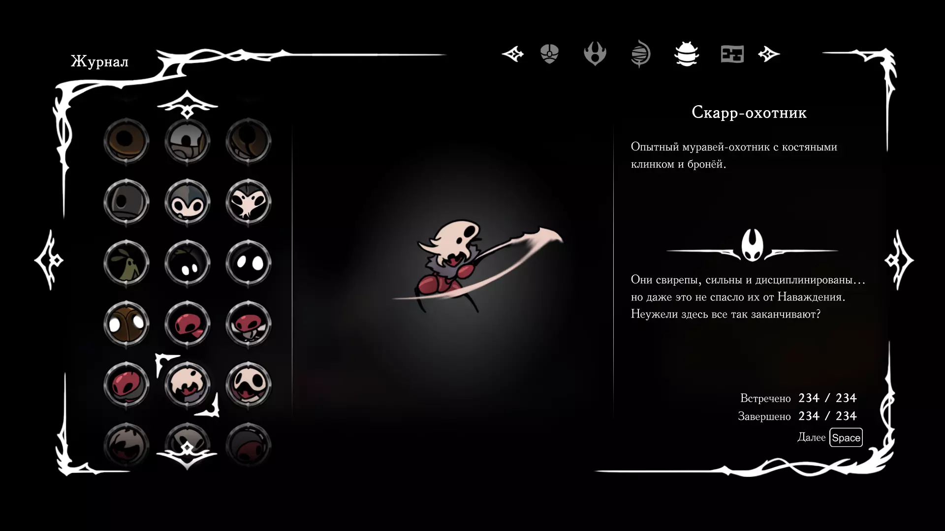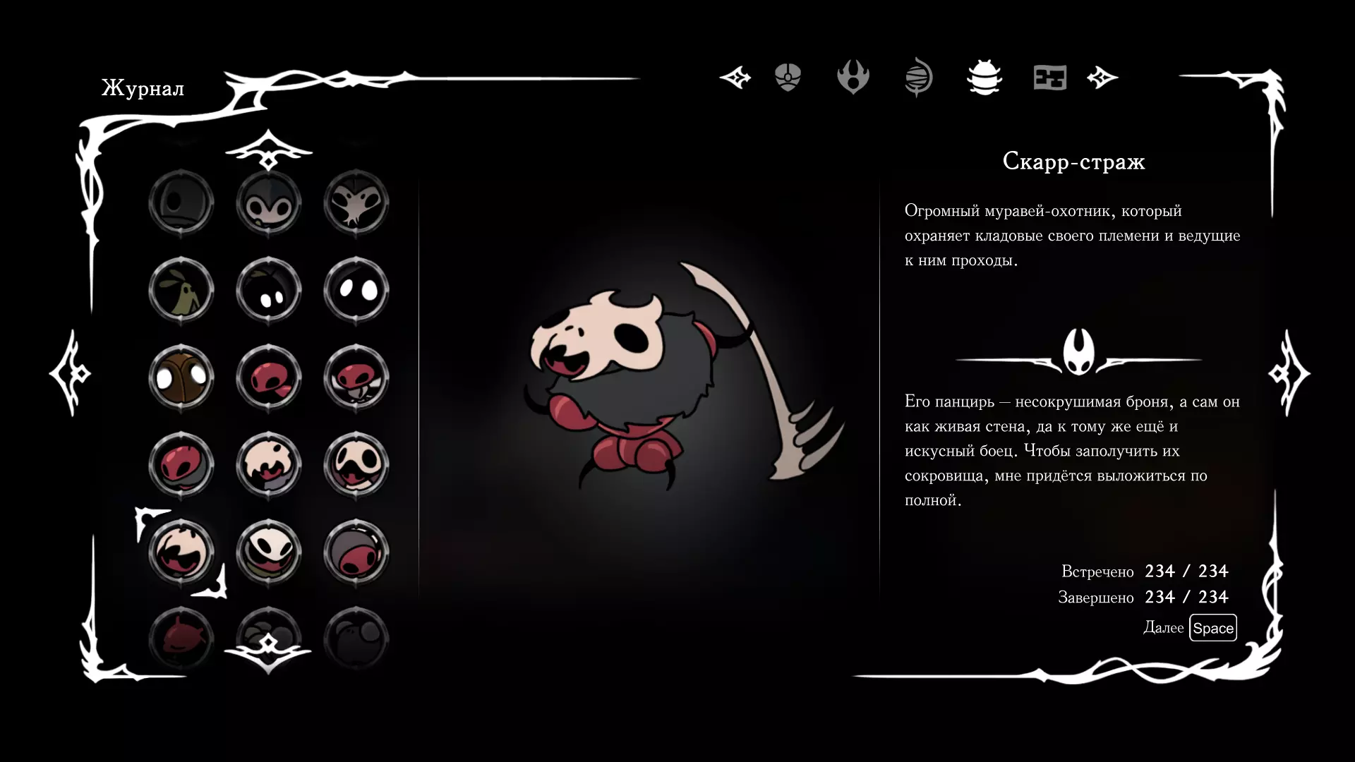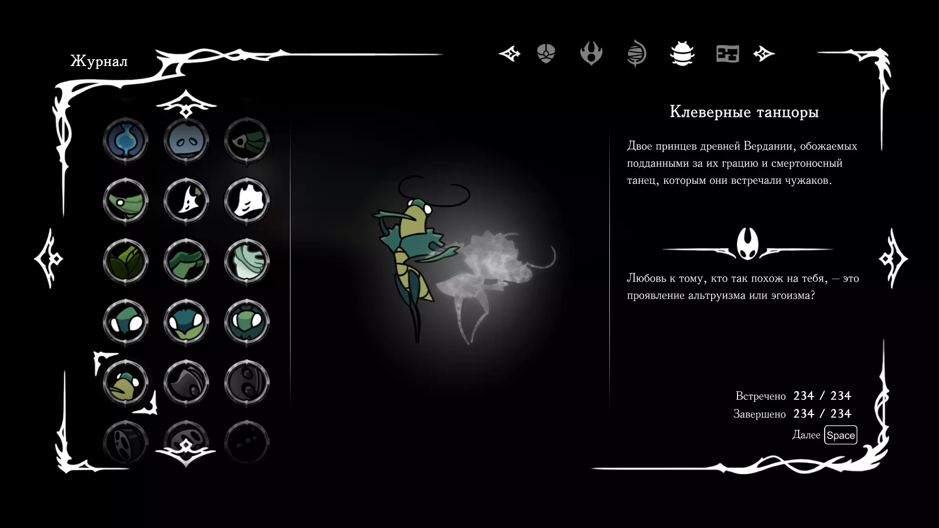 《空洞骑士:丝绸之歌》猎人日志填写指南,包含每个敌人/生物的位置及获取努乌纪念品的方法。信息将持续补充更新。 注意:大多数敌人在进入第三幕后会停止在原有位置刷新。例如,第三幕中水塘生物的生成数量从两三个变为单个。每次为了一个怪物都要跑到长凳那里,这种体验可不太好,所以建议在进入第三幕之前就立即填写日志。可以按下Ctrl+F键,输入你需要的怪物名称来查找。【沙克菈和加蒙德并非日志必需怪物】! 【回忆中的怪物,只要你击败了回忆中的首领(例如韦尔丹尼亚),就会自动记录到日志中】!如果找不到某个怪物,可以在评论区留言。我为这份指南花费了大量时间。【苔藓洞穴】