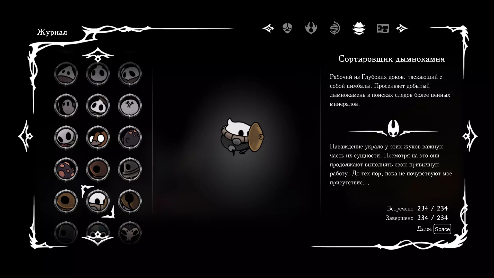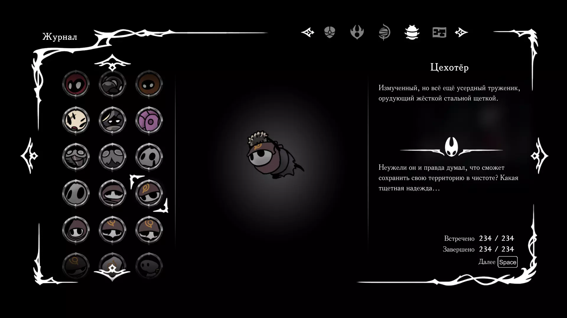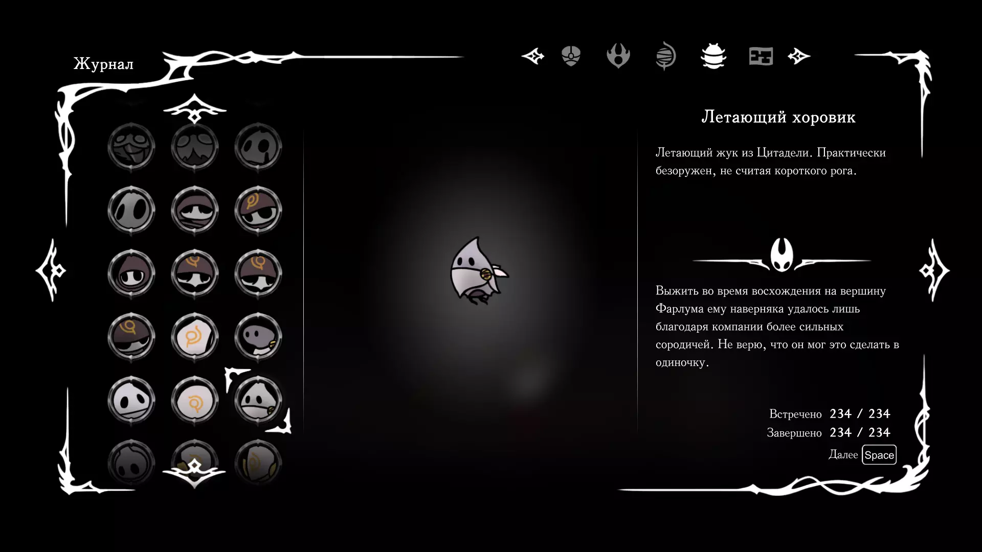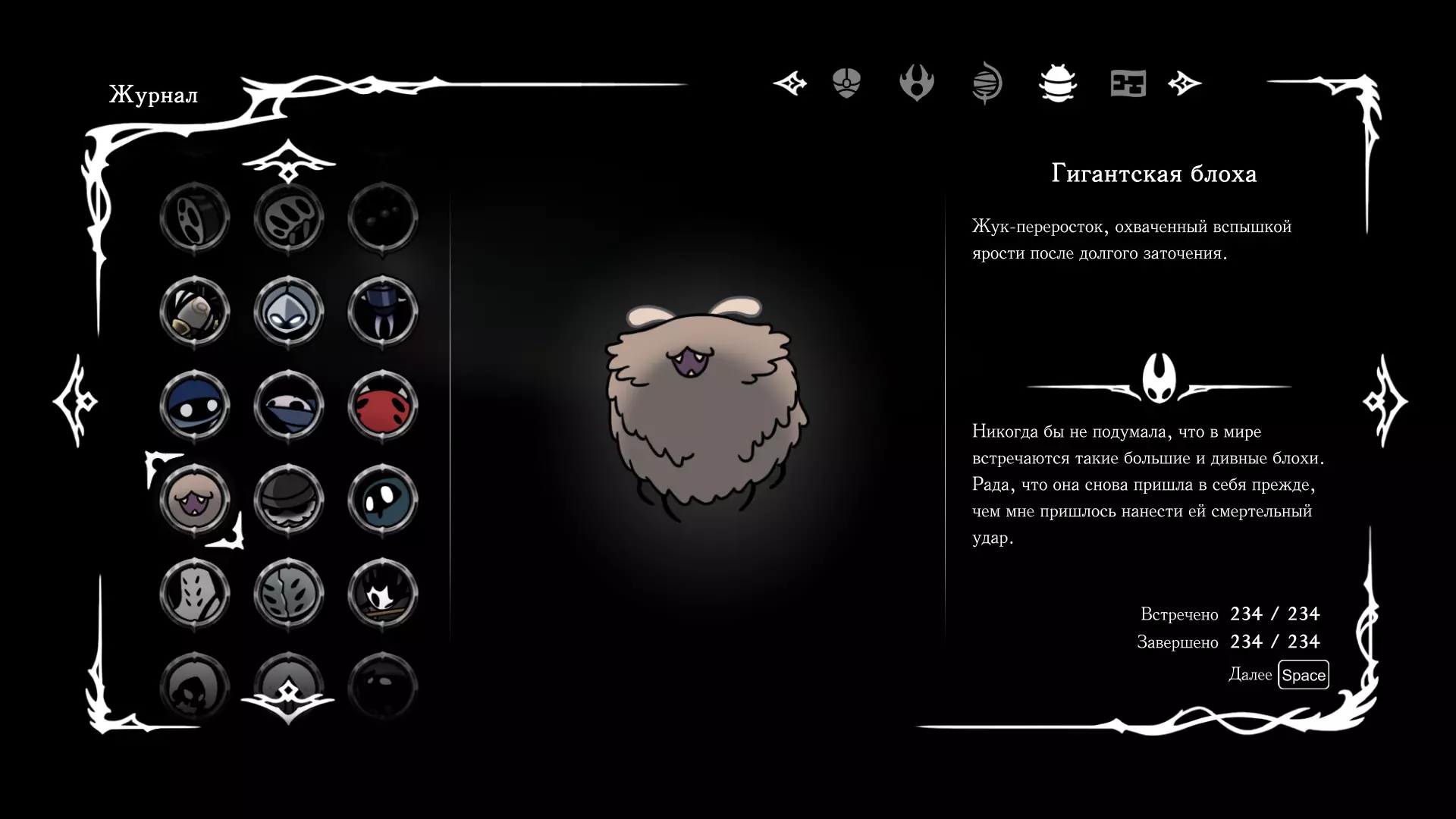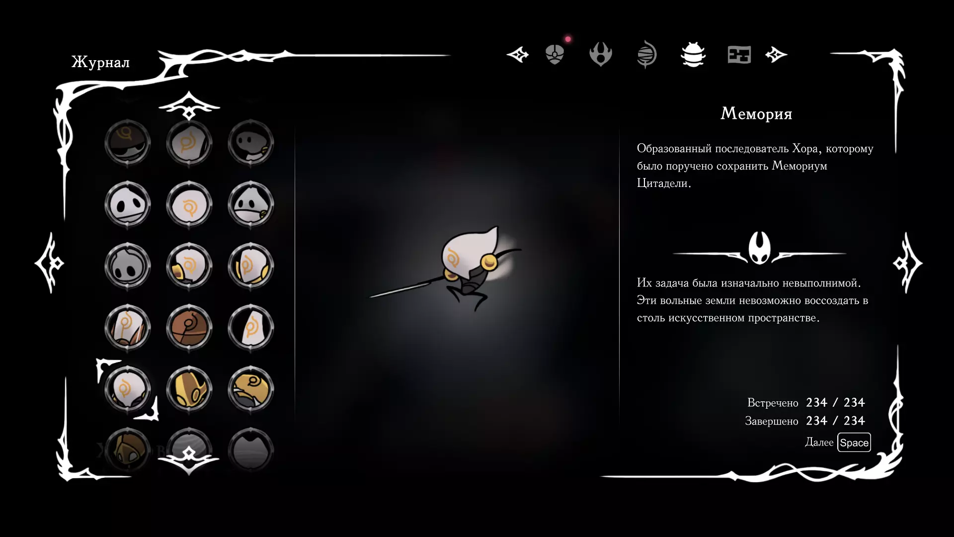 《空洞骑士:丝绸之歌》猎人日志填写指南,包含每个敌人/生物的位置及获取努乌纪念品的方法。信息将持续补充更新。 注意:大多数敌人在进入第三幕后会停止在原有位置刷新。例如,第三幕中水塘生物的生成数量从两三个变为单个。每次为了一个怪物都要跑到长凳那里,这种体验可不太好,所以建议在进入第三幕之前就立即填写日志。可以按下Ctrl+F键,输入你需要的怪物名称来查找。【沙克菈和加蒙德并非日志必需怪物】! 【回忆中的怪物,只要你击败了回忆中的首领(例如韦尔丹尼亚),就会自动记录到日志中】!如果找不到某个怪物,可以在评论区留言。我为这份指南花费了大量时间。【苔藓洞穴】