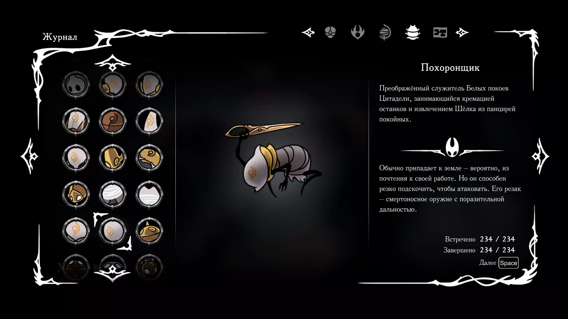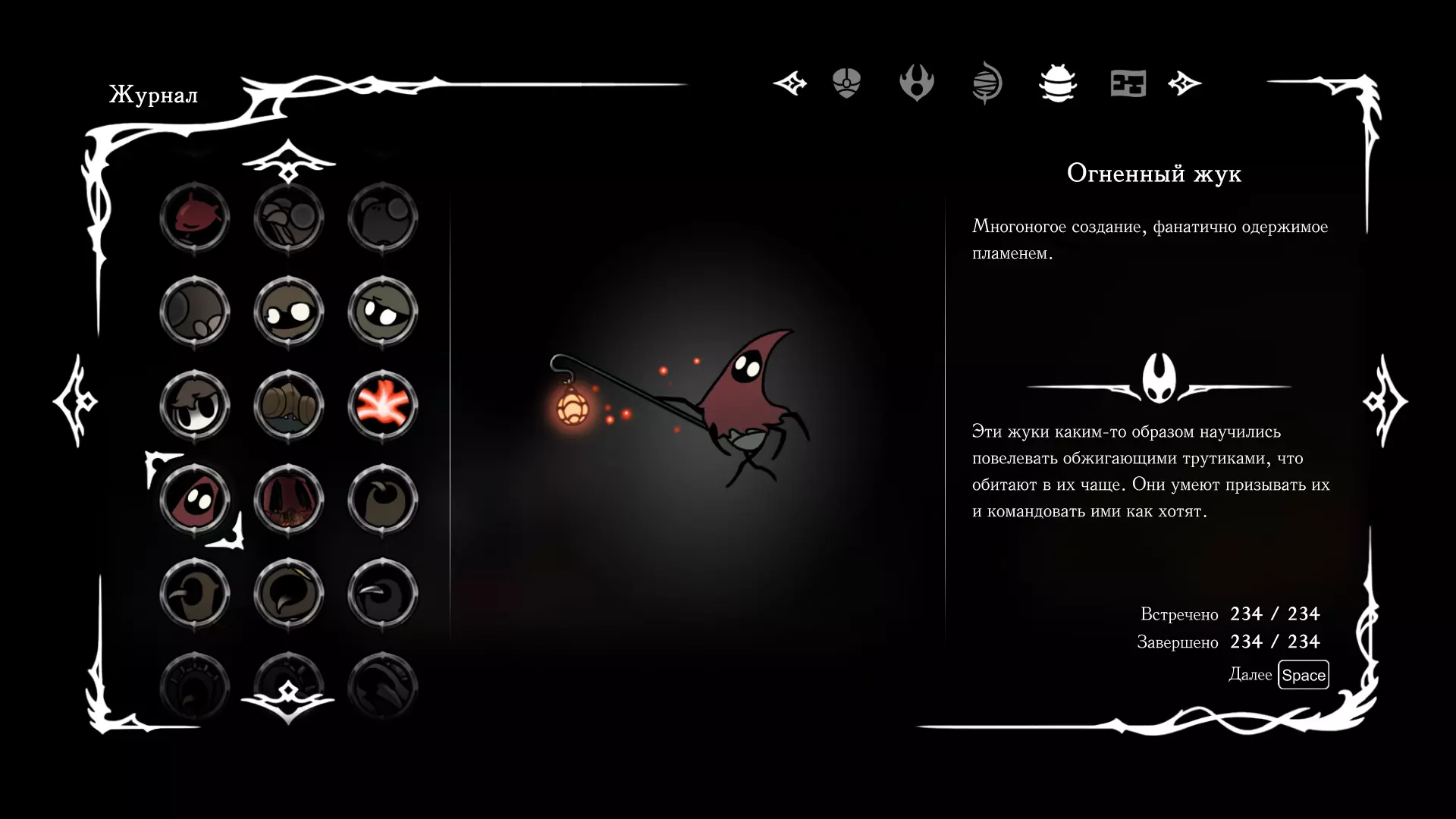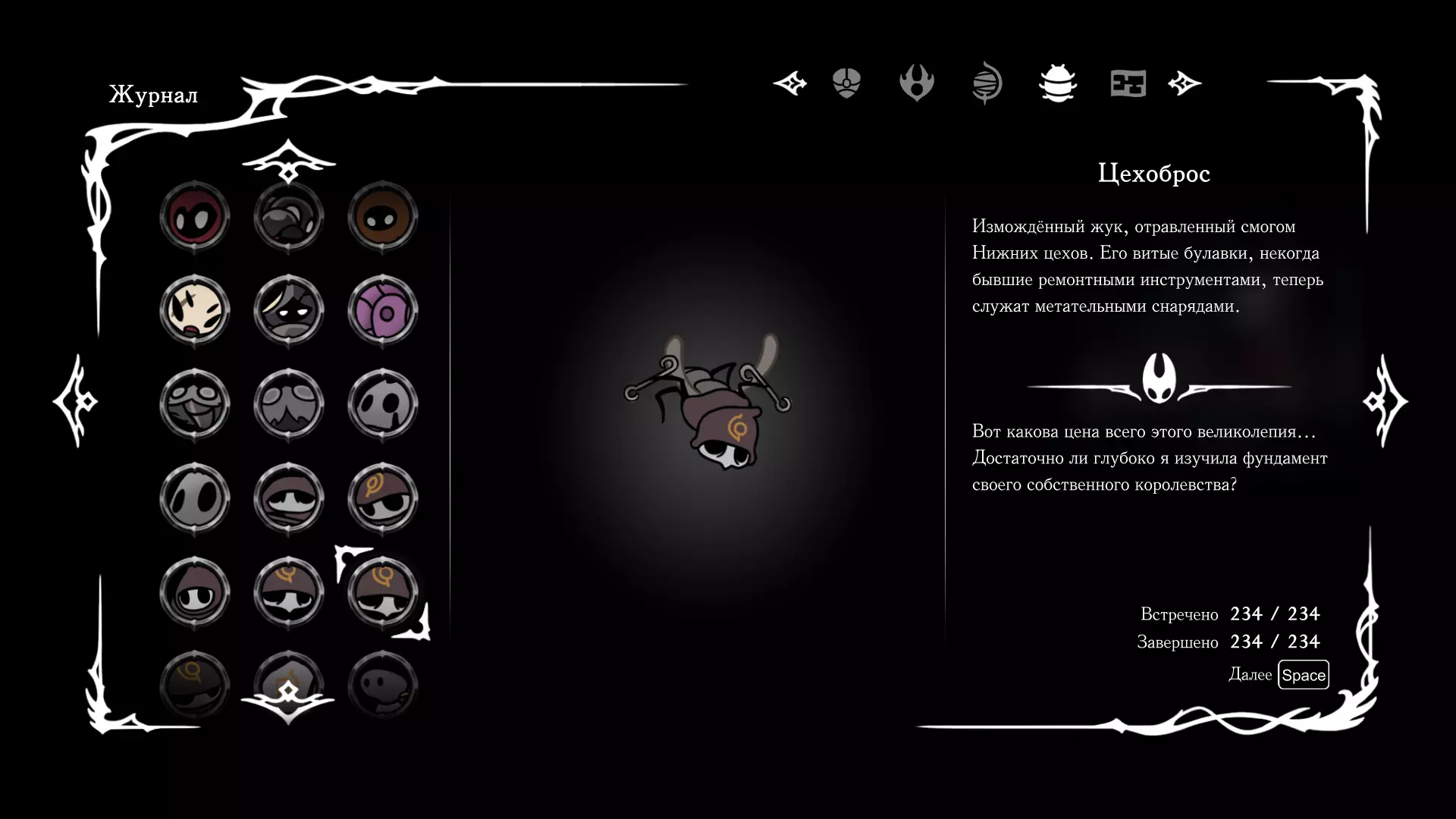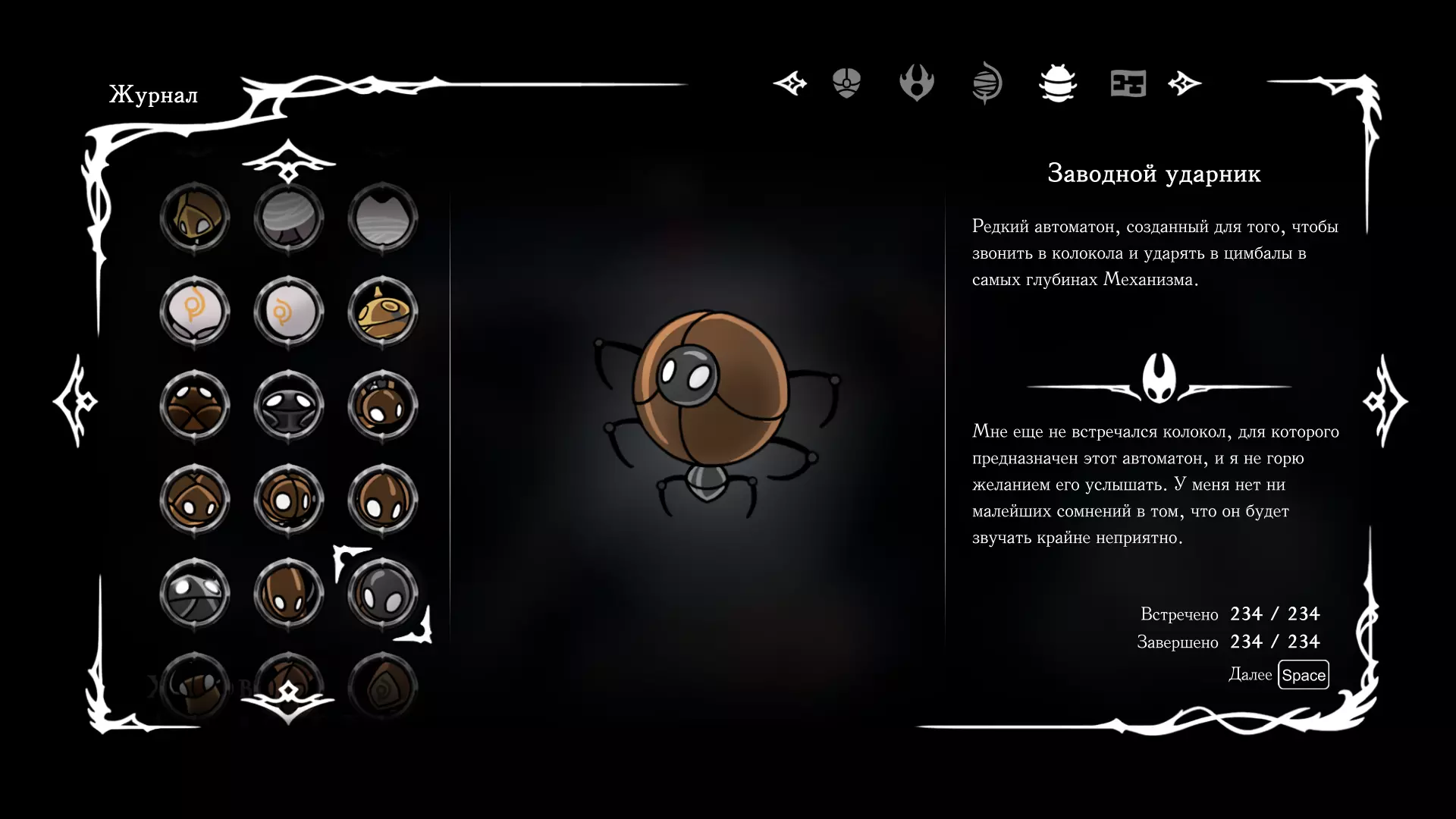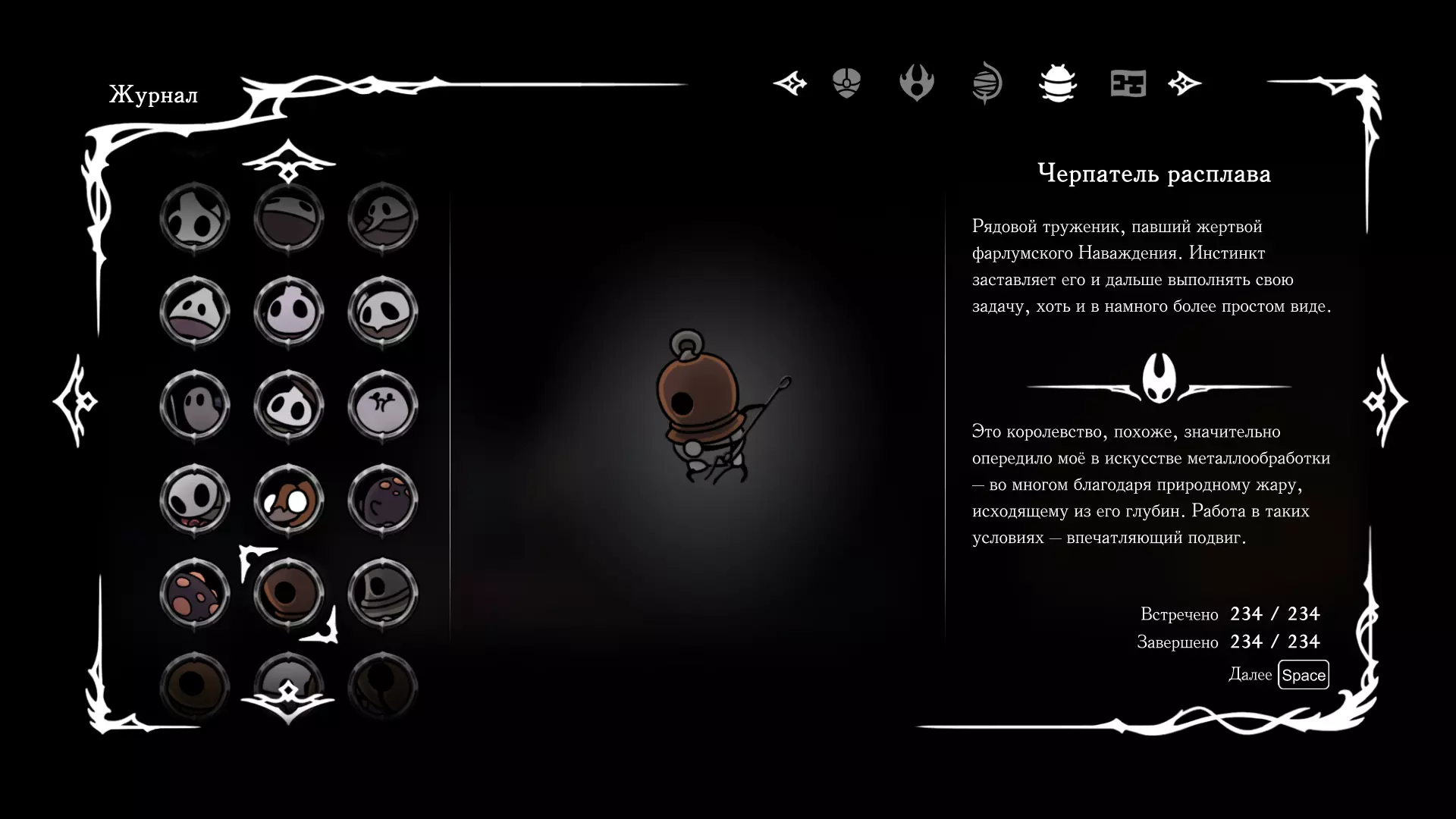 《空洞骑士:丝绸之歌》猎人日志填写指南,包含每个敌人/生物的位置及获取努乌纪念品的方法。信息将持续补充更新。 注意:大多数敌人在进入第三幕后会停止在原有位置刷新。例如,第三幕中水塘生物的生成数量从两三个变为单个。每次为了一个怪物都要跑到长凳那里,这种体验可不太好,所以建议在进入第三幕之前就立即填写日志。可以按下Ctrl+F键,输入你需要的怪物名称来查找。【沙克菈和加蒙德并非日志必需怪物】! 【回忆中的怪物,只要你击败了回忆中的首领(例如韦尔丹尼亚),就会自动记录到日志中】!如果找不到某个怪物,可以在评论区留言。我为这份指南花费了大量时间。【苔藓洞穴】