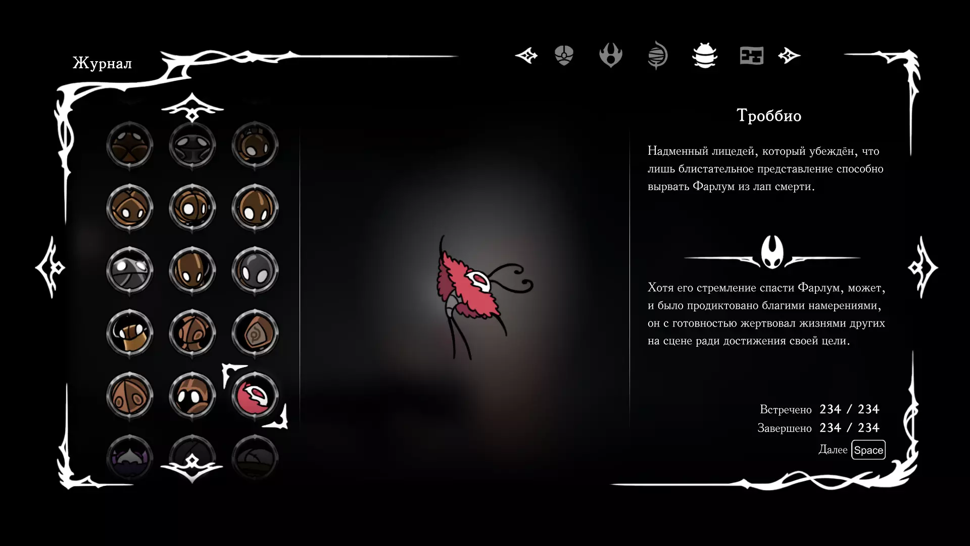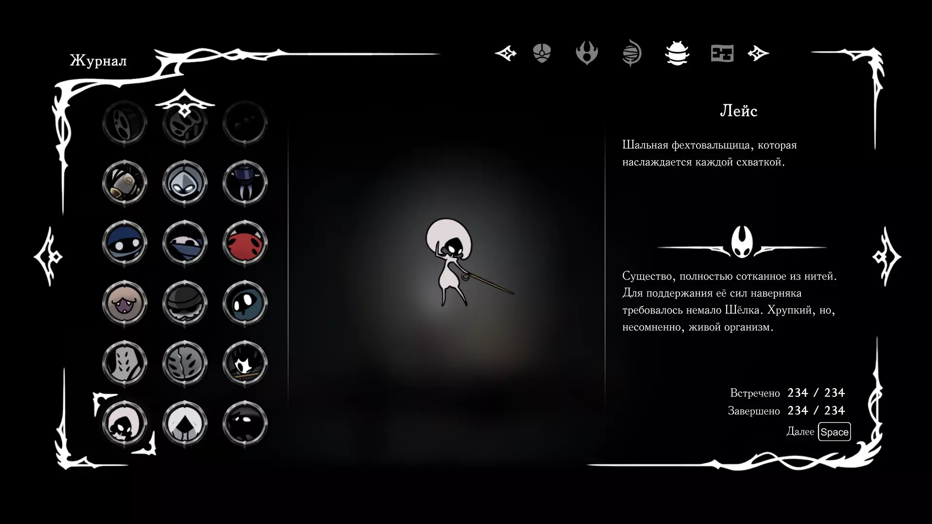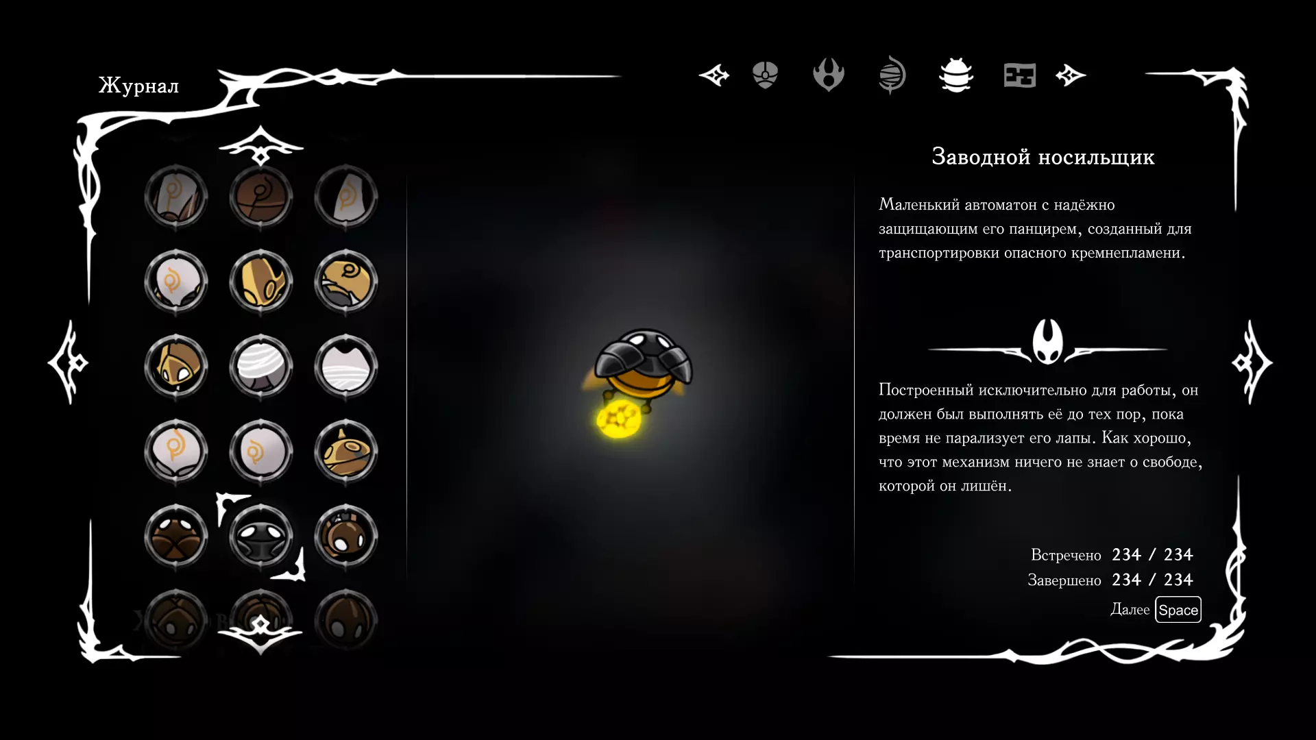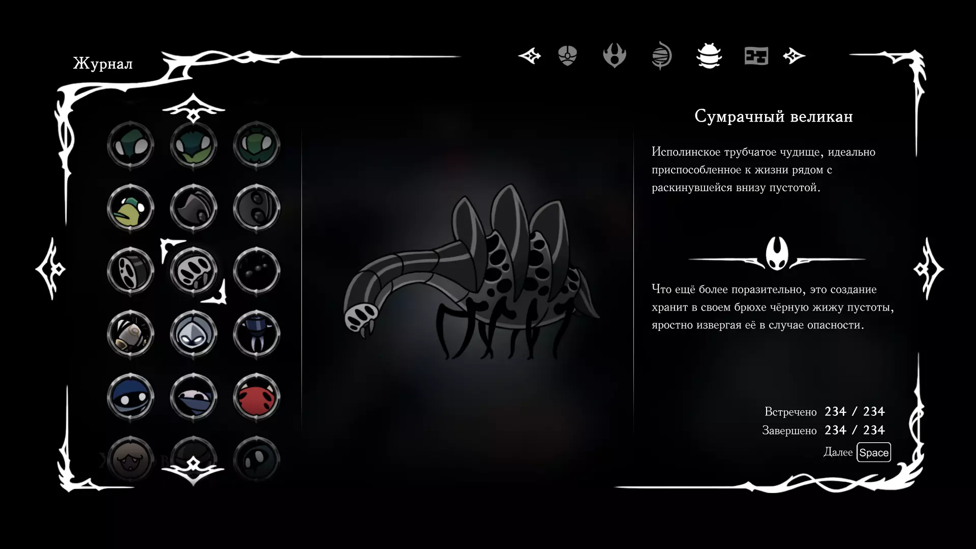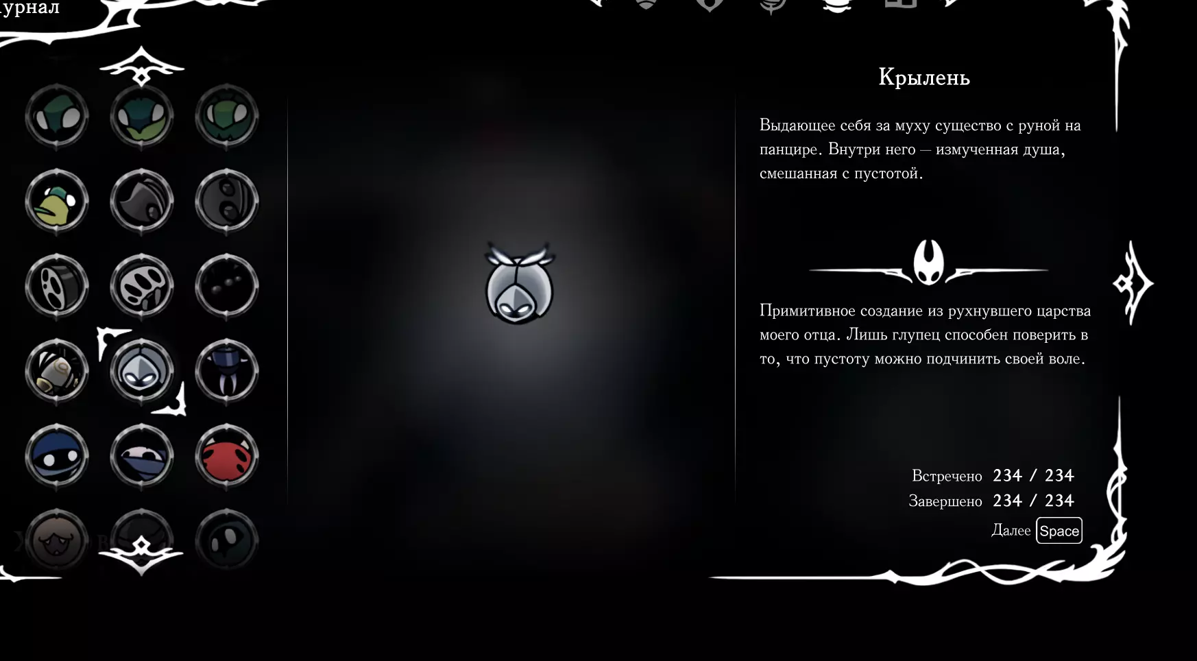 《空洞骑士:丝绸之歌》猎人日志填写指南,包含每个敌人/生物的位置及获取努乌纪念品的方法。信息将持续补充更新。 注意:大多数敌人在进入第三幕后会停止在原有位置刷新。例如,第三幕中水塘生物的生成数量从两三个变为单个。每次为了一个怪物都要跑到长凳那里,这种体验可不太好,所以建议在进入第三幕之前就立即填写日志。可以按下Ctrl+F键,输入你需要的怪物名称来查找。【沙克菈和加蒙德并非日志必需怪物】! 【回忆中的怪物,只要你击败了回忆中的首领(例如韦尔丹尼亚),就会自动记录到日志中】!如果找不到某个怪物,可以在评论区留言。我为这份指南花费了大量时间。【苔藓洞穴】