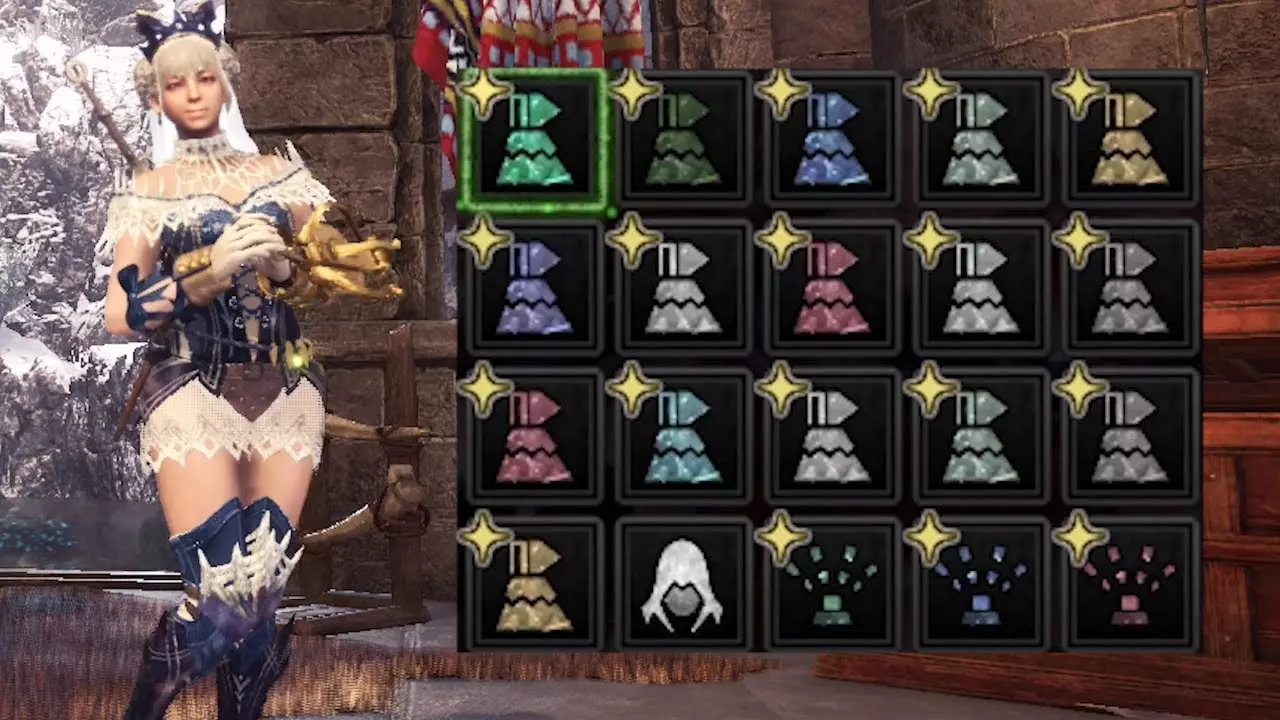 投射器是《怪物猎人:世界》中的实用工具之一。该装置允许你向怪物和环境发射投射器“弹药”。通过拾取环境中的特定物品,你的角色会为投射器装填弹药。之后你可以向怪物、可破坏结构发射这些弹药,或者在《怪物猎人:世界 冰原》中,一次性卸下所有弹药使怪物畏缩。投射器弹药种类繁多,因此我将简要介绍一些最重要的类型,不过多剧透。 【龙击弹】 - 可移除龙类的某些 aura 能力。 【闪光弹】 - 短暂击晕怪物,随后使其短时间失明。这可以打断某些攻击,导致怪物摔倒并自我眩晕。【 dung pods(粪便玉)】- 对于那些烦人的入侵者,向怪物发射这个,它会厌恶地逃跑。 【 bomb pods(爆弹玉)】- 击中怪物后爆炸,使其眩晕。 【 screamer pods(音爆玉)】- 只对少数怪物真正有用,但它们确实如名字所示,会发出尖叫。 【 thorn pods(尖刺玉)】- 在怪物身上留下尖刺,攻击被尖刺附着的身体部位时,会对怪物造成额外伤害。 游戏中还有多种其他玉类,其中一些如玉 moss pods(苔藓玉)可以抵消某些怪物的能力。需要注意的一点是,每种玉都有其用途。即使是向怪物发射潮湿的苔藓球,有时也会很有用。 抓钩爪
