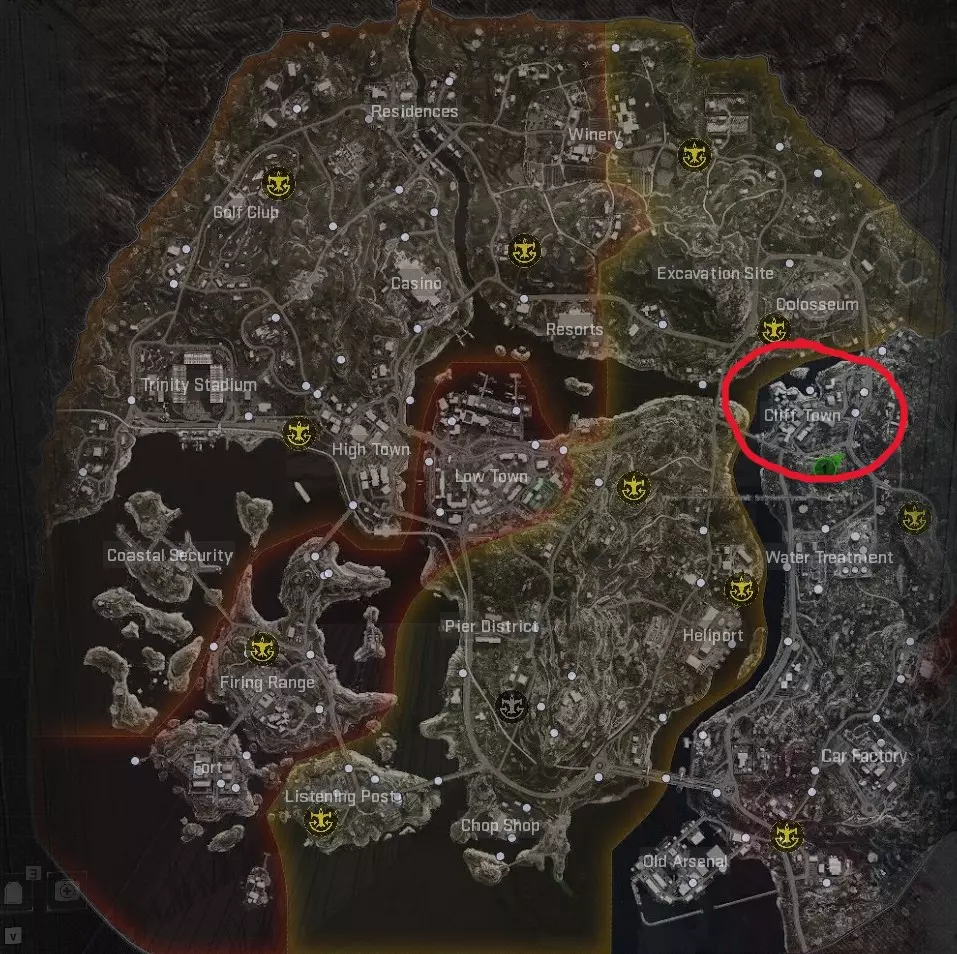 低等级干员(CR1-30) 简单总结: - 升级枪械 - 前往悬崖镇 - 击杀敌人 等级较低并不意味着无法完成挑战。 和之前一样,第一步是升级你的枪械。你可以轻松清理一个1级基地,至少获得一件 uncommon/绿色品质的升级,但我至少建议尝试清理一个2级基地,以获取 rare/蓝色品质的升级。不过,如果你较晚加入比赛,很可能会有 legendary/金色或 epic/紫色品质的升级台处于开放状态。打开地图查看图标,如果在基地看到这些图标,说明它们可以使用。直接前往那里(要小心,基地可能没有被完全清理,低CR干员会被轻易击败),升级枪械后返回1级区域。