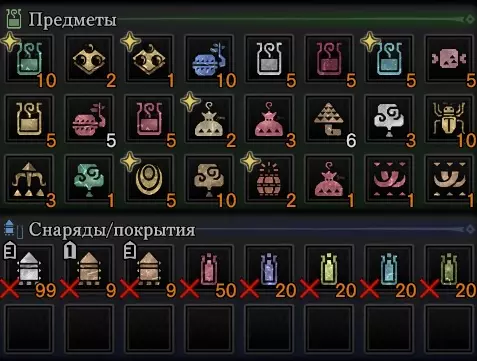 狩猎准备与背包 食物。首先,在狩猎前我会使用美食家券来100%激活食技。 研磨猫有几率减少打磨时的次数,黑带猫则能降低回避时的耐力消耗。食物通常选择攻击强化L,极少数情况会选择抗性提升L。 背包。 简要介绍一下可携带的实用物品组合。作为输出型DPS进行狩猎时,我使用两套主要的背包配置,大致分为针对可捕获怪物和不可捕获怪物的配置。 经典配置。