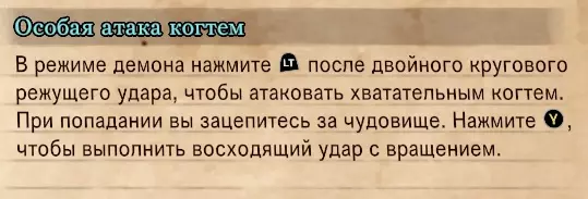 要使用此攻击,需在恶魔模式下施展双重旋转攻击,随后按下LT键使用抓取爪。 正确施展特殊爪击后,我们将抓住怪物,并获得选择:要么在短暂停顿后施展普通充能释放攻击,要么立即使用旋转上升斩。 3 旋转上升斩
