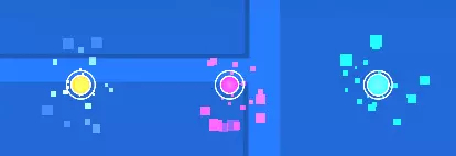 这些是“垫子”。黄色“垫子”会让你向上跳。粉色垫子会让你跳得低一些。蓝色垫子会让你翻转。