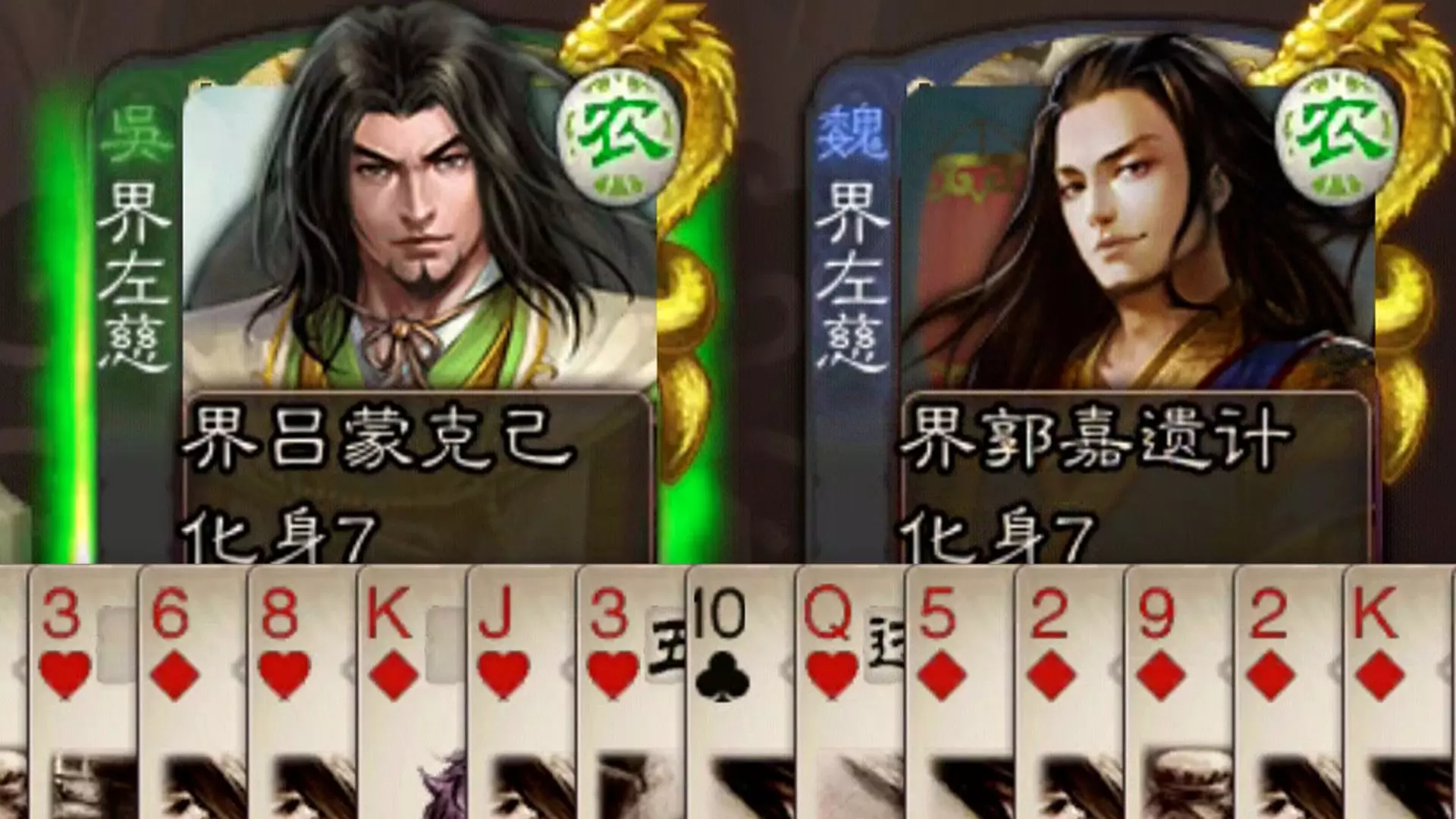 这是一则三国杀游戏对局内容,展示了玩家使用麹义,也就是白马,在多局对战中发动伏骑、骄恣等技能,打出多张南蛮入侵,为避免对局翻车,一共打出9个南蛮入侵的游戏过程。