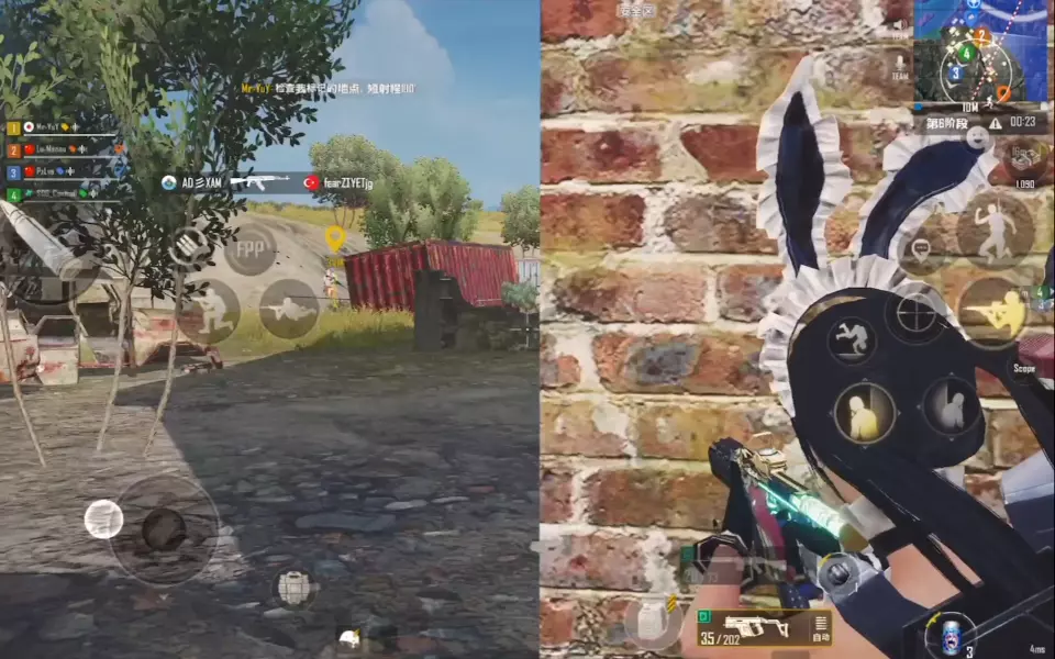 这里分享电子竞技游戏未来之役的对局画面,展示了玩家在对局第一阶段被击倒后,爬行转移的不同场景,记录了未来之役四排对局前期被击倒的游戏状态。