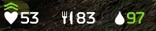 当饱食度和水分值变为0时,体力会下降。相反,当饱食度和水分值保持在一定水平以上(大概60到75左右?)时,体力会恢复。本作中快速恢复体力的手段较少,所以有多余精力的话建议保持这两项数值为绿色。现成的食物和饮料属于相当稀有的物品,无法作为稳定的补给来源。