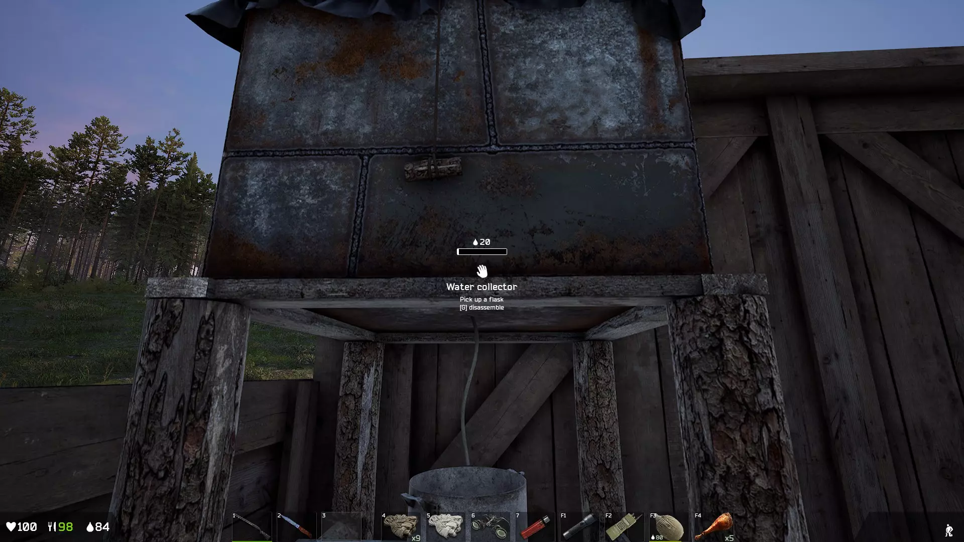 水要从这个供水塔打水。要是在附近看到的话,不用客气直接喝吧。 擅自使用附近的供水塔,结果水用完的时候被房东发现了,然后就被默默地拆除了。