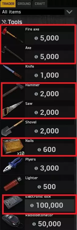 必要物资 金额 斧头(任意类型) 5k 锤子 2k 锯子 2k 钉子约200个 12k 电子锁 100k 总计 121k 3.搜刮心得 搜刮备忘录 要充分了解背包的使用规则 要懂得取舍,果断舍弃不需要的物品 鬣狗任务才是强者的选择 1.背包系统机制 1. 服装本身设有装备栏位,栏位数量随稀有度提升而增加。 2. 衣物只能存放在背包中,但背包无法放入其他背包。 3. 金属碎片等小物件可放入口袋,工具腰带也具备一定的背包功能。 4. 枪械及近战武器仅能放入对应类型的栏位。 物品取舍建议 1. 除生存必需物品和计划用于建造的材料外,其他物品建议出售或丢弃。 2. 不常用的弹药及看似稀有的武器,应及时处理(出售或丢弃)。 3. 游戏初期最珍贵的资源是背包的空余栏位。