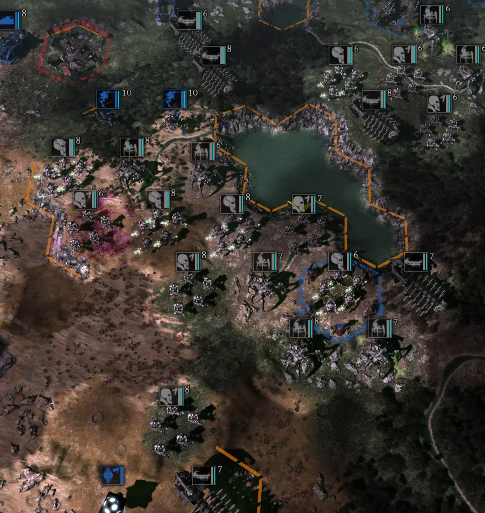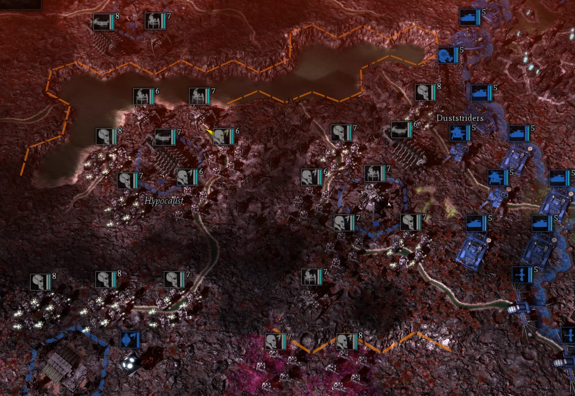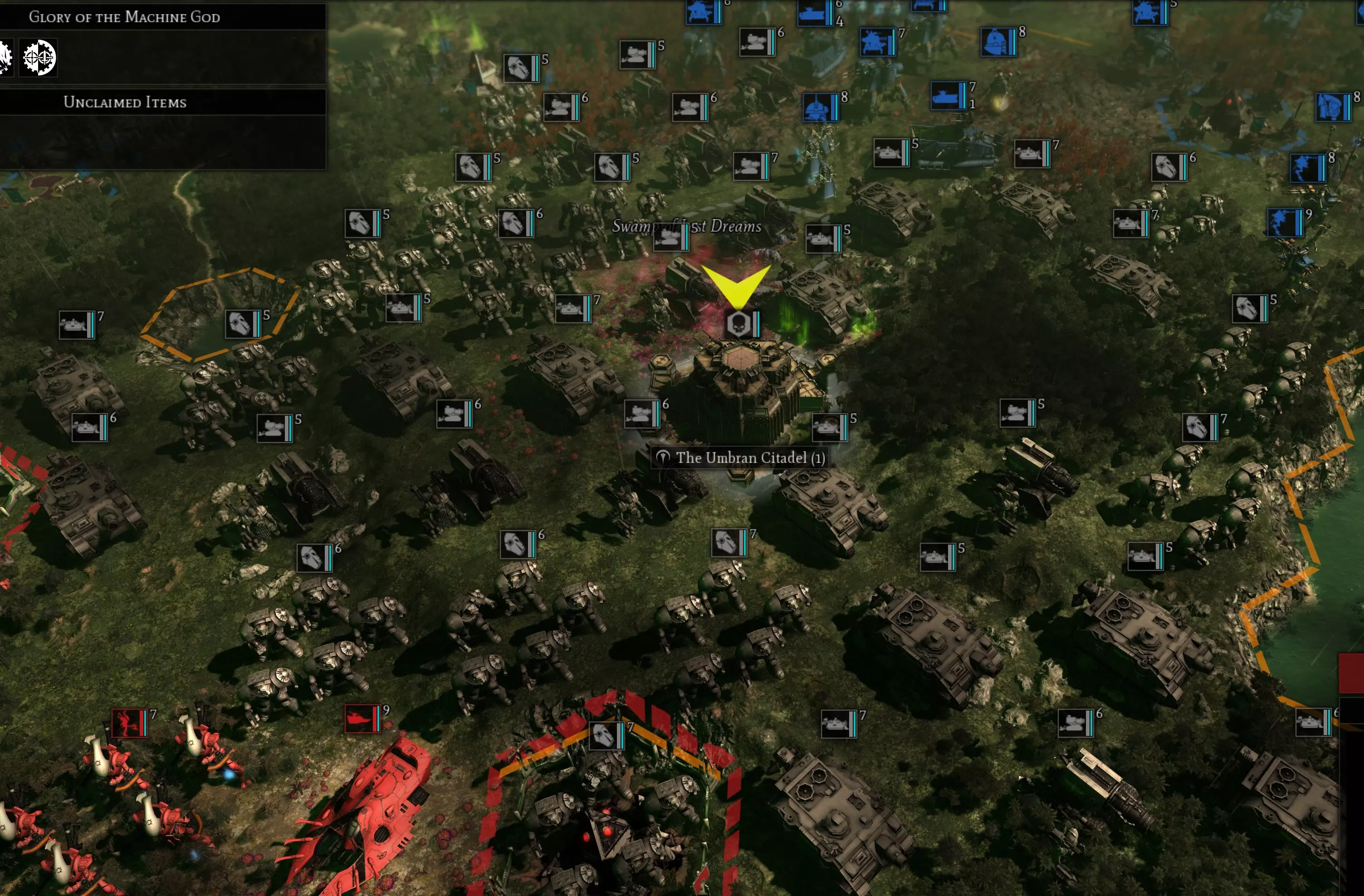战斗 又一场战斗?没错!厌倦战斗了吗?那可太糟了,因为这场战斗会非常疯狂。你将面对一座靠近你城市的中立星际战士城市,它周围会有大约40支不同的部队小队,等级均为5-7级。在我的游戏中,这些部队只有3种单位类型:终结者、雷火炮和 vindicator 坦克。请看我游戏中的截图。