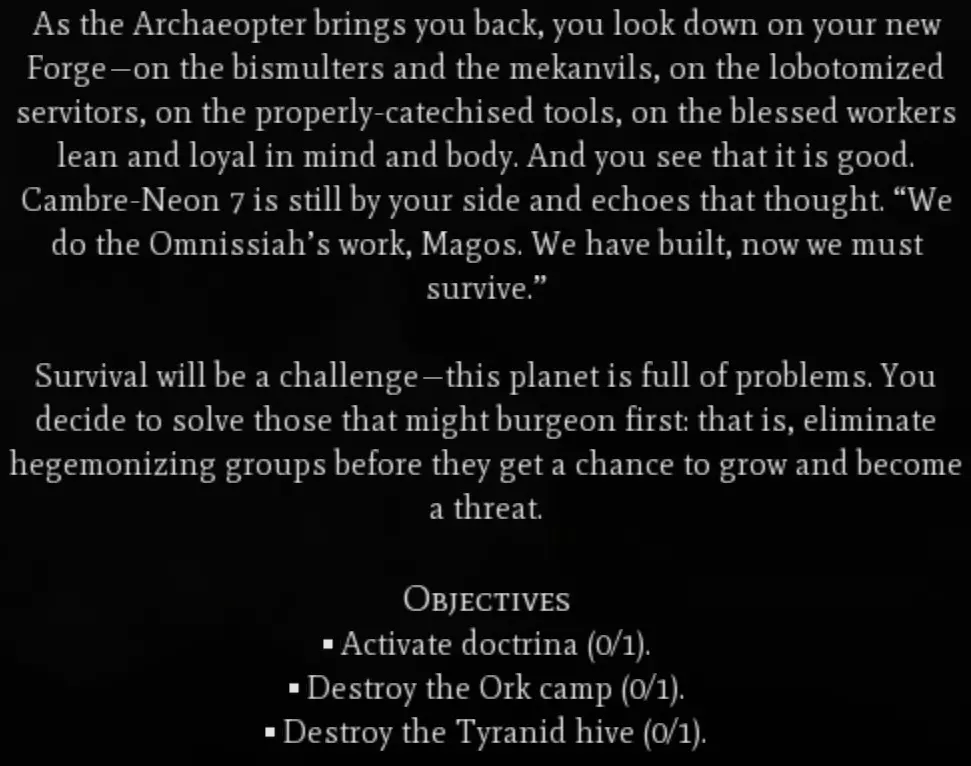 本指南详细介绍了机械神教战役中的每个任务,并让玩家了解何时可以暂停以对抗AI敌人、研究技术以及在任务间隙建设城市。 简介 《格劳克斯》中的战役是对标准4X玩法的有趣补充。由于大量敌对势力的攻击,它们往往带来的是挫败感而非乐趣。没有什么比在即将胜利时,因为事件时间限制或大规模入侵部队而输掉一场漫长的游戏更糟糕的了。 战役主要有三种任务类型: 探索。 生产。 战斗。在探索和生产任务中,你通常可以暂停战役进度,去应对AI敌对派系或增强自己的部队,但你很难预知战役接下来会要求你做什么。 本指南将简要介绍机械神教的战役章节,帮助你决定何时推进战役,何时暂缓行动。 与所有任务一样,如果你不想冒险同时被其他玩家攻击,可以在以常规胜利结束游戏后选择进行这些任务。