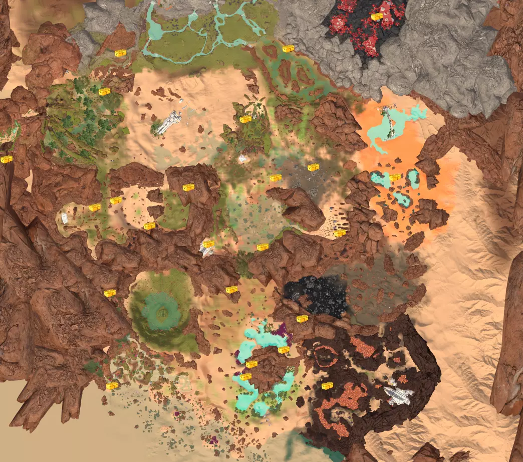 第九个位于类似传送门的飞船附近的岩石中(927:86:-775)。 第十个位于岩石后面的峡谷中(2156:3:242)。