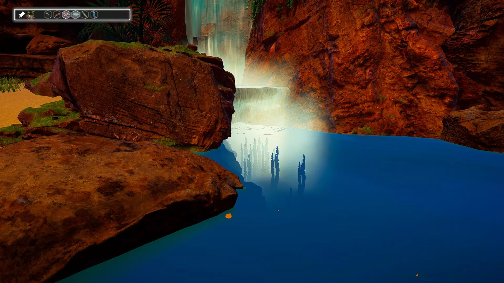 第二十四个宝箱位于彩虹洞穴,具体是在含有耀斑石英的洞穴中。洞穴坐标:2103:8:1924。宝箱坐标:2112:37:1843。 第二十五个宝箱位于Red Falls生物群系。生物群系入口位于大门附近(入口坐标:1806:83:-656)。要进入该生物群系,需在生物实验室制作爆炸装置并炸开碎石堆。进入后右侧会有瀑布。我们爬上去,左边水下会有一个宝箱【宝箱坐标:2460:126:-600】。