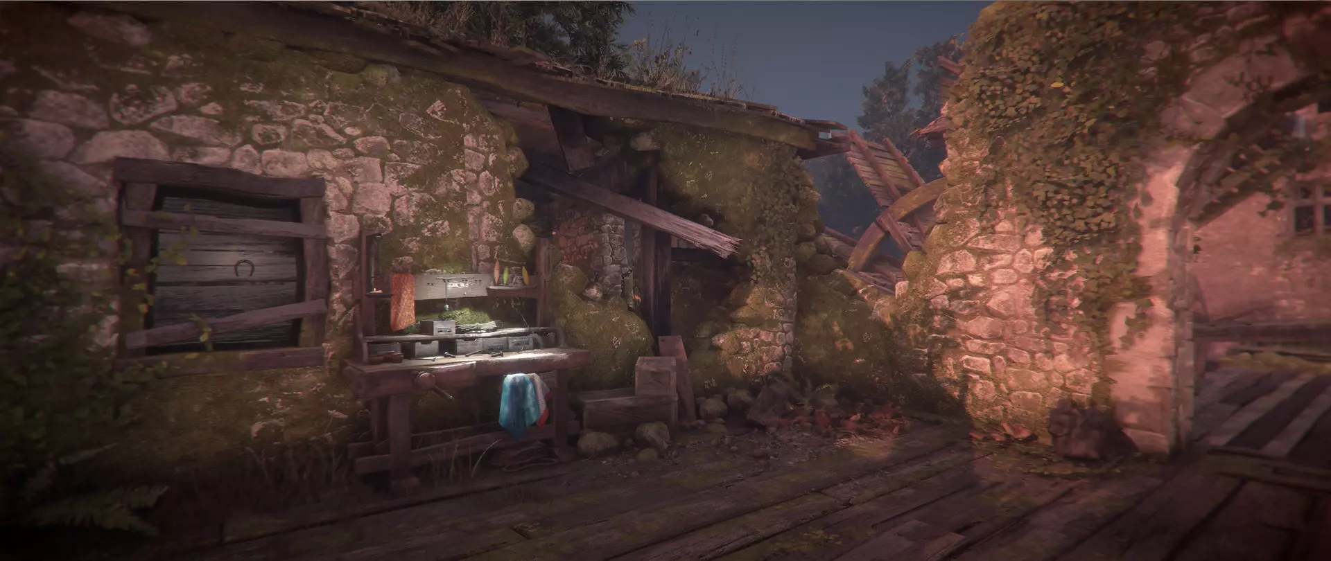 第七章:前路漫漫 奇物:马蹄铁 当你到达磨坊的另一边后,需要打开门。通过工作台右侧的洞口射击门上的锁链,然后穿过有轮子的区域进入那里。