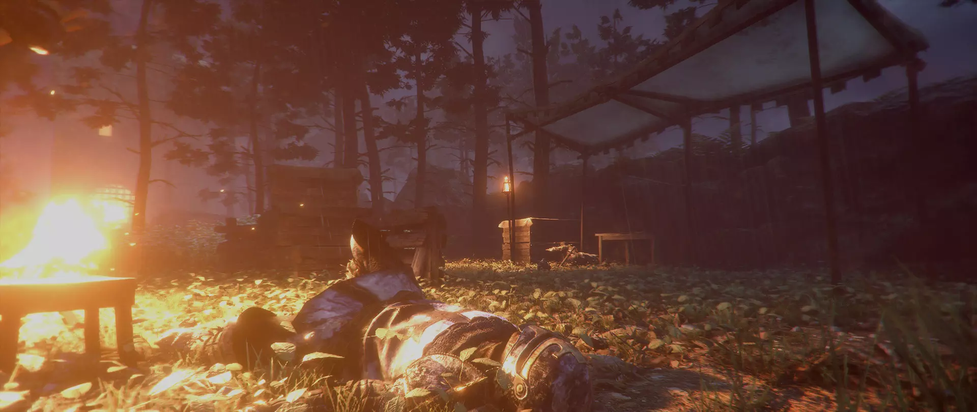 第七章 - 前路漫漫(地图) 离开避难所来到有守卫的场地后,待在道路的一侧,会看到篝火。地图就在不远处的桌子上,但首先得击倒或制服几个士兵。