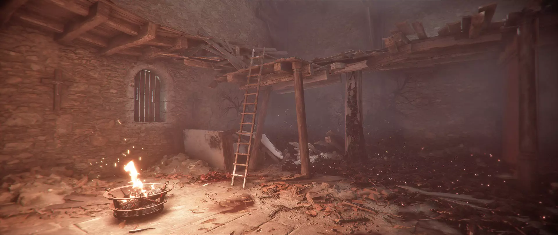 第三章 - 复仇(苏斯洛夫) 到达教堂内带有摇摆火焰的洗涤谜题处后,在即将通过时向右看。跳过障碍物进入黑暗房间,检查锅炉。