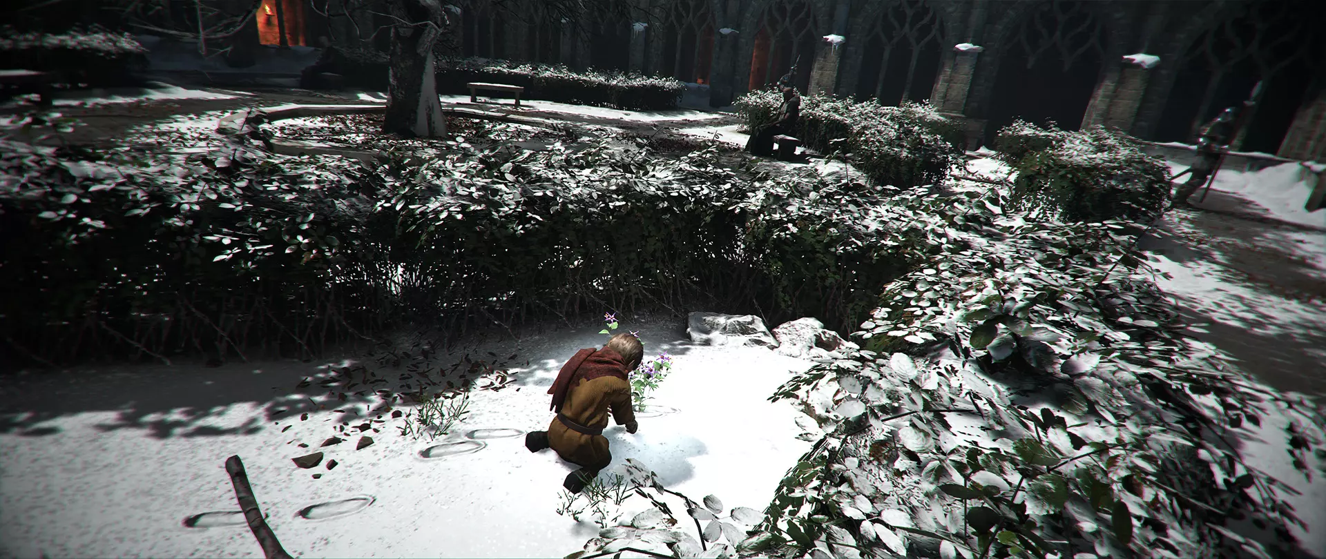 植物图鉴:冰霜花 在裂隙另一边遇到梅莉和卢科后,前往燃烧的房屋。当罗德里克试图打开房门时,你需要击退一波士兵。一切平息后,向下走并穿过第一道守卫出现的大门。往前走一段路,你会发现一片有冰霜花的小空地。