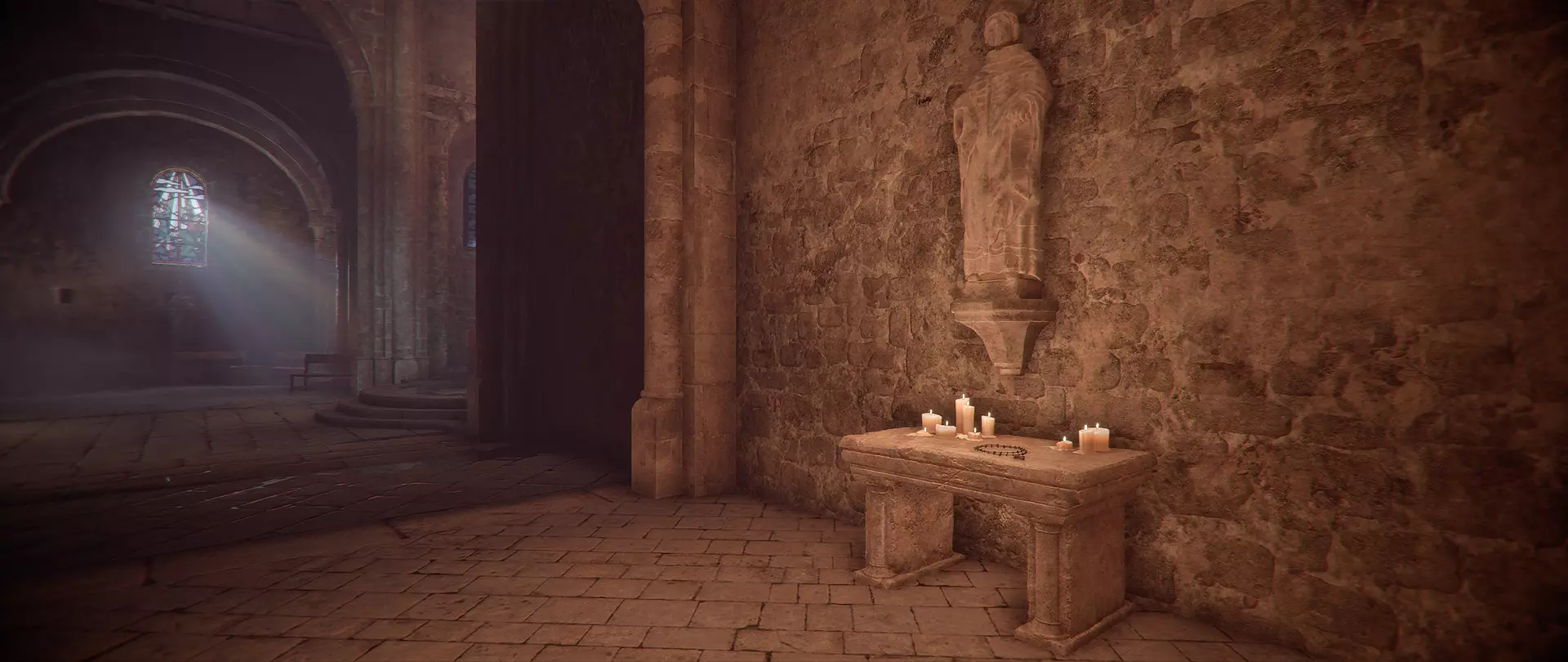 第三章 - 复仇(念珠) 进入教堂后,径直走到最里面的祭坛处。然后向右看,念珠就放在被烛光照亮的架子上。