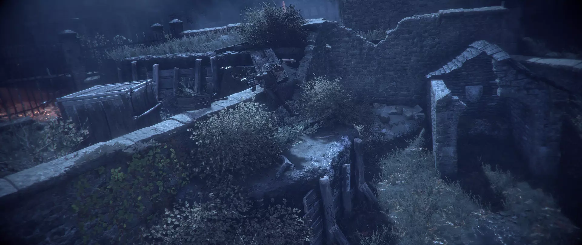 第五章 - 垃圾场(镰刀) 在第五章,当你到达需要推动的手推车处时,看向渡槽方向。你会看到一个手持火炬的守卫,他旁边有一个打开的箱子,里面放着镰刀。