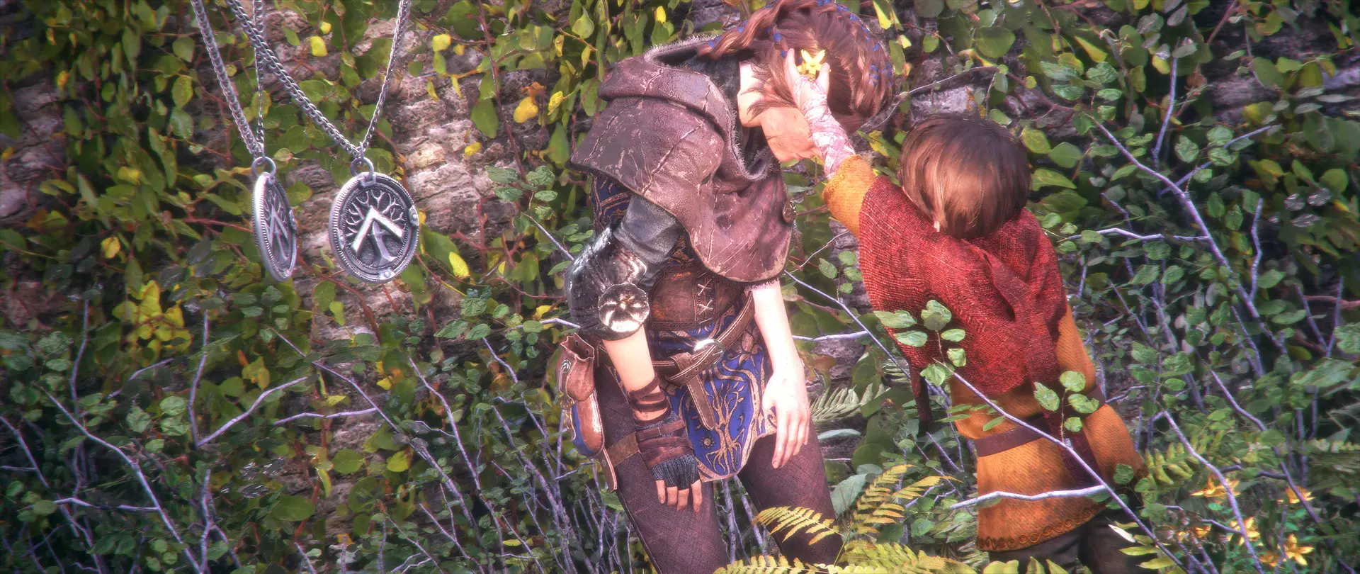 第八章 - 我们的家(巨树) 在阿米西亚和雨果挂好护身符的剧情之后,走向弟弟。他会坐在巨树旁的草地上。