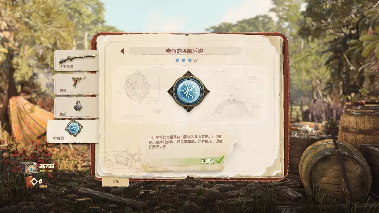 本体每名角色都会有不同护符,鉴于我也未全部使用过,故只提及我认为较为好用的几个:图上所示的【赛特的残酷乐趣】(闪电麻痹护符)是阿基米德独有,可以连锁瘫痪5名以上敌人,甚至还能瘫痪捍卫者,可以说是居家旅行必备良品了。 其他还有【透特的愤怒】自动炮塔和【荷鲁斯致命的眼睛】,这两个护符都属于自动近身索敌类型,可以在你即将被包围的时候改善局面。 收集要素:主要分为以下几类:圣物、人像、猫咪、信件、陶罐 圣物通常隐藏在谜题门后,也有部分是由击杀携带有圣物的敌人获得。人像则是DLC中代替了圣物的收集品,不过不同的是不再需要击杀敌人获取。 猫咪:蓝色的魔法猫咪,在地图刷新时会发出叫声,可重复收集。每关卡达成猫咪全收集后将打开金色猫咪密室,内有大量金币与宝箱。 信件共计78封,可分为62封主要信件(即在关卡中拾取获得)和16封次要信件(即打开宝箱随机获得)。其中计入收集成就数的只有主要信件。 陶罐:同上,分布在地图隐蔽处,要注意的是信件与陶罐获取后就不会再次刷新,无论你是单人还是联机。当初我带别人进行全收集时,怎么都找不到一个陶罐,最后才发现我们其实早就打过了。所以当你来到视频中的收集地点却没找到收集品时,就果断去下一个地点吧。