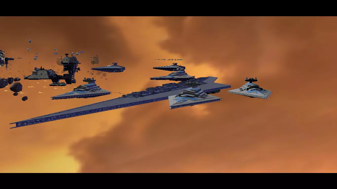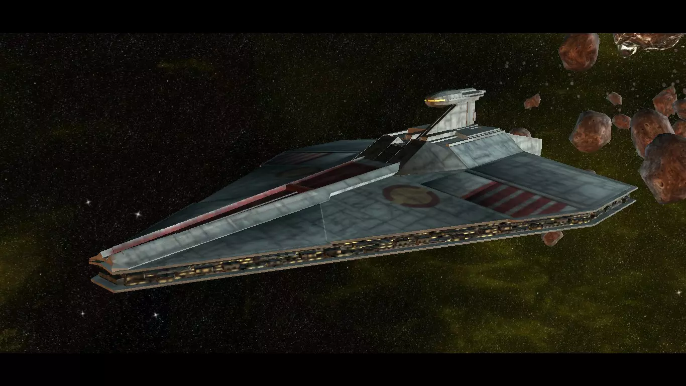 我们已经抵达帝国歼星舰,在我看来,它是整个星球大战系列中最出色的舰船,就连千年隼也无法与之相比。帝国歼星舰是一种大型主力舰。作为主力舰,它的作用是成为舰队的旗舰,也是最强、最具能力的舰船。帝国歼星舰在帝国成立和共和国解体后不久开始服役。它是歼星舰系列舰船的一部分,该系列与全地形系列一样声名卓著、性能卓越。 这艘舰船是猎兵级歼星舰的继任者,后者是克隆人战争期间共和国使用的主力舰。克隆人战争结束和帝国宣言发布后,猎兵级歼星舰曾被使用过一段时间,但很快就退役并被歼星舰取代,因为它不符合帝国海军 doctrine。帝国海军 doctrine 强调火力和激光齐射以压制敌人。而共和国海军 doctrine 则更侧重于航母作战,因此猎兵级被设计成一种相当紧凑的主力舰,拥有大量的战斗机配备,并且足够小以进行大气层内作战。帝国级歼星舰体型庞大,虽然也配备了战斗机,但没有猎兵级那样大的机库,且体型比猎兵级大得多,大约长500-600米(1640-1969英尺)。右侧是猎兵级歼星舰,它是帝国级歼星舰的前身