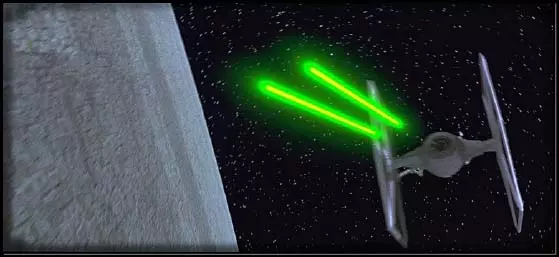 涡轮激光炮:涡轮激光炮是海军的标准装备,是主要安装在护卫舰和主力舰上的大型火炮。它们有两种版本:标准型和增强型。标准型威力较弱,仅配备于欢呼者级突击舰。增强型则装备在更大的胜利级、帝国级歼星舰以及执行者级超级歼星舰上,其威力比标准型更强。涡轮激光炮能对几乎所有敌方舰船造成可观伤害,但星际战斗机除外,因为它们体积太小,无法被这种大型火炮击中。你总是需要为大型舰船配备战斗机或巡洋舰护航,以抵御轰炸机,因为涡轮激光炮由于激光体积巨大且精度不足,很难击中它们。和所有激光武器一样,涡轮激光炮无法穿透护盾,必须对护盾造成足够伤害使其暂时失效,从而打开攻击窗口。护盾失效后,你应该瞄准舰船的关键部位,这些部位你认为对摧毁舰船至关重要。例如,如果敌人即将撤退,就摧毁其引擎以阻止他们跳入超空间;或者摧毁护盾发生器(如果有的话,有些舰船的护盾发生器内置在舰体内部),使该舰船在帝国的强大力量面前几乎毫无防御能力。