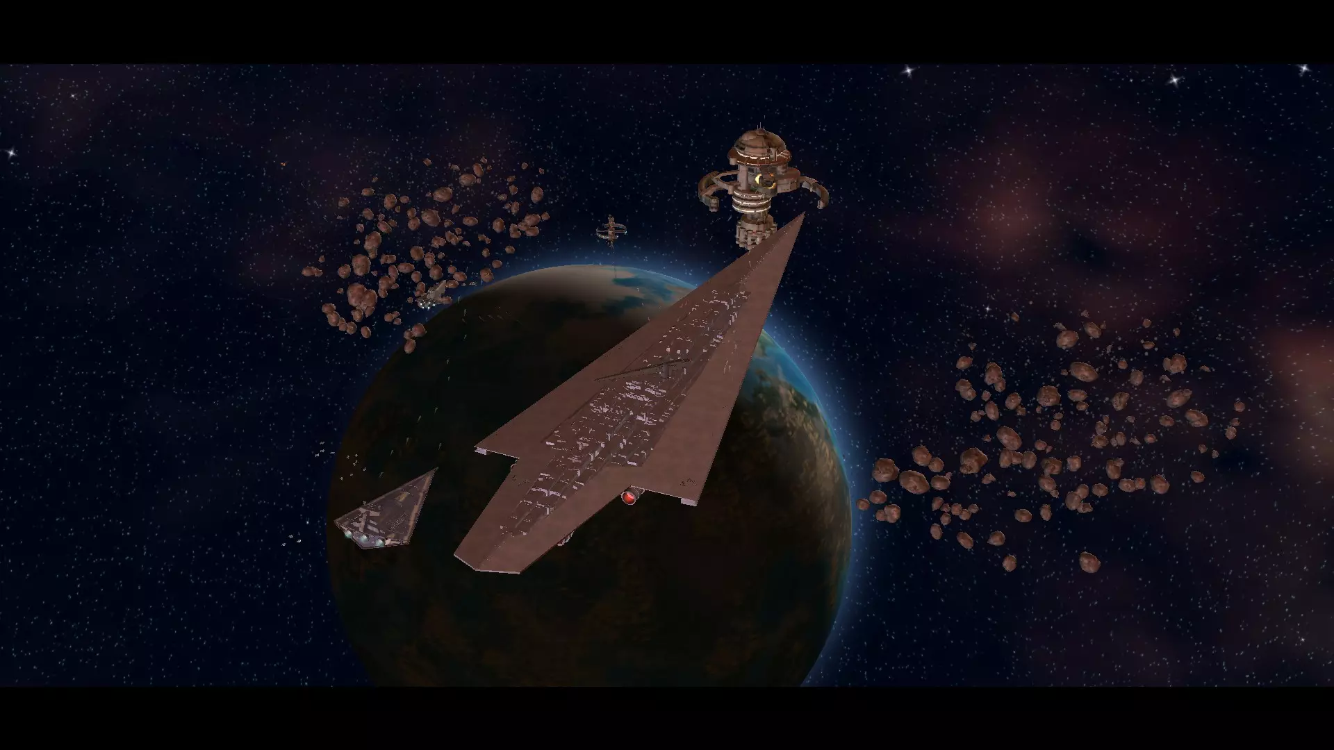 现在,让我们来谈谈策略。帝国歼星舰无疑是舰队中的主力,当然,除了【执行者级】——你可能要在战役后期才能解锁它。歼星舰配备了强大的武器,几乎可以对抗所有巡洋舰、护卫舰或 corvette(轻型护卫舰)。它的对手只有敌方的主力舰,比如蒙卡拉马里级,但我强烈建议配备护卫舰或轰炸机支援,以增加胜算,因为每艘敌方主力舰都能与歼星舰一较高下。这并不意味着歼星舰性能 inferior( inferior ),绝非如此!这只是为了确保万无一失,因为你永远不知道敌人会使出什么诡计,可能是轰炸突袭,也可能是伏击。在部署位置方面,将歼星舰置于两艘护卫舰之间始终是最佳策略。歼星舰是强大的舰船,但不应独自对抗所有敌人。在歼星舰旁部署一艘塔尔坦巡逻巡洋舰也是明智之举,因为它能拦截任何试图对歼星舰发动攻击的轰炸机,而轰炸机是歼星舰的最大威胁。在歼星舰两侧部署两艘护卫舰,最好是胜利级Ⅱ型护卫舰,可处理任何对歼星舰的干扰。这意味着,如果你的歼星舰正在与一艘蒙卡拉马里巡洋舰交战,而义军试图通过派遣更廉价、更易消耗的单位(如护卫舰或巡洋舰)来分散你的歼星舰注意力,那么你的护卫舰可以负责对付这些单位,而你的歼星舰则可以集中火力攻击更大、优先级更高的目标。 执行者级歼星舰