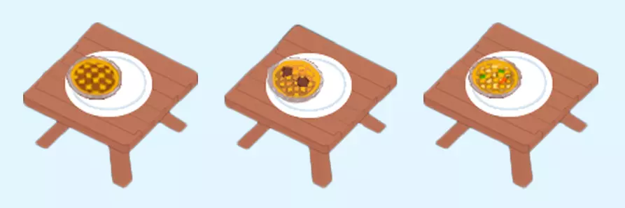 馅饼 馅饼是7级解锁的初始菜品。所有馅饼的制作方式相同,需要先制作饼皮,再添加馅料,然后进行烹饪。 初始添加的馅料为肉类。 主要菜品:蘑菇馅饼、蔬菜馅饼