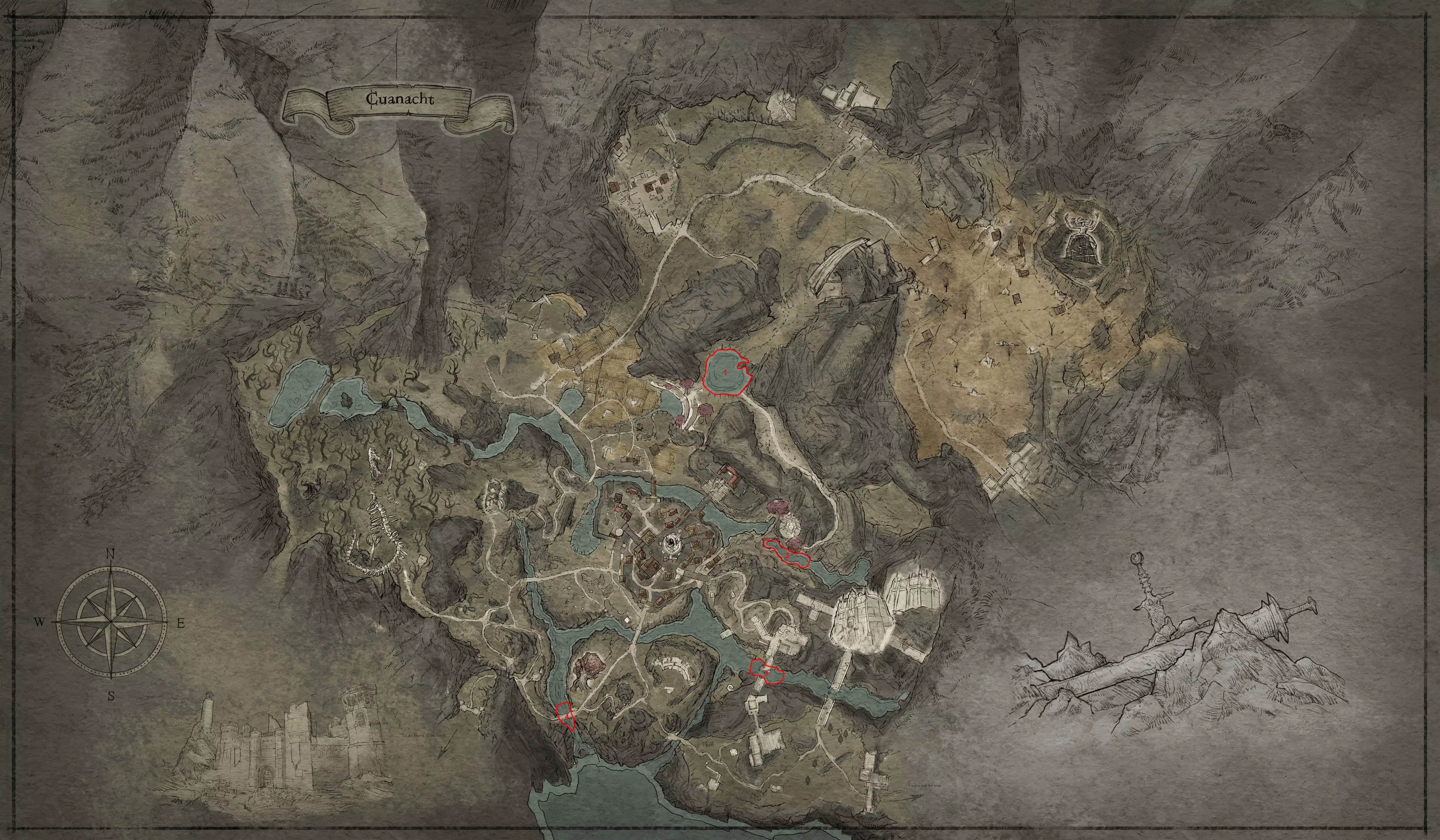 第一区域地点及鱼类列表: 1. 圣母像神殿下方,靠近“安德拉斯特”号船员避难所入口(早晨) - 欧鳊 - 丁鱥 - 溪红点鲑 2. 圣母像神殿下方(白天) - 鲭鱼 - 沙丁鱼 3. 圣母像神殿下方(傍晚) - 赤鲷 - 海鲂 4. 圣母像神殿下方(夜晚) - 海鳗 - 海魔鱼 - 鲭鱼 5. 巨石阵周边(白天) - 鲱鱼 - 梭子鱼 - 鲈鱼 - 鲫鱼 6. 巨石阵周边(夜晚) - 江鳕布罗克米尔周边(白天) - 胡须鱼 - 红鳍鲤鱼 3. 布罗克米尔周边(夜晚) - 阿瓦隆梭子鱼 - 白斑狗鱼 4. 被淹没的村庄(白天) - 蝎子鱼 - 锯齿比目鱼 - 涡轮鱼 - 舌鳎 4. 被淹没的村庄(夜晚) - 海狐鱼 5. 村庄(早晨) - 舌鳎 - 溪鳟 - 大菱鲆 - 涡轮鱼 5. 村庄(白天) - 螃蟹(不计入) - 蝎子鱼 5. 村庄(傍晚) - 锯齿比目鱼 5.村庄(夜晚) - 海狐 - 螃蟹(不计入) 6. 半岛(白天) - 小牛 - 月亮鱼 6. 半岛(夜晚) - 鲭鱼 7. 死渔夫岩,位于可见地图之外(早晨) - 金枪鱼 - 小牛 7. 死渔夫岩(夜晚) - 鲭鱼 8. 可以通过一系列任务钓到非常特别的鲱鱼,任务从南角的鹰那里开始。 库纳赫特