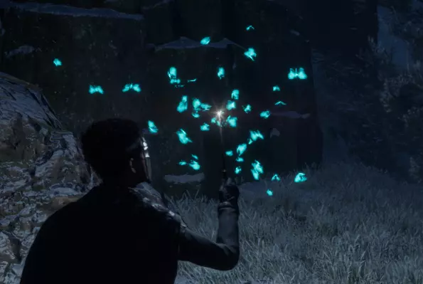 蝴蝶画像 霍格沃茨城堡内分布着空白画像。 对画像使用荧光闪烁咒可显现图像。图像所示区域通常就在附近,可能在楼上或楼下。 前往该区域,保持荧光闪烁咒开启,并反复施放原形立现咒,以在图片所示区域找到蝴蝶。 在蝴蝶附近保持荧光闪烁咒开启,蝴蝶会跟随你。 将蝴蝶带回画像处,然后关闭荧光闪烁咒即可完成谜题。 宝藏宝库门 开放世界中的部分宝藏宝库由地面带有符号的圆圈和附近带有符号的盒子组成的谜题锁定。