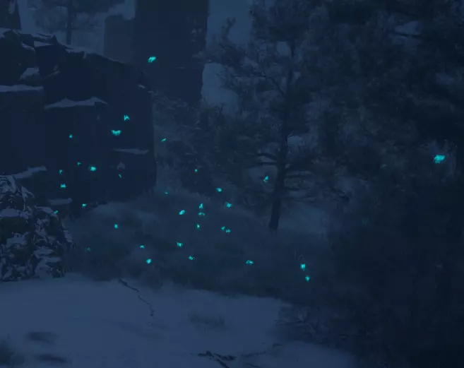 当你收集到全部16个后,就能获得里面的奖励并完成任务。 跟随蝴蝶 彩色蝴蝶分布在地图各处。