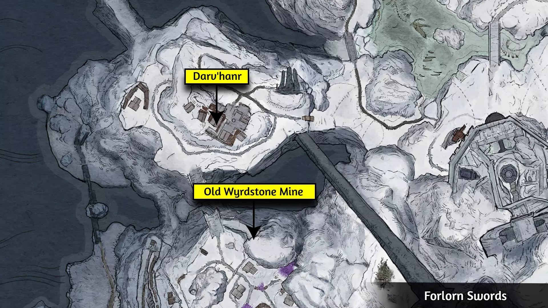 步骤1:创建手动存档,以防操作失误。 步骤2:使用任意磨刀石,从手工制作菜单中制作石卫护符。所需材料及其获取位置如下: - 陨石矿x3:从下图所示位置开采。 - wyrdstone x3:从下图所示位置开采。 - 以太蛛网x25:白天击杀类人生物,然后在夜间返回同一地点击杀它们的wyrdspawn。 步骤3:在下图所示位置与Darv'hanr对话,并耗尽所有对话选项。 步骤4:进入下图所示位置的旧wyrdstone矿。前往底部更新任务目标,然后返回Darv'hanr处。