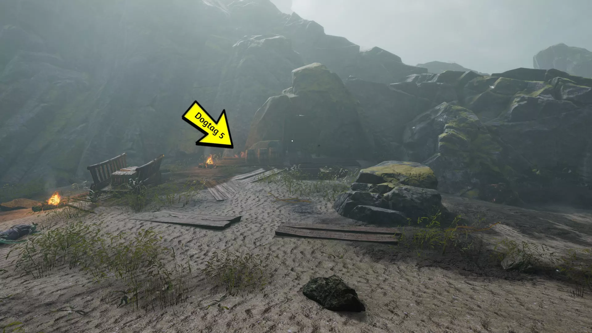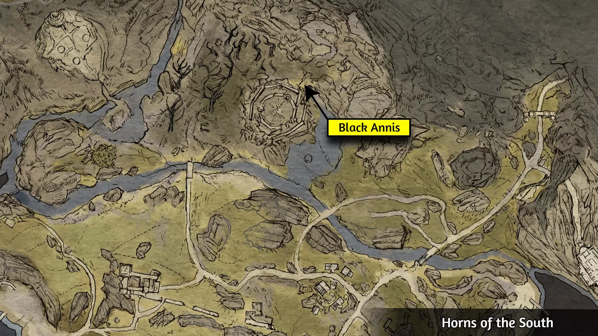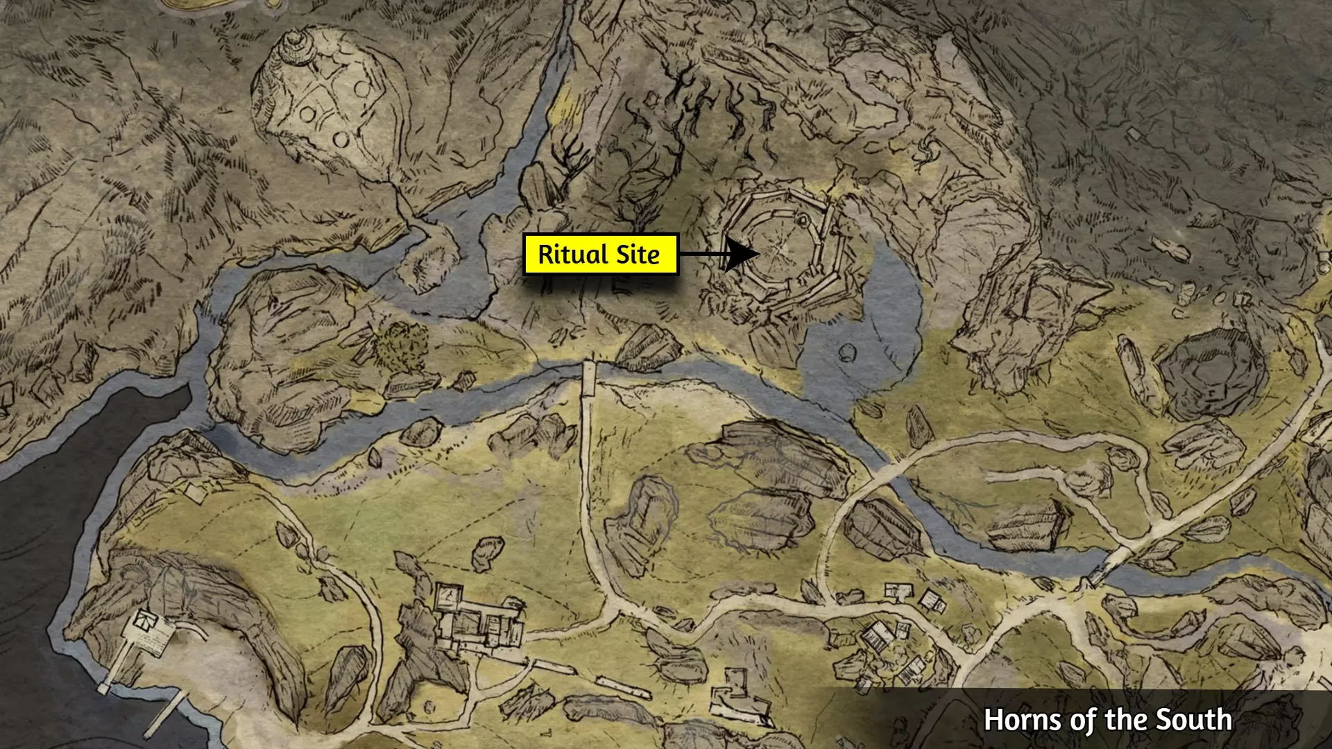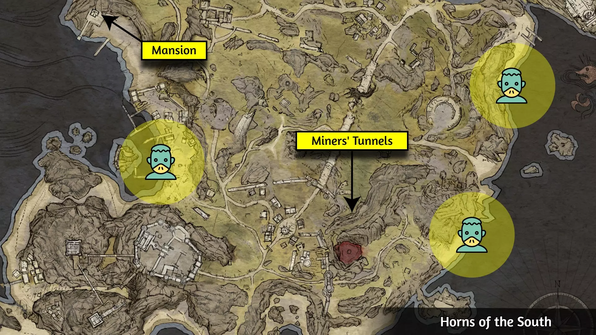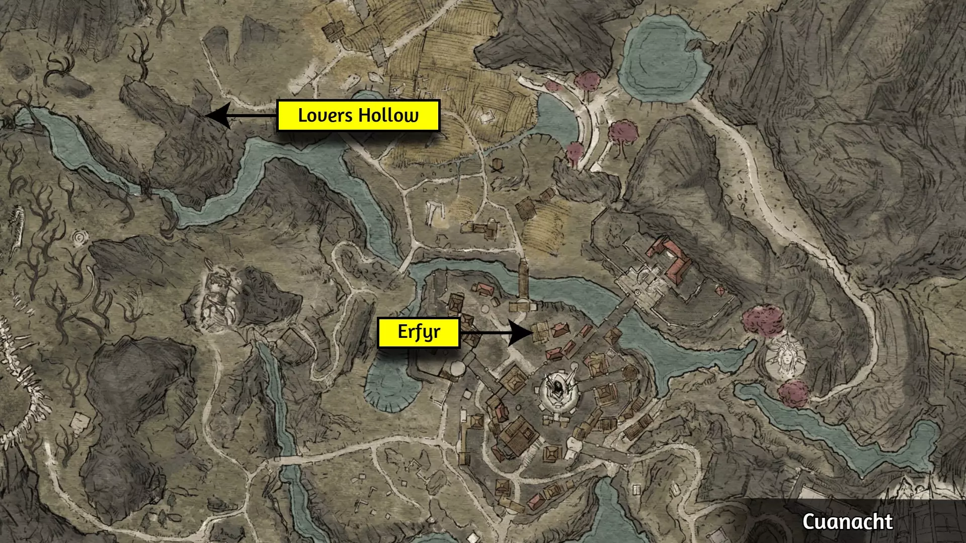 这个成就是个例外;大多数玩家会自然解锁它,但有些玩家报告说即使游玩时间远超50小时也未能解锁。通常的情况是:当在野外篝火处休息时,你必须收到【有东西在黑暗中潜伏】的提示,并且遭到攻击。对大多数人来说,仅收到提示并不会触发成就。 幸运的是,玩家们发现,在【石化面容】快速旅行点附近露营,能稳定触发【Prey of the Wyrdness】成就。具体位置可参考下图。