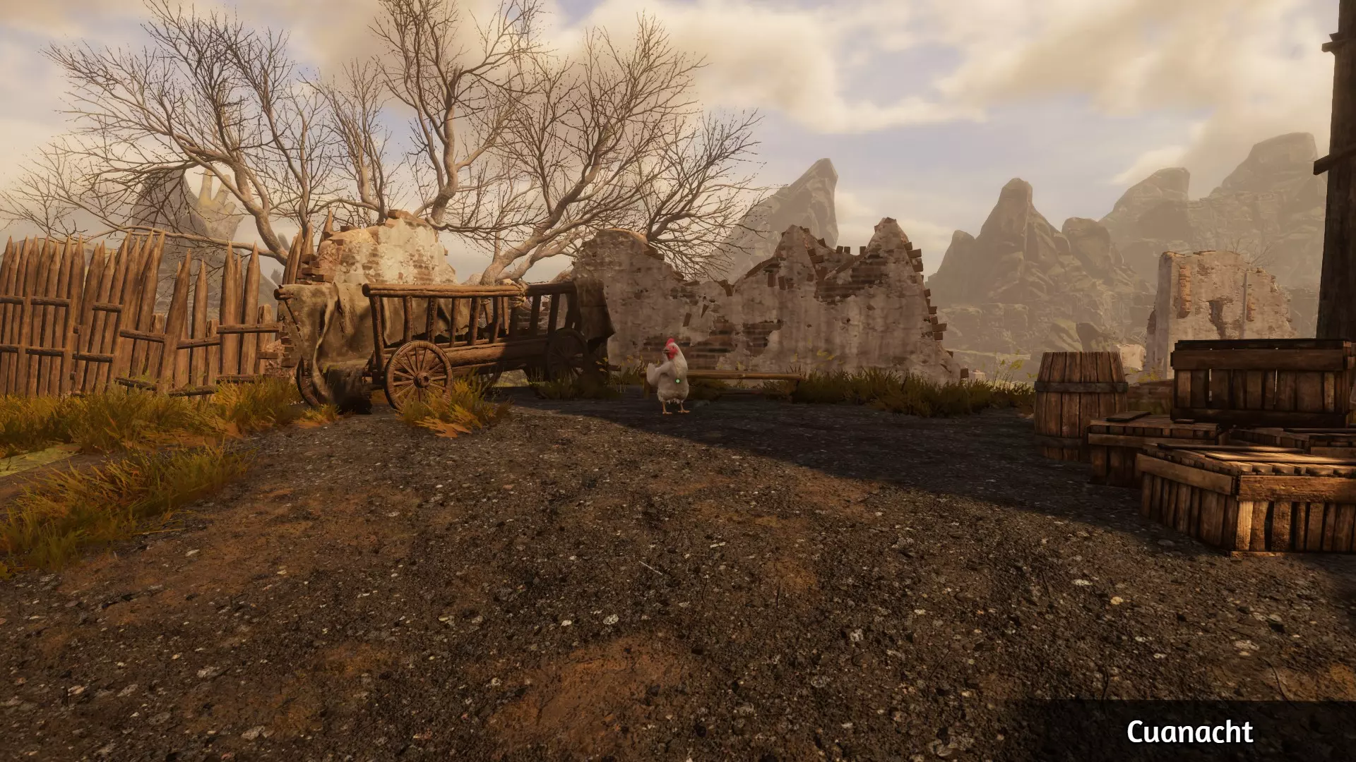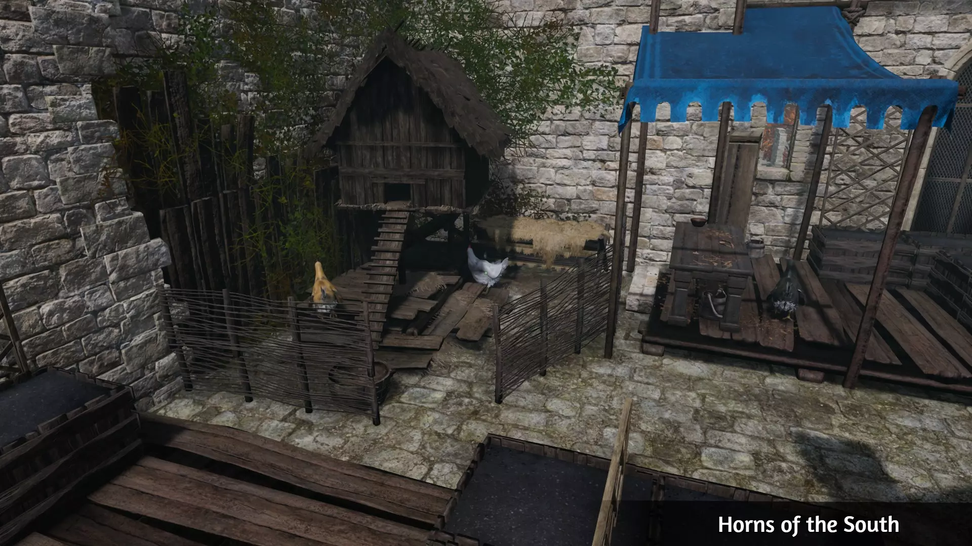 使用木质脚手架到达下图所示的鸡舍。与白色小鸡对话,并耗尽所有对话选项。