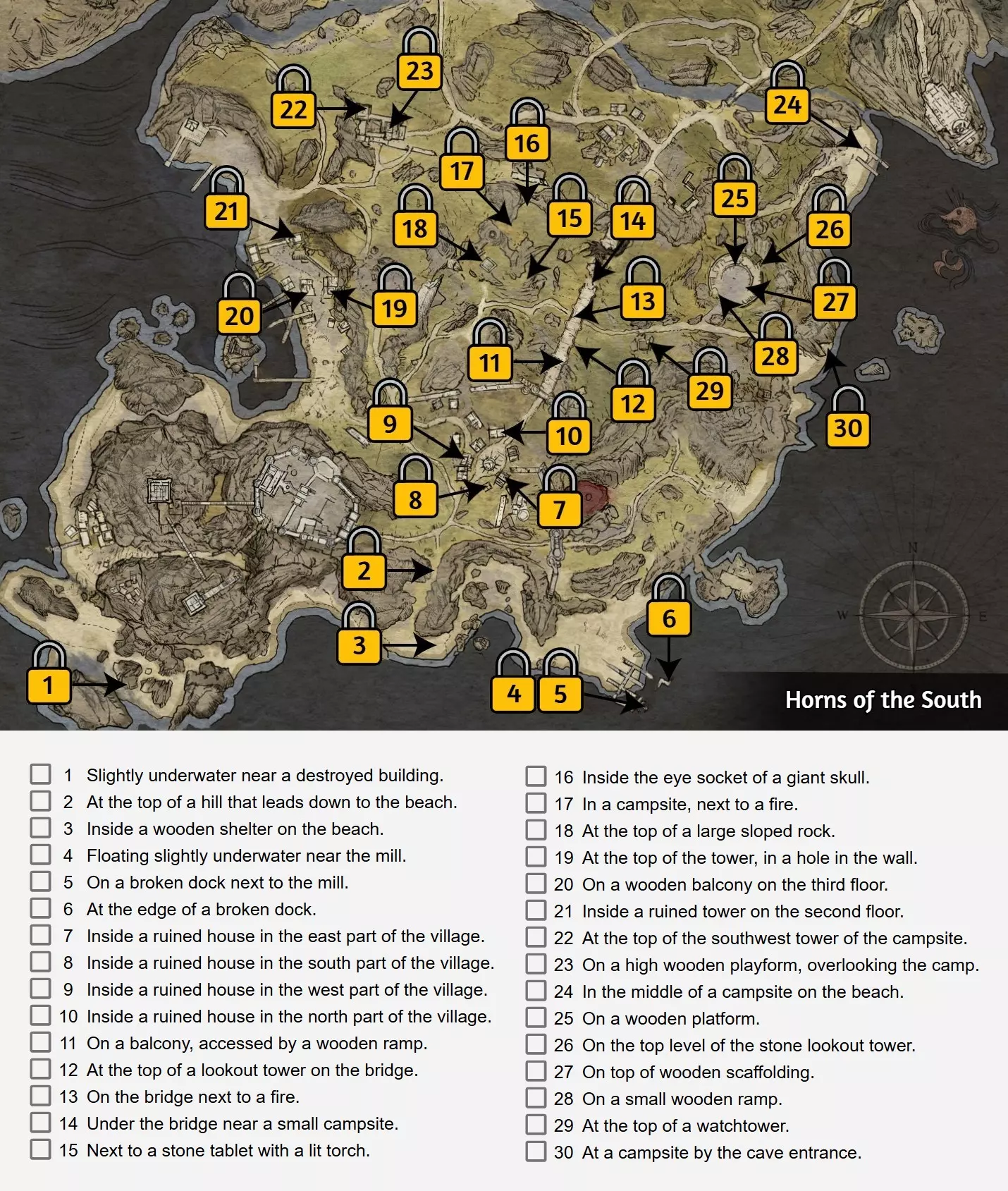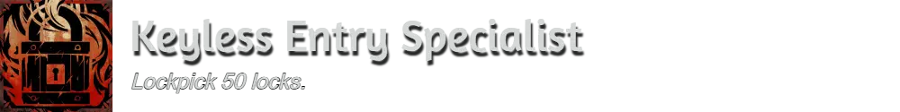 大多数玩家会在正常游戏进程中自然解锁此内容。如果没有,下方图片标注了每个区域中几个容易获取的宝箱。如果需要开锁器,请参考【Hand of Creation】成就。注意:你可以随时通过打开个人资料并选择【成就进度】来追踪【Keyless Entry Specialist】成就。