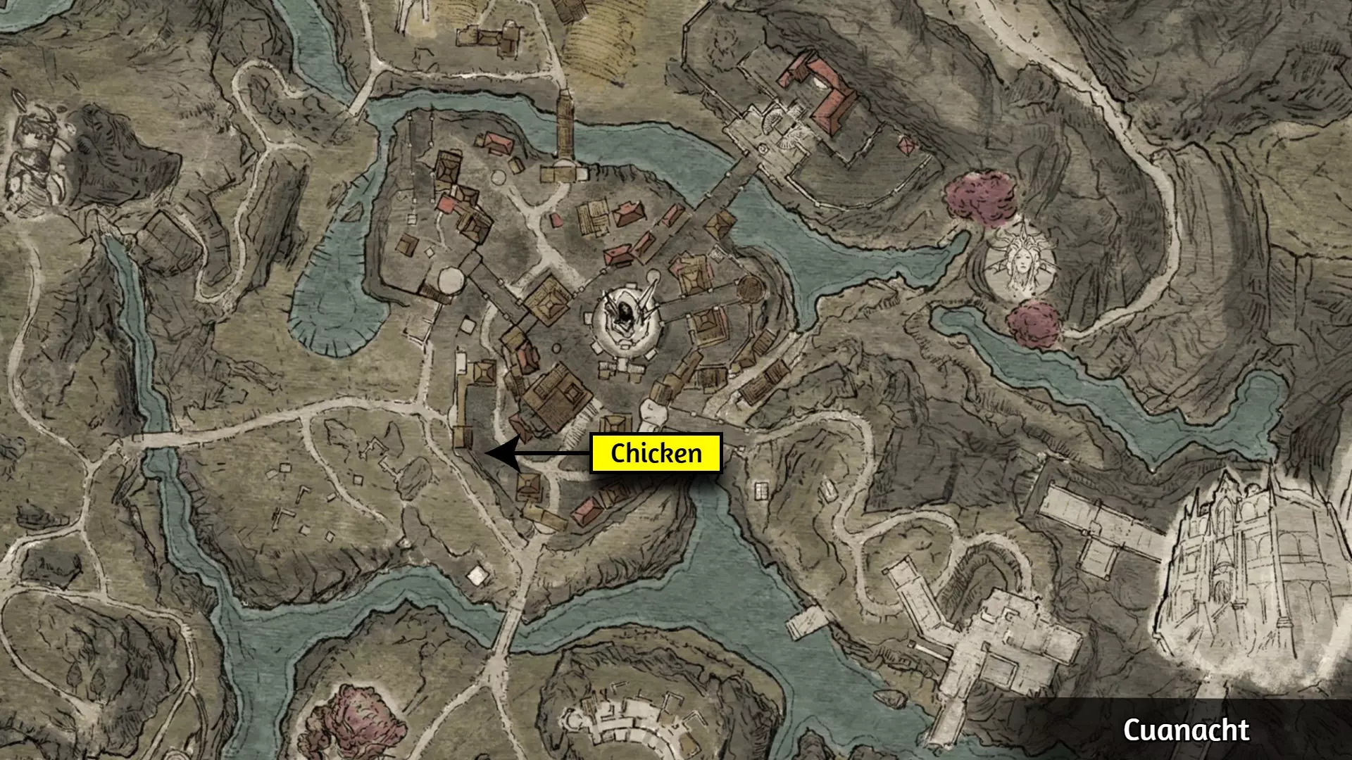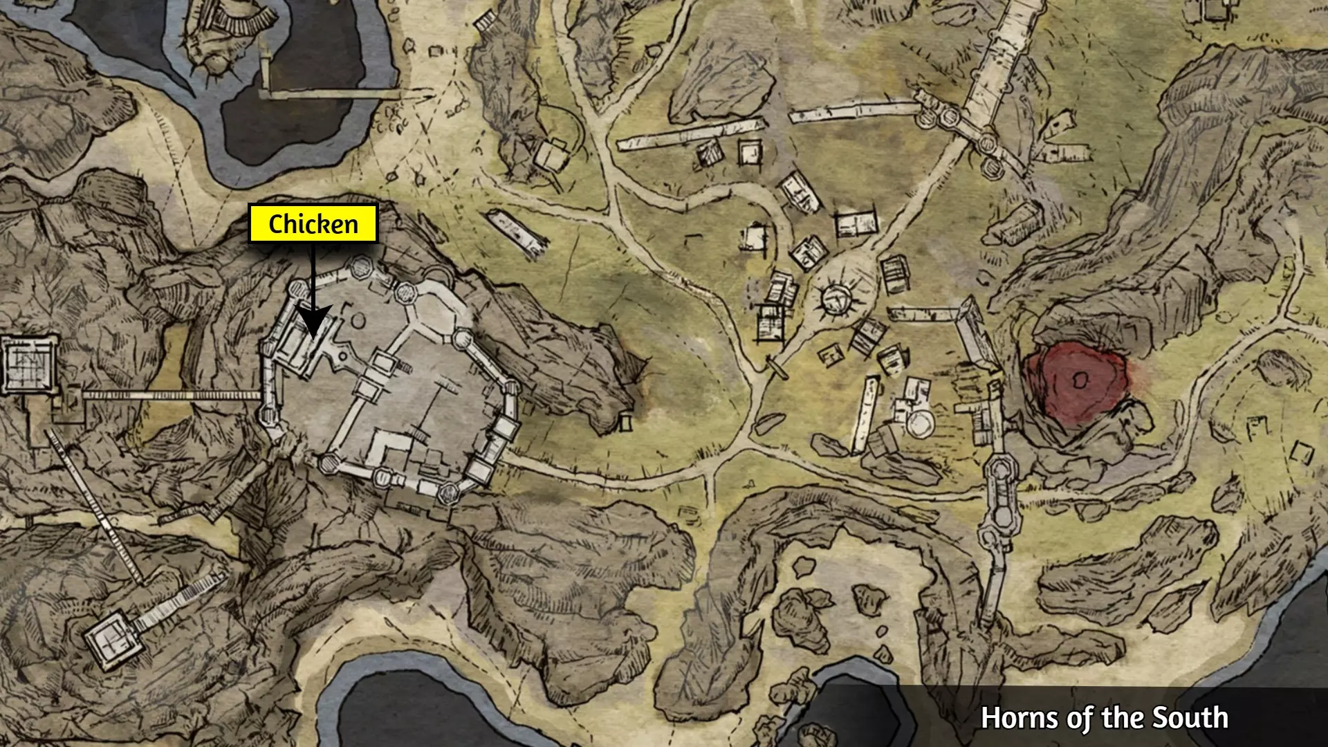 与下图所示位置的鸡对话,并耗尽其所有对话选项。