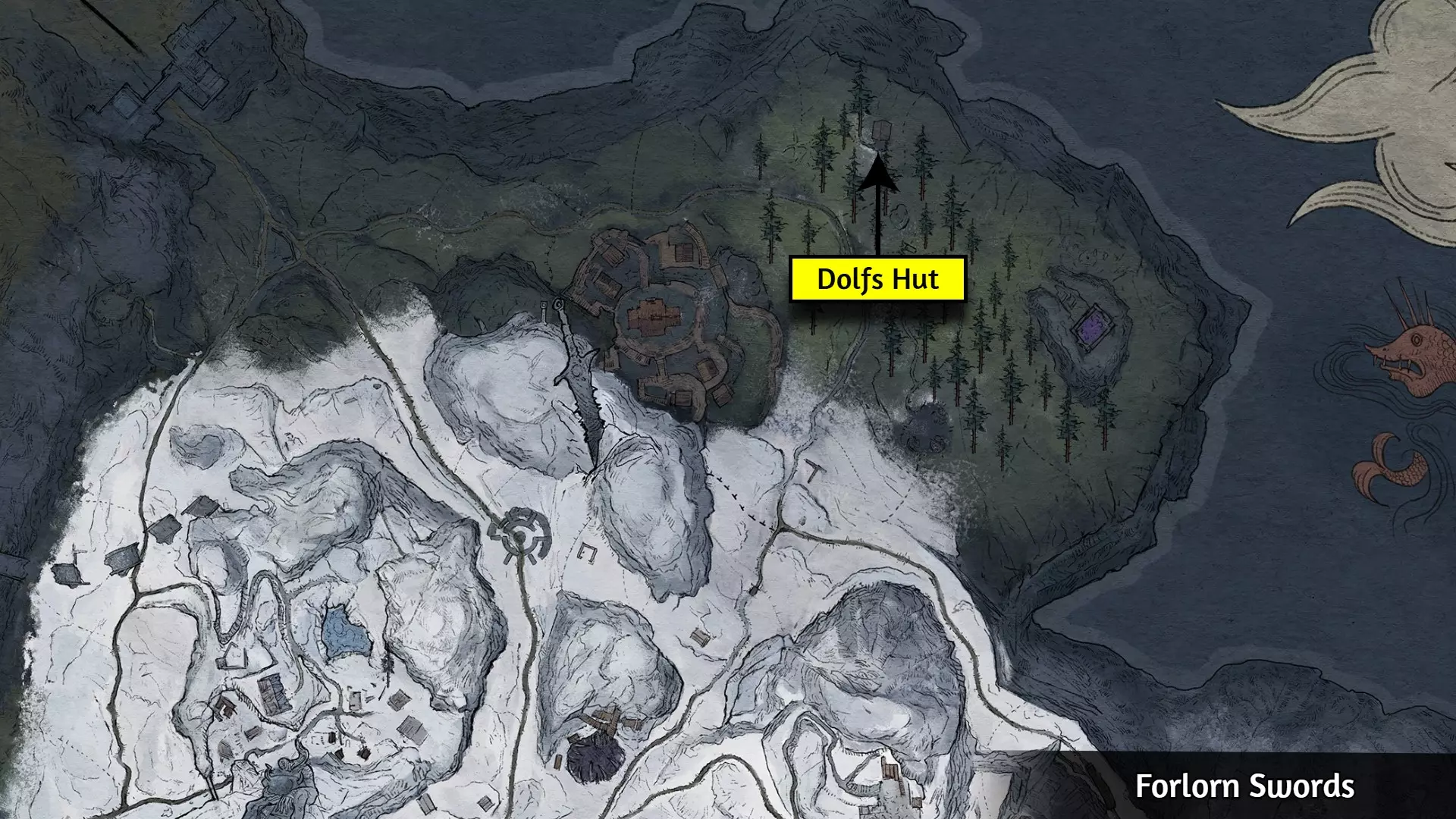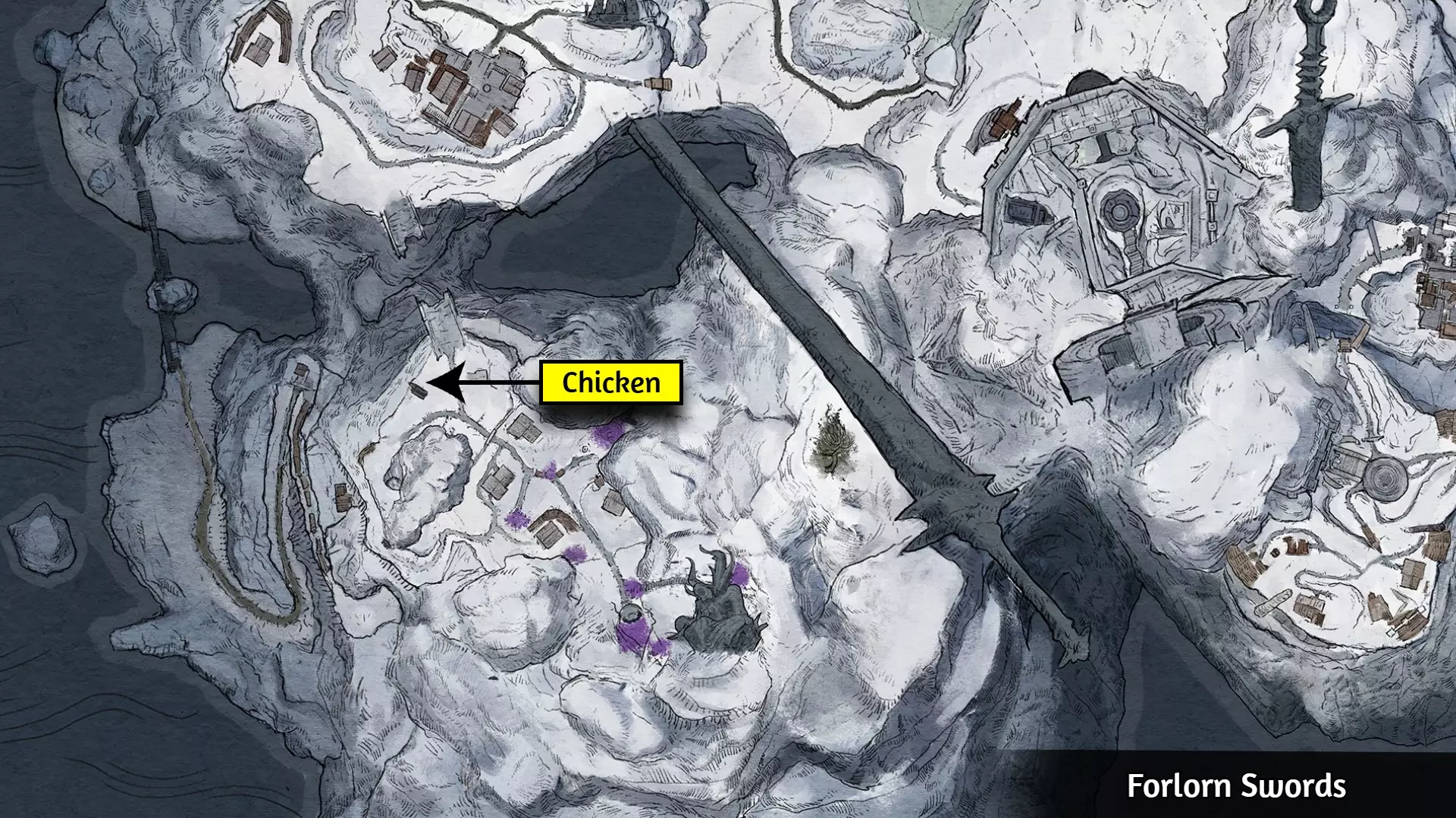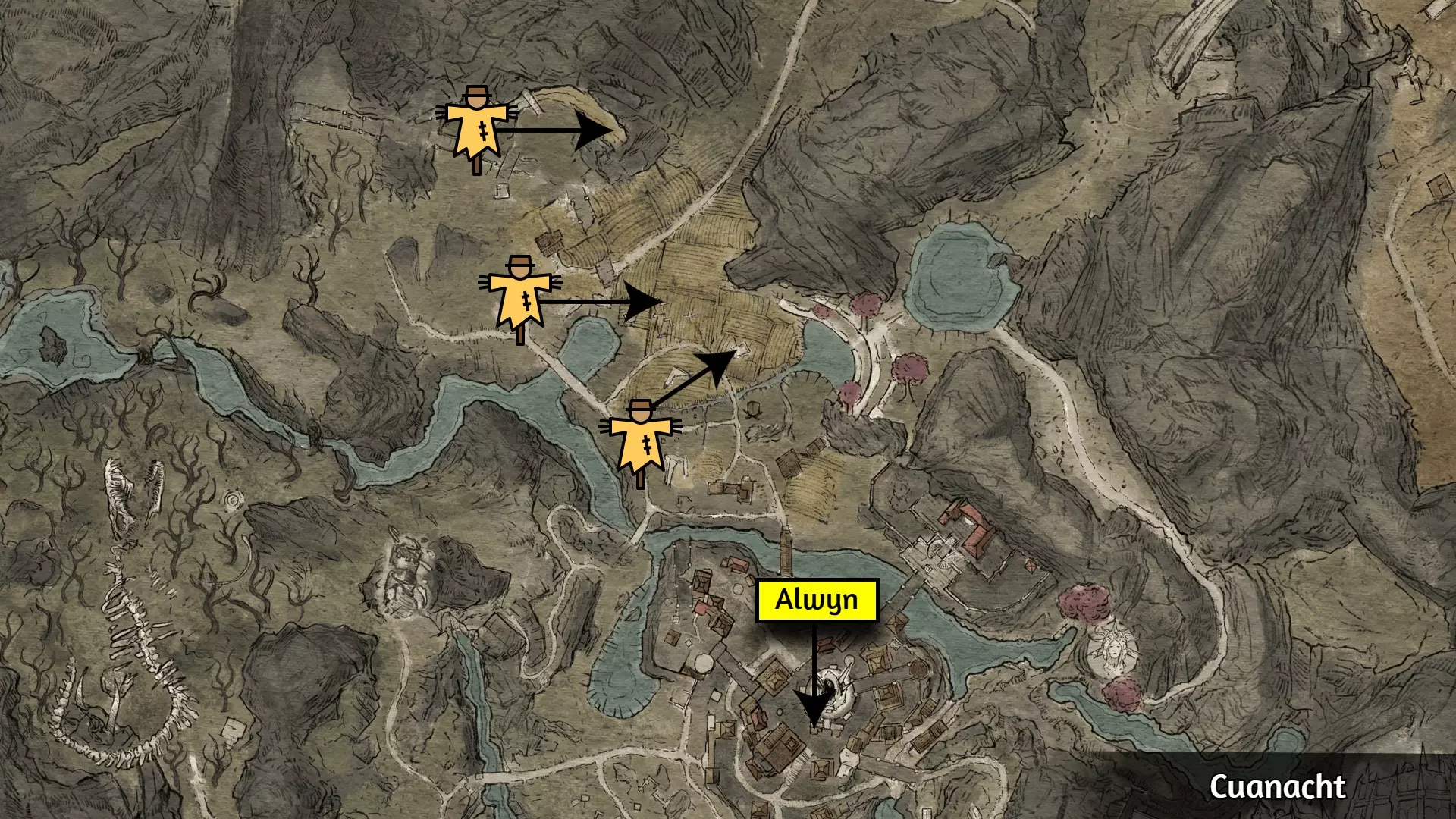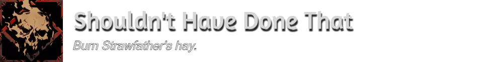 要解锁【Shouldn't Have Done That】成就,你需要点燃一个稻草人之父。稻草人之父位于下图所示区域。你可以使用火焰法术、火焰武器、火焰箭或类似效果来点燃它。如果你没有任何火源,可以从阿尔温处购买火把。稻草人之父的位置和火把商人的位置可参考下图。